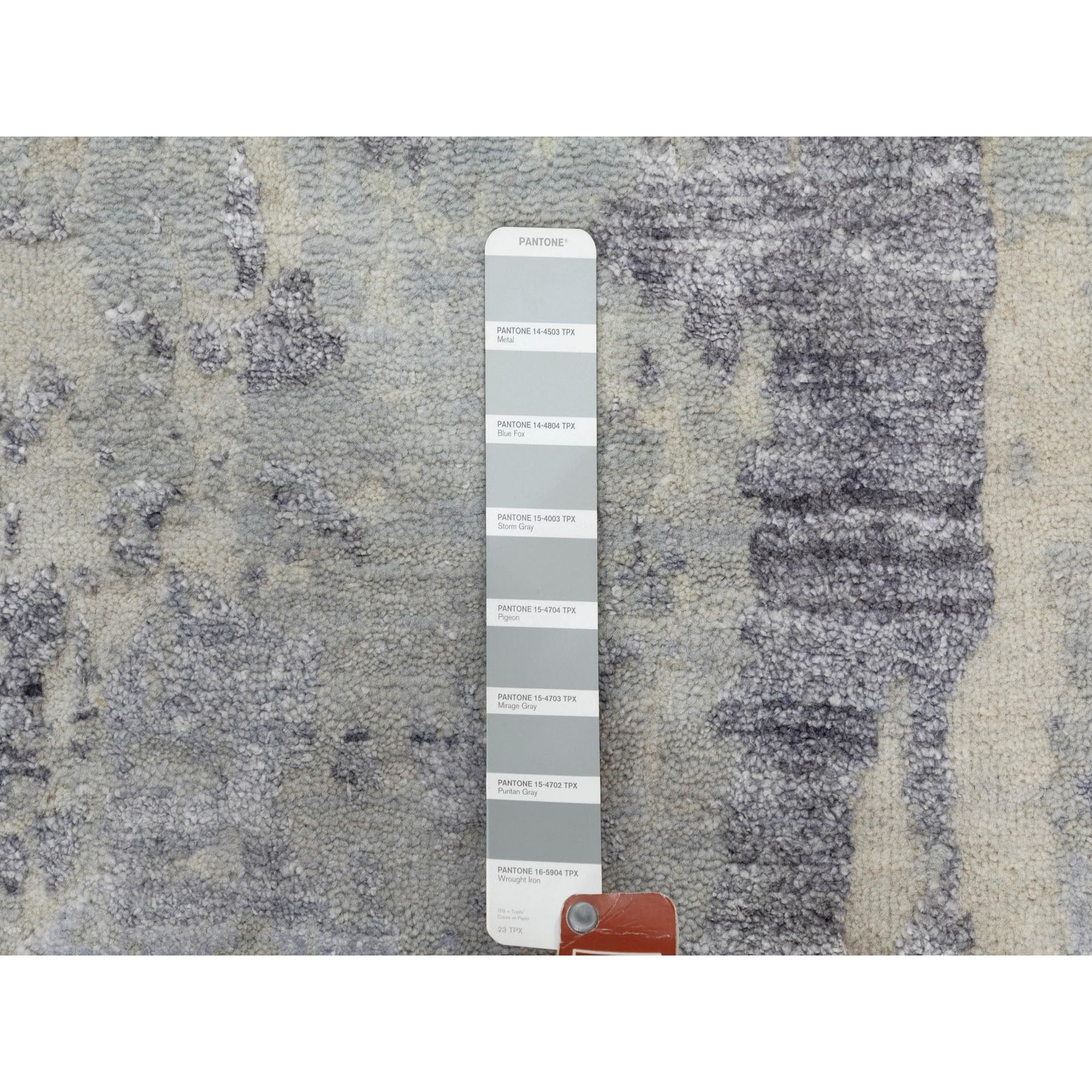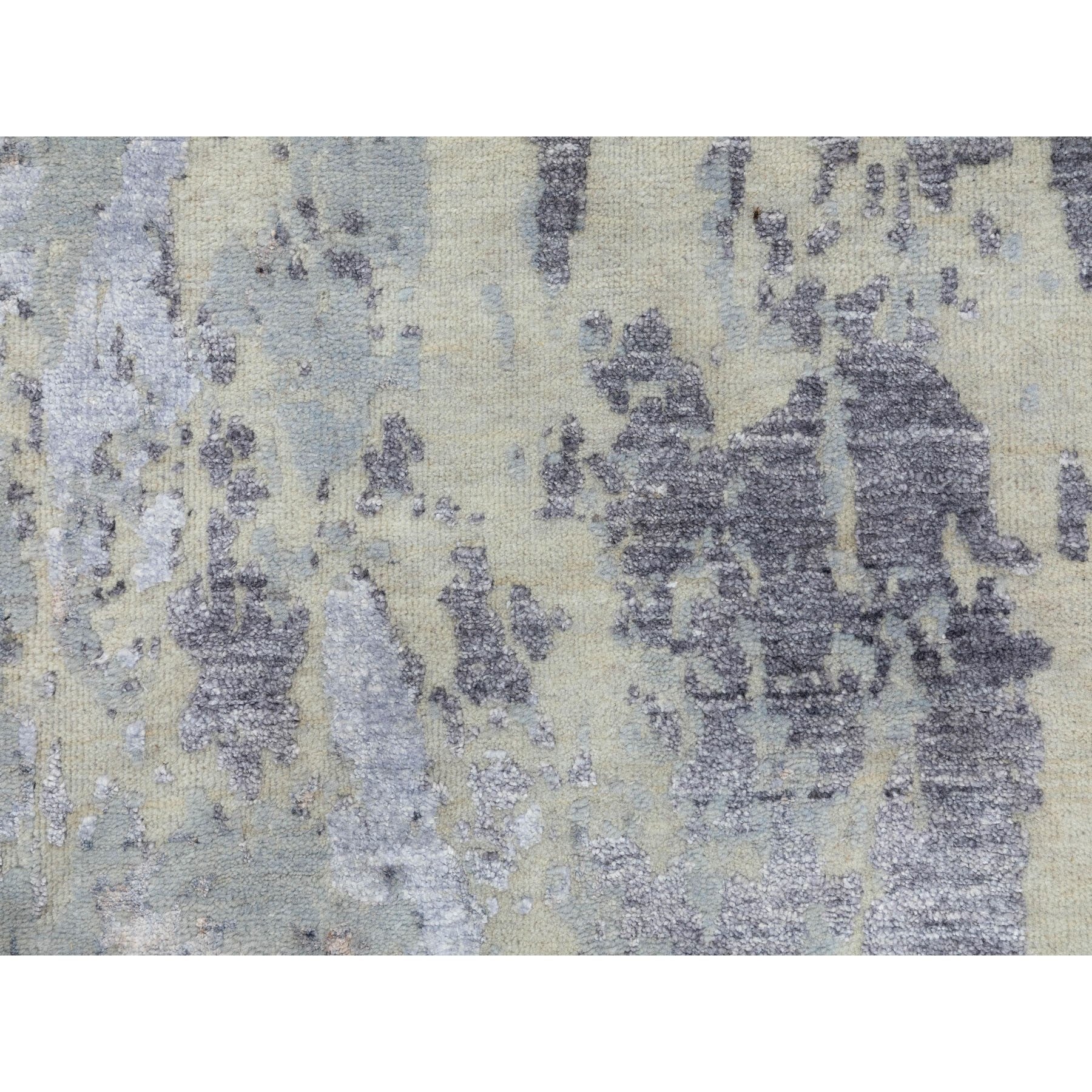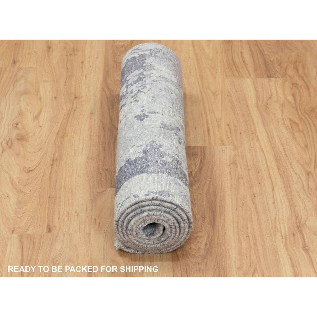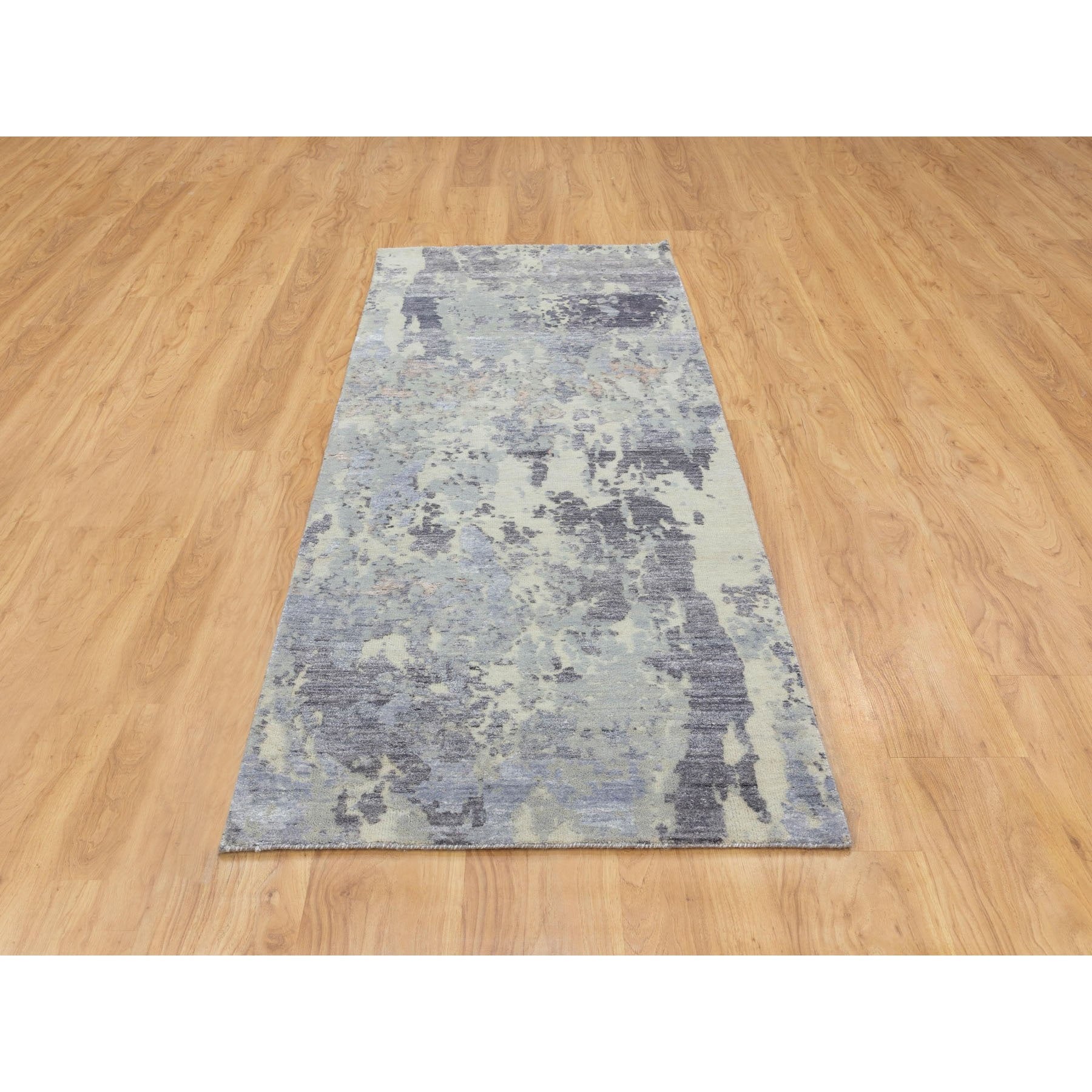 2'8"x7'10" Gray Thick And Plush Abstract Design Hand Knotted Runner Wool And Silk Oriental Rug FWR350676