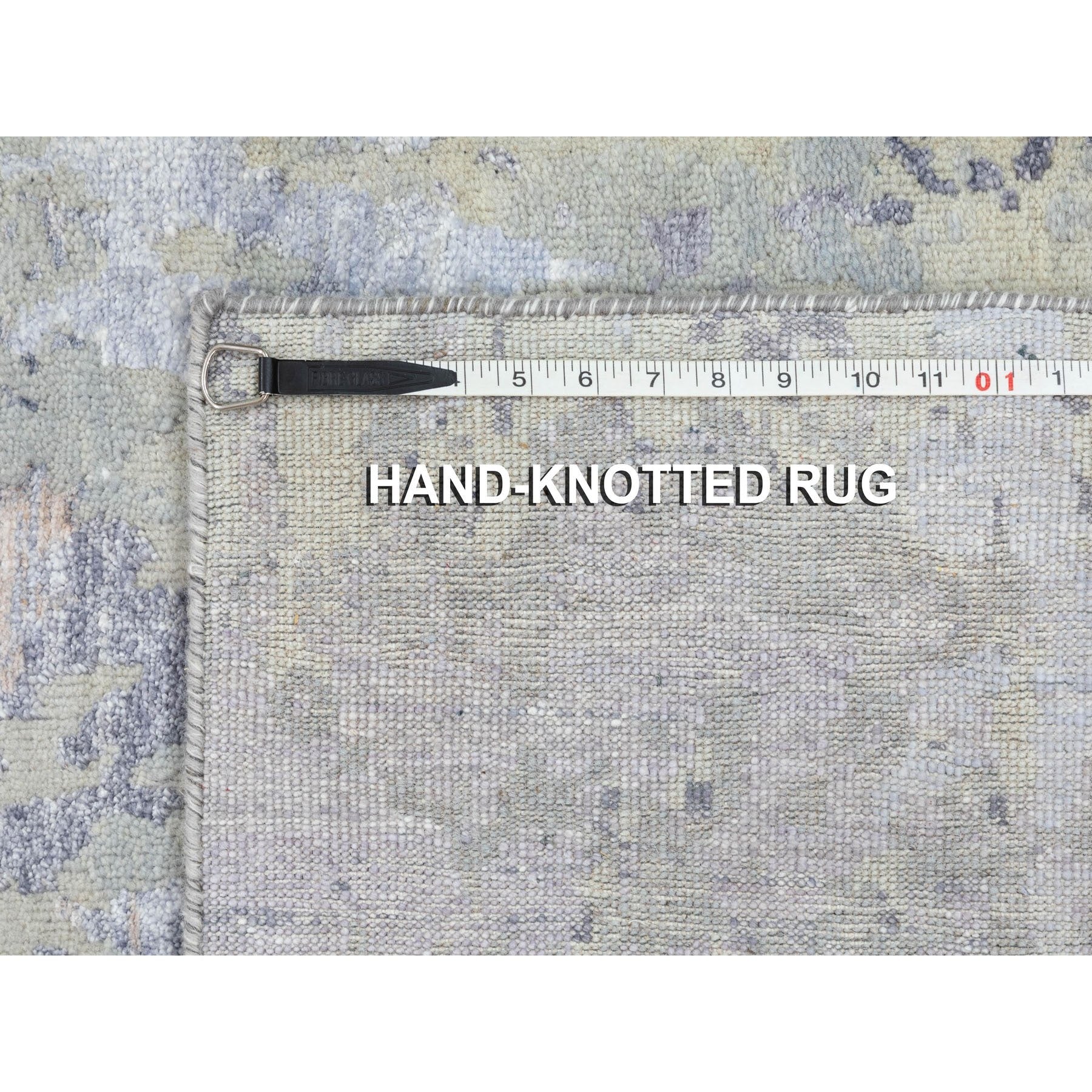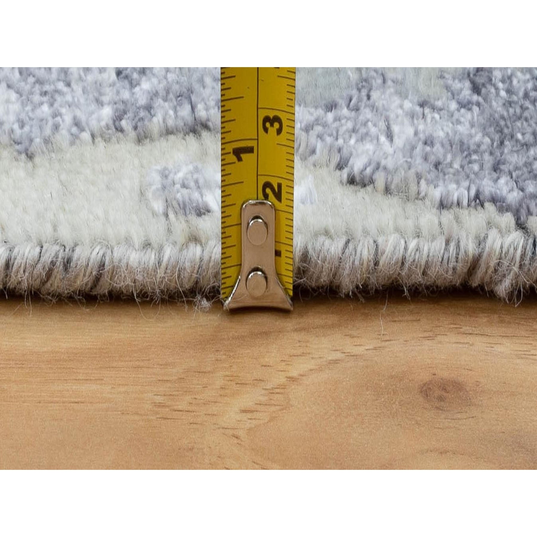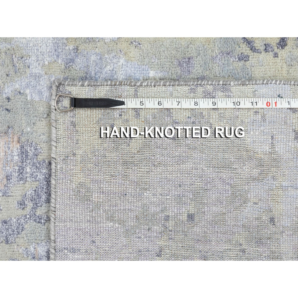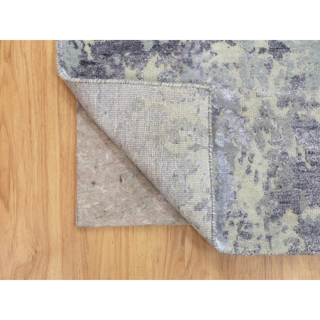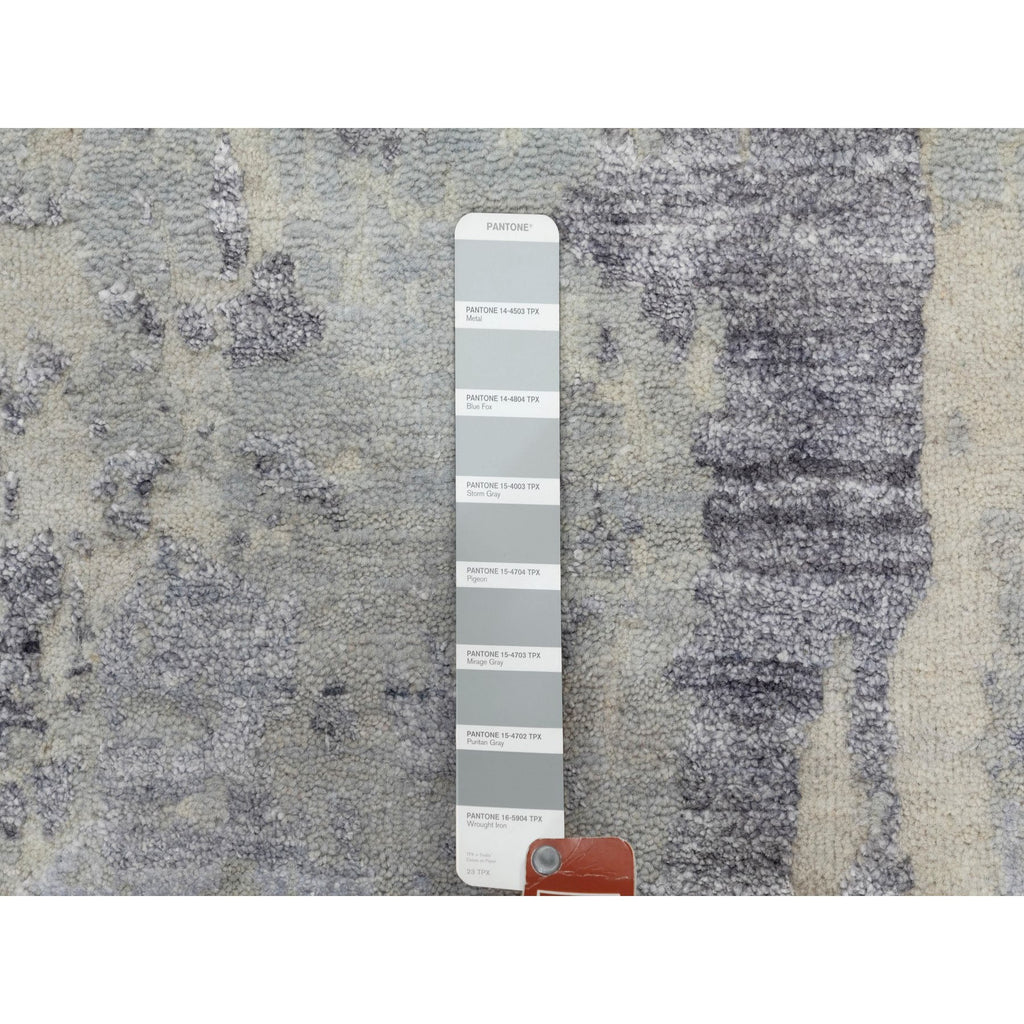 2'8"x7'10" Gray Thick And Plush Abstract Design Hand Knotted Runner Wool And Silk Oriental Rug FWR350676