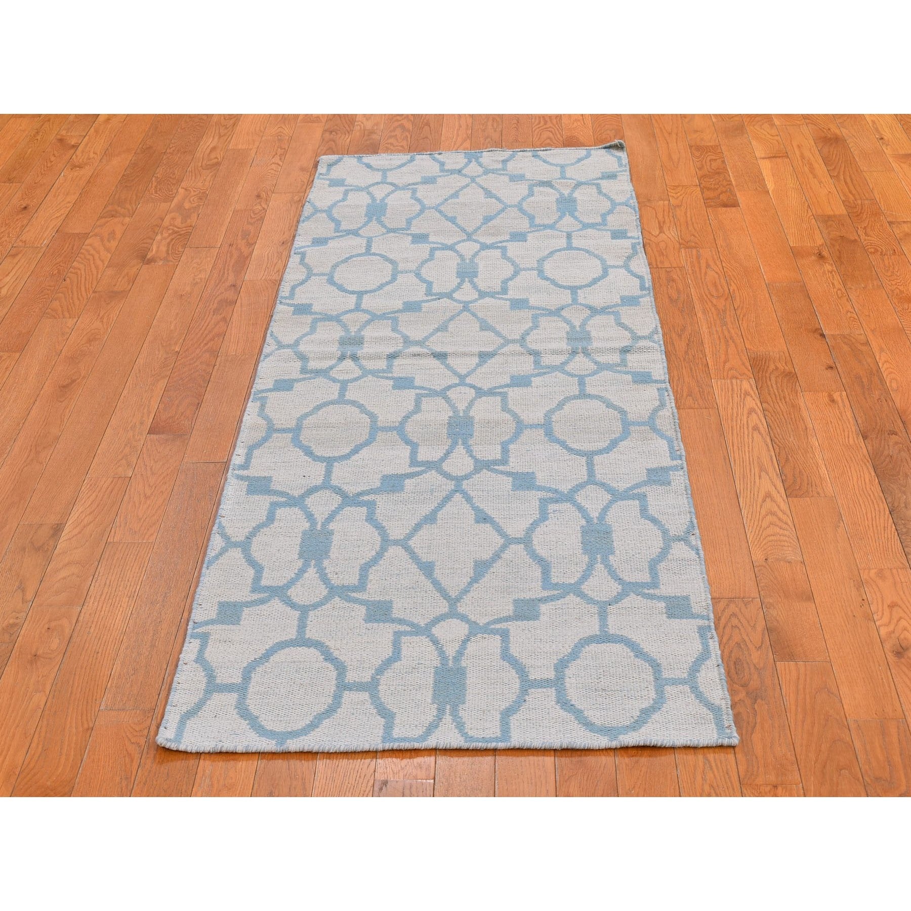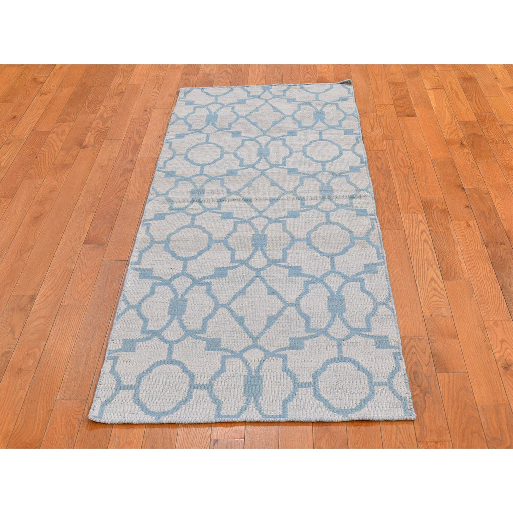 2'8"x7'10" Light Blue Reversible Kilim Pure Wool Flat Weave Hand Woven Runner Oriental Rug FWR396564