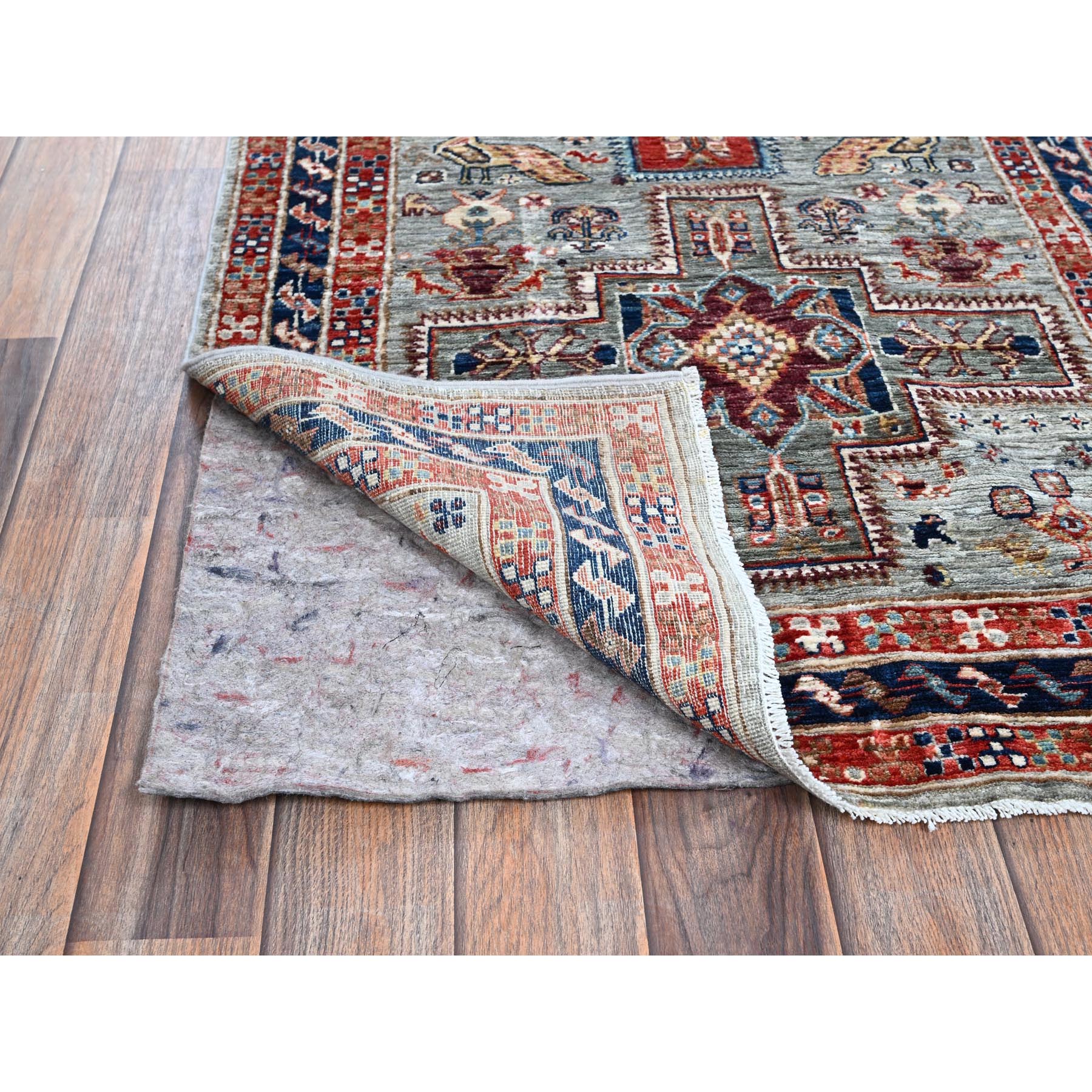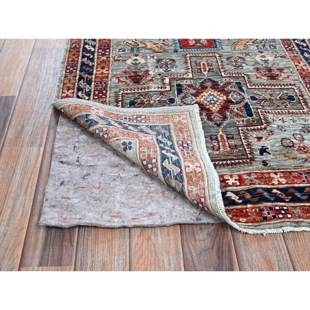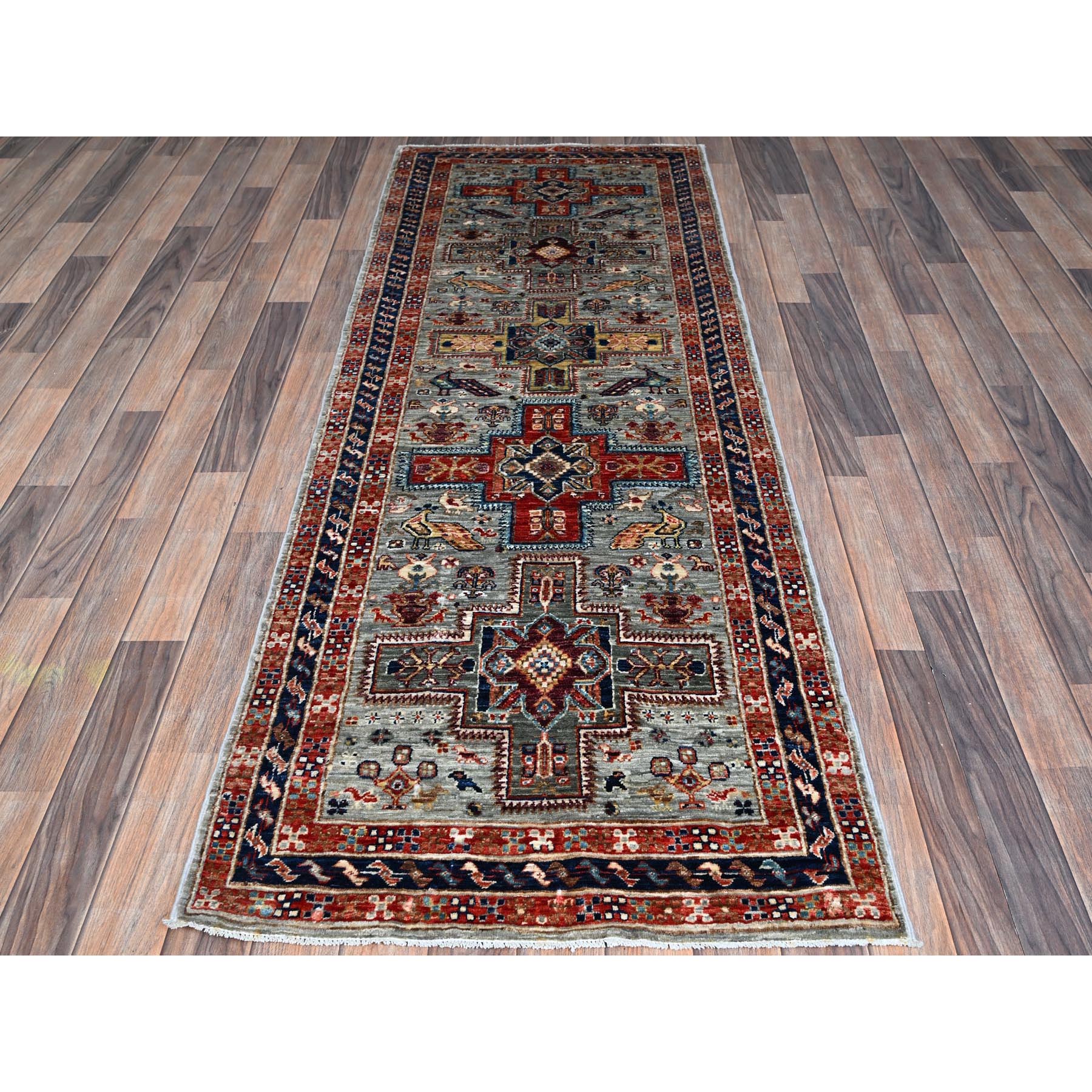 2'8"x7'5" Mirage Gray, Armenian Inspired Caucasian Design With Bird Figurines, Hand Knotted, Super Fine Wool, 200 Kpsi, Denser Weave, Vegetable Dyes, Runner, Oriental Rug FWR8052