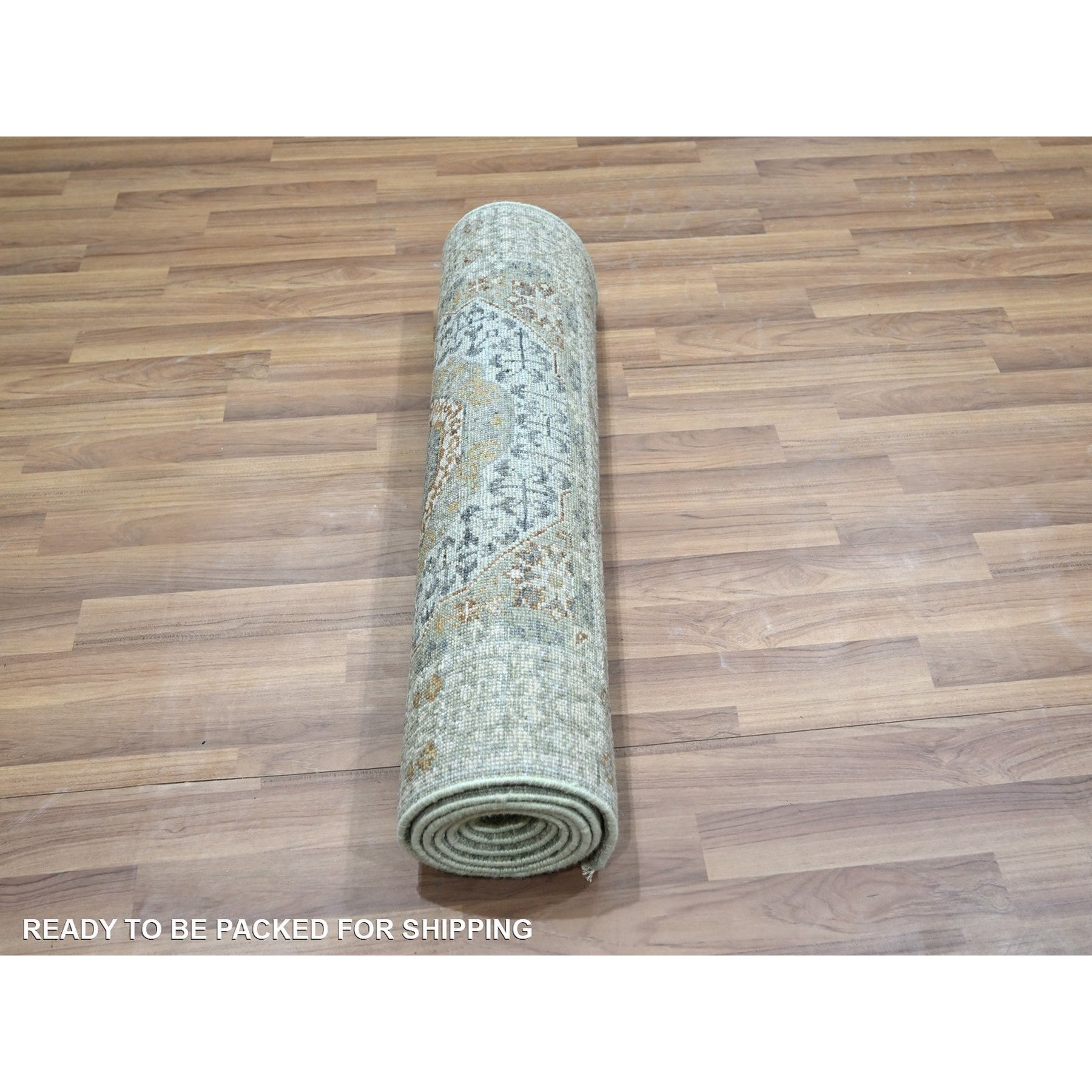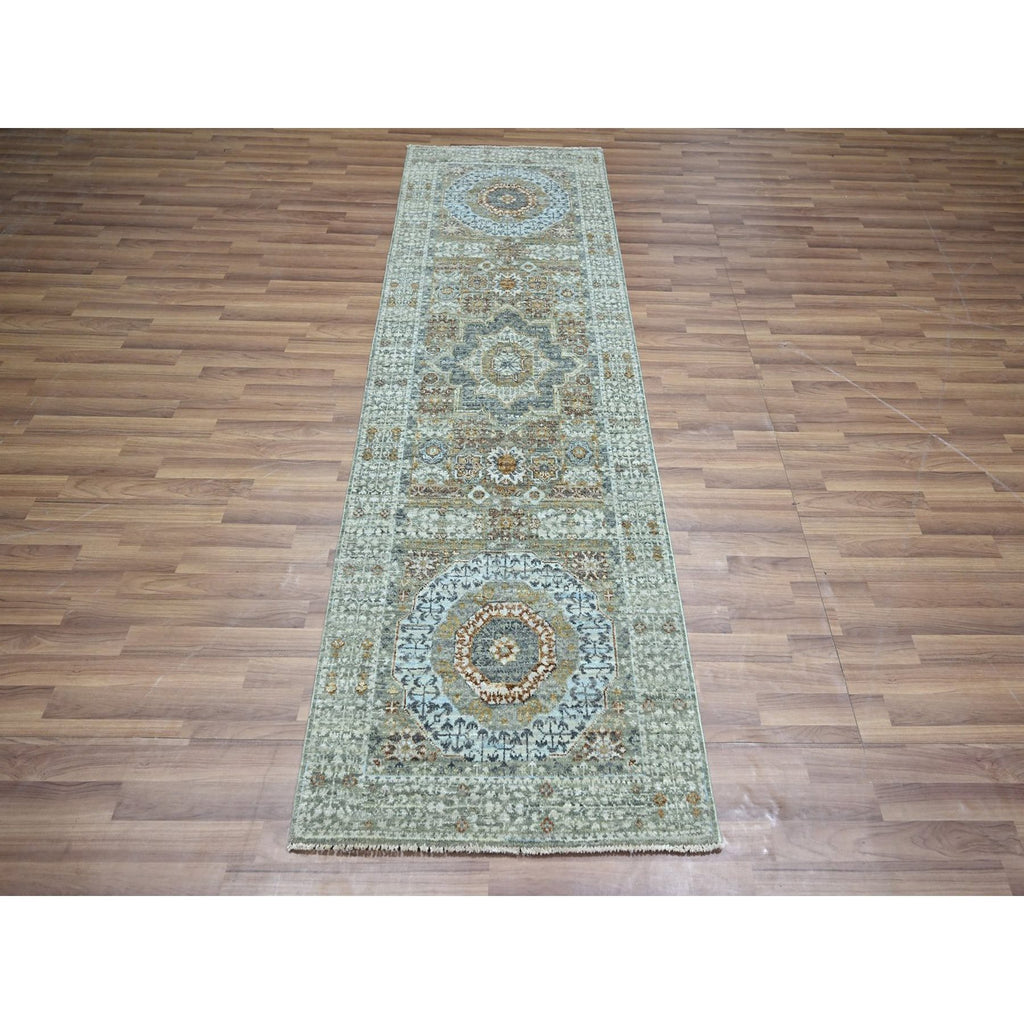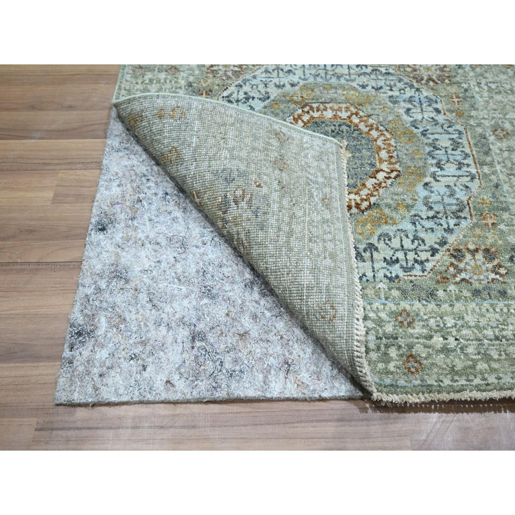 2'8"x8'1" Sage Green, Hand Knotted, Pre Historic 14th Century Influence, Mamluk Design, Natural Dyes, Pure Wool, Runner, Oriental Rug FWR460860