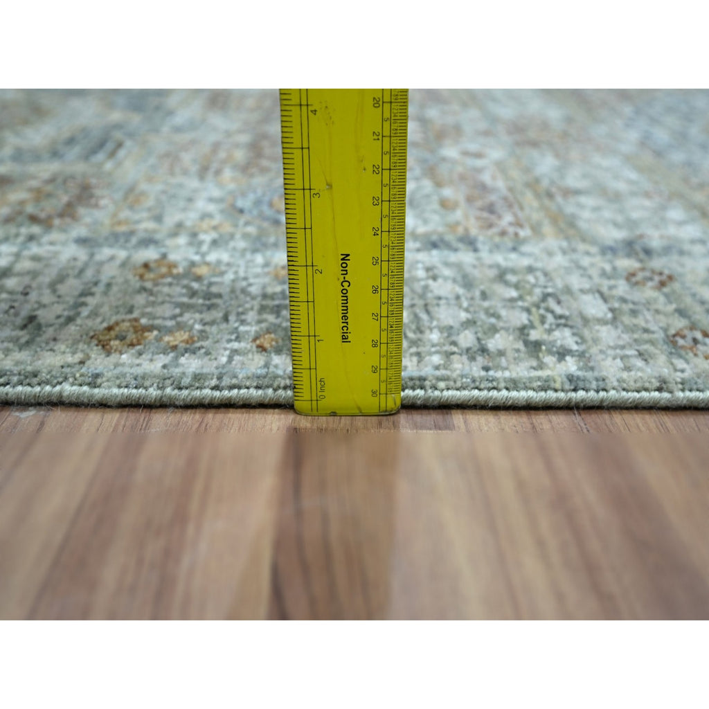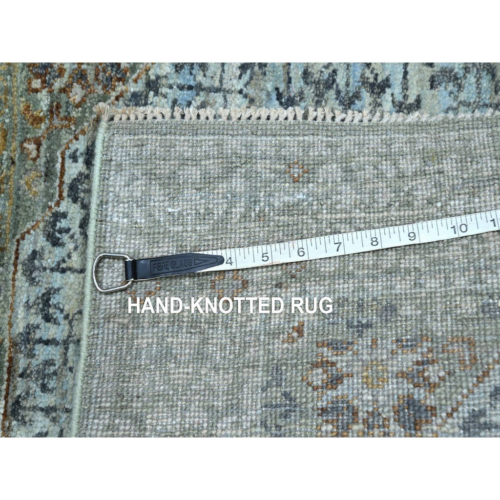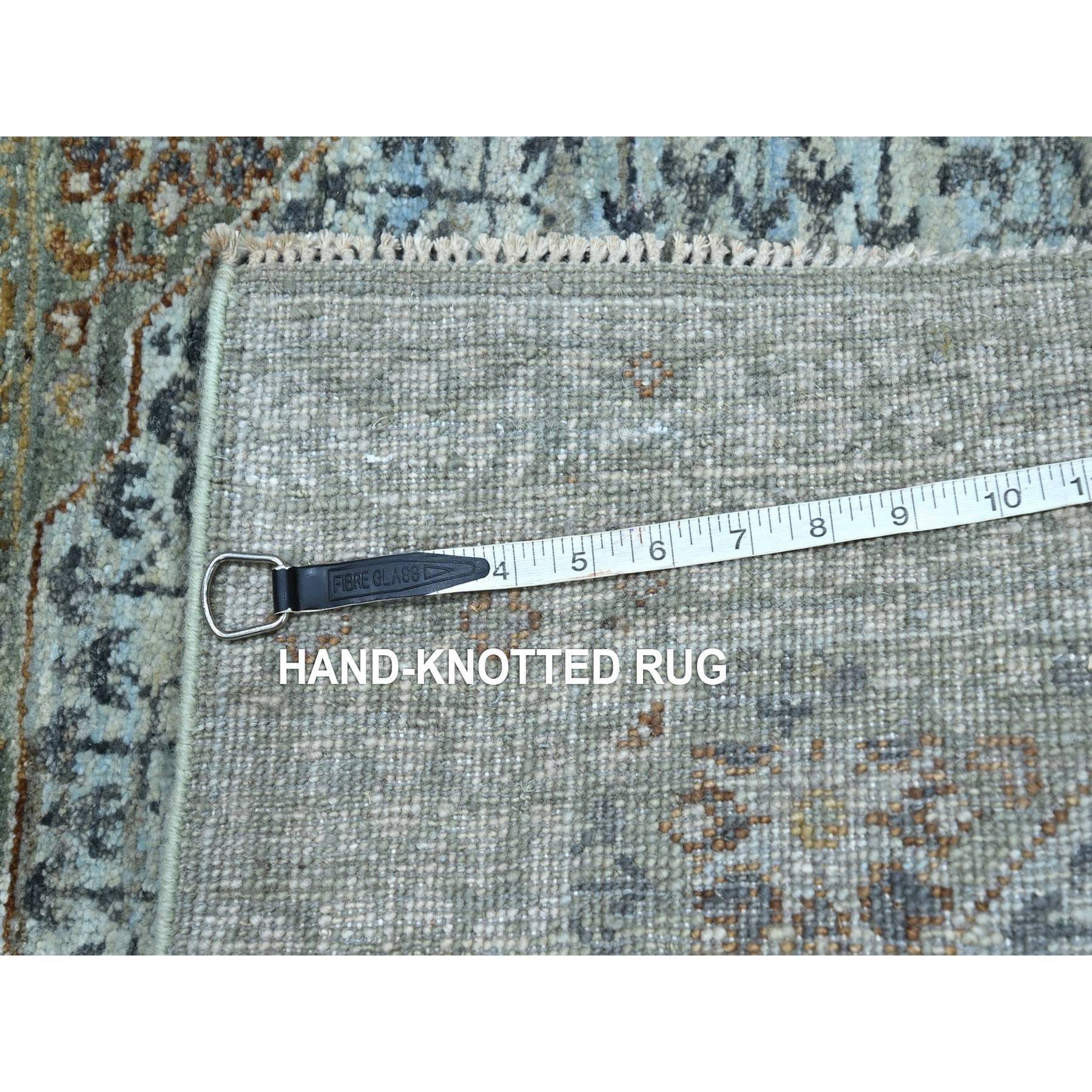 2'8"x8'1" Sage Green, Hand Knotted, Pre Historic 14th Century Influence, Mamluk Design, Natural Dyes, Pure Wool, Runner, Oriental Rug FWR460860