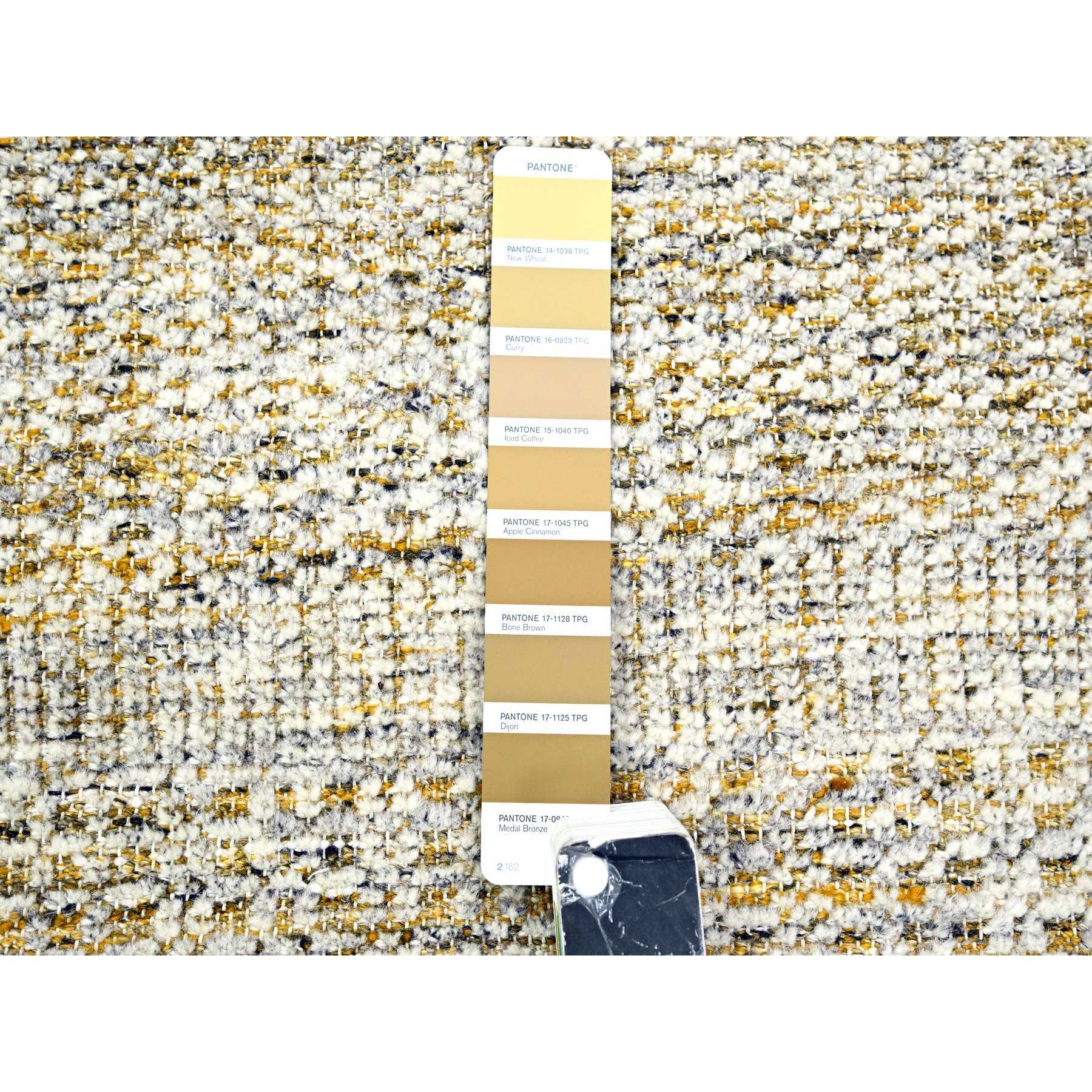 2'8"x8'2" Daisy White With Golden Yellow, Hand Knotted, Oxidized And Distressed Grass Design With Exposed Warps, 100% Wool, Runner, Oriental Rug FWR457650