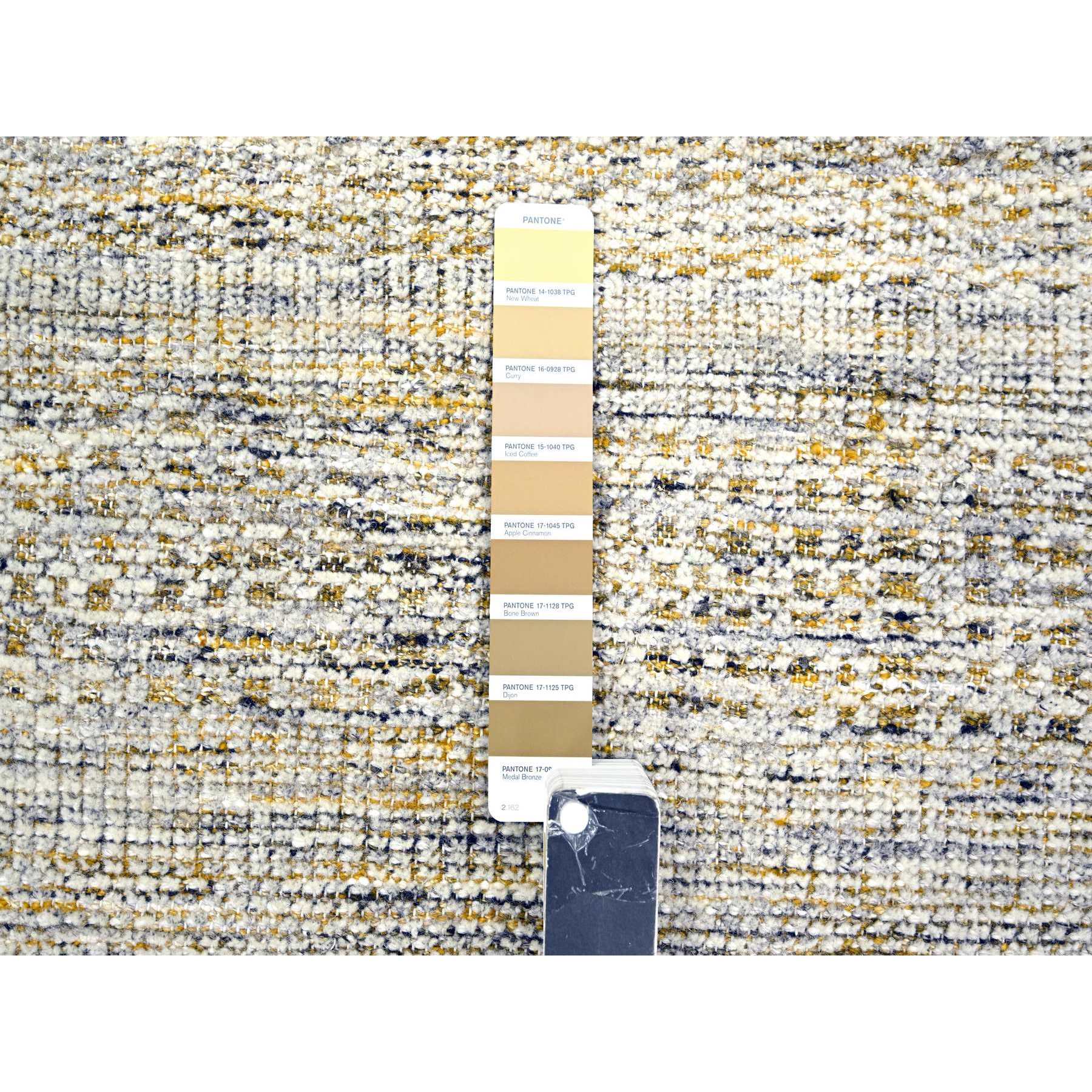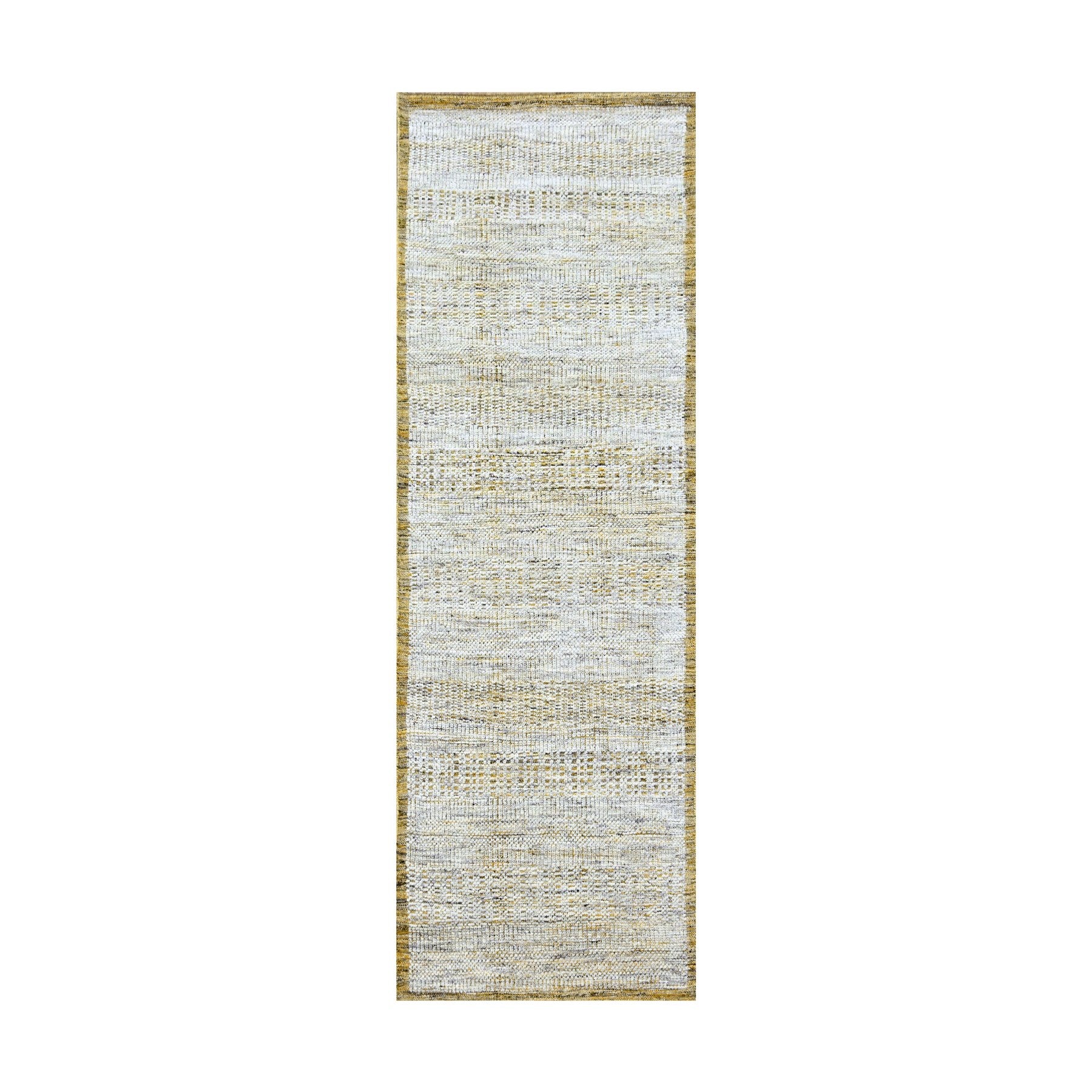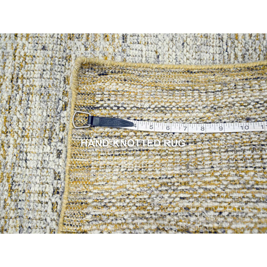 2'8"x8'2" Mustard Yellow, Oxidized And Distressed Grass Design With Exposed Warps, Natural Wool, Hand Knotted, Runner, Oriental Rug FWR457638