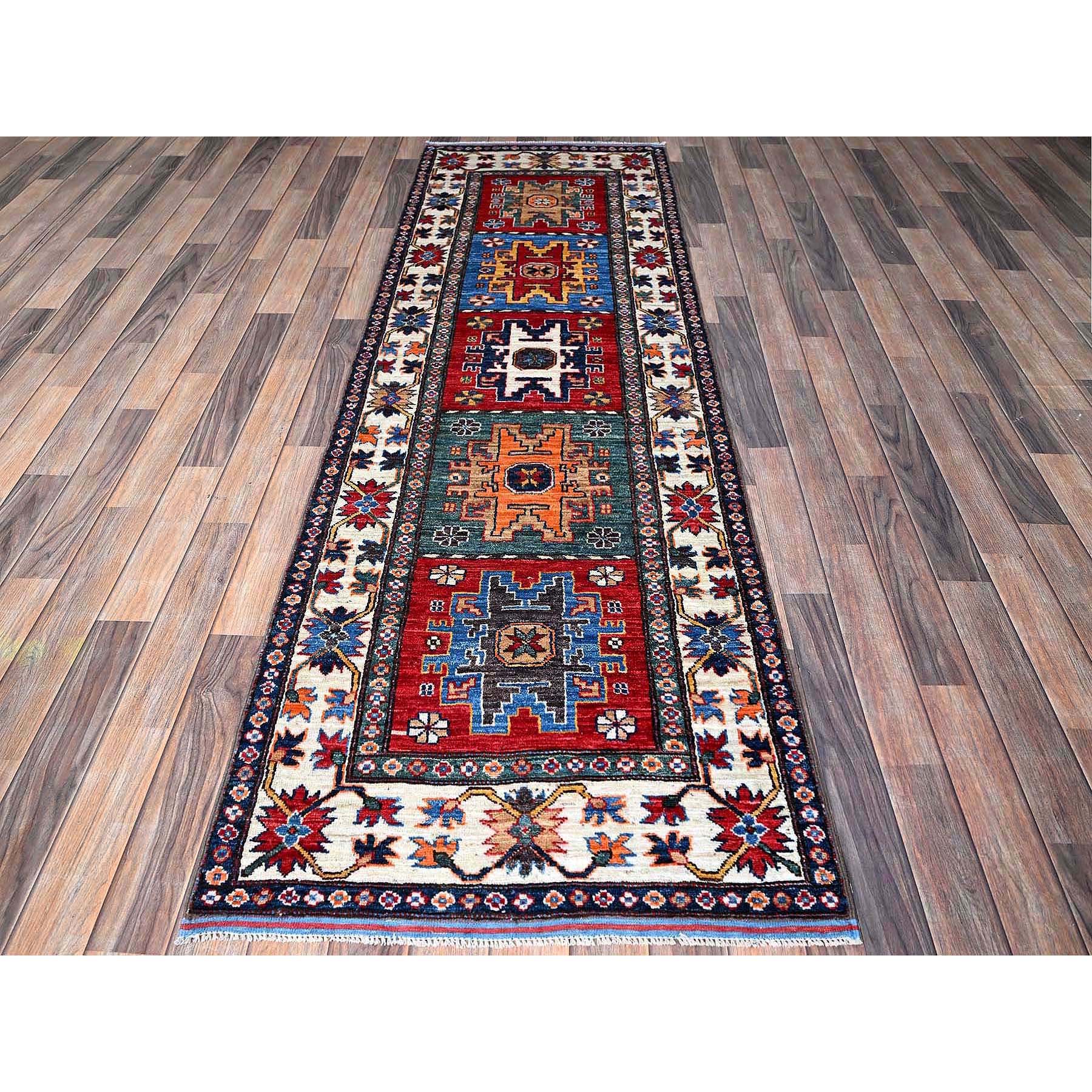 2'8"x8'3" Berry Red, Hand Knotted, Colorful Afghan Ersari With Turkish Knot, Caucasian Design Revival, Vegetable Dyes, Densely Woven, Soft Wool, Runner, Oriental Rug FWR3696