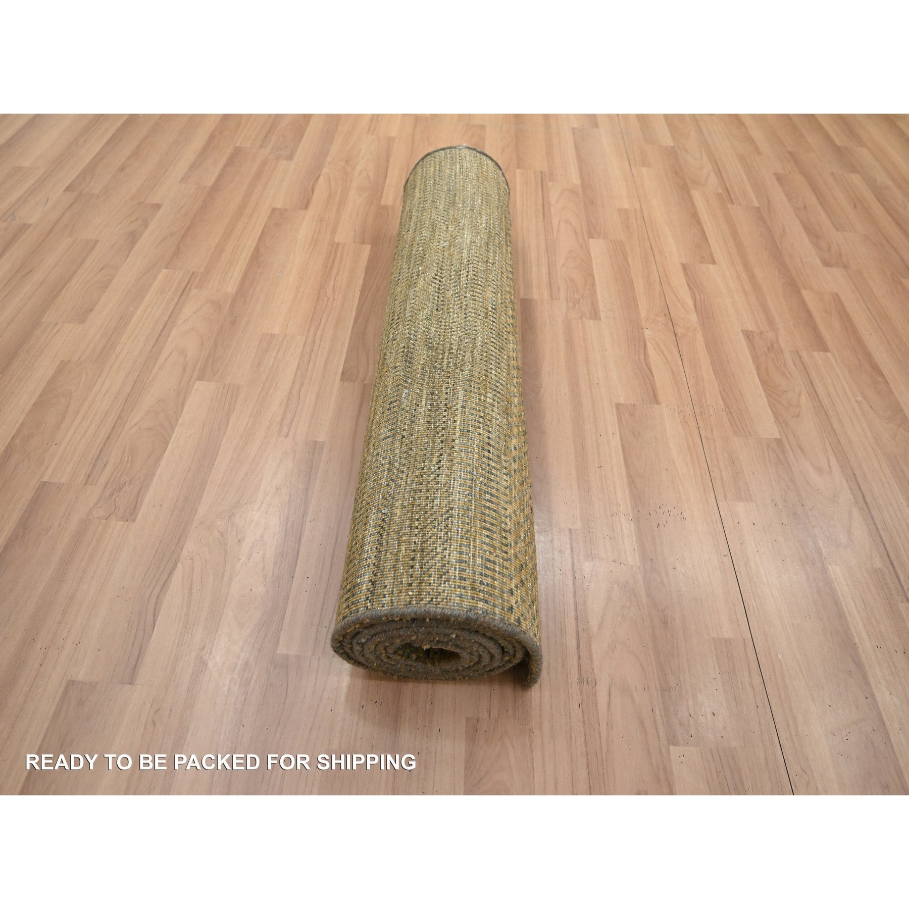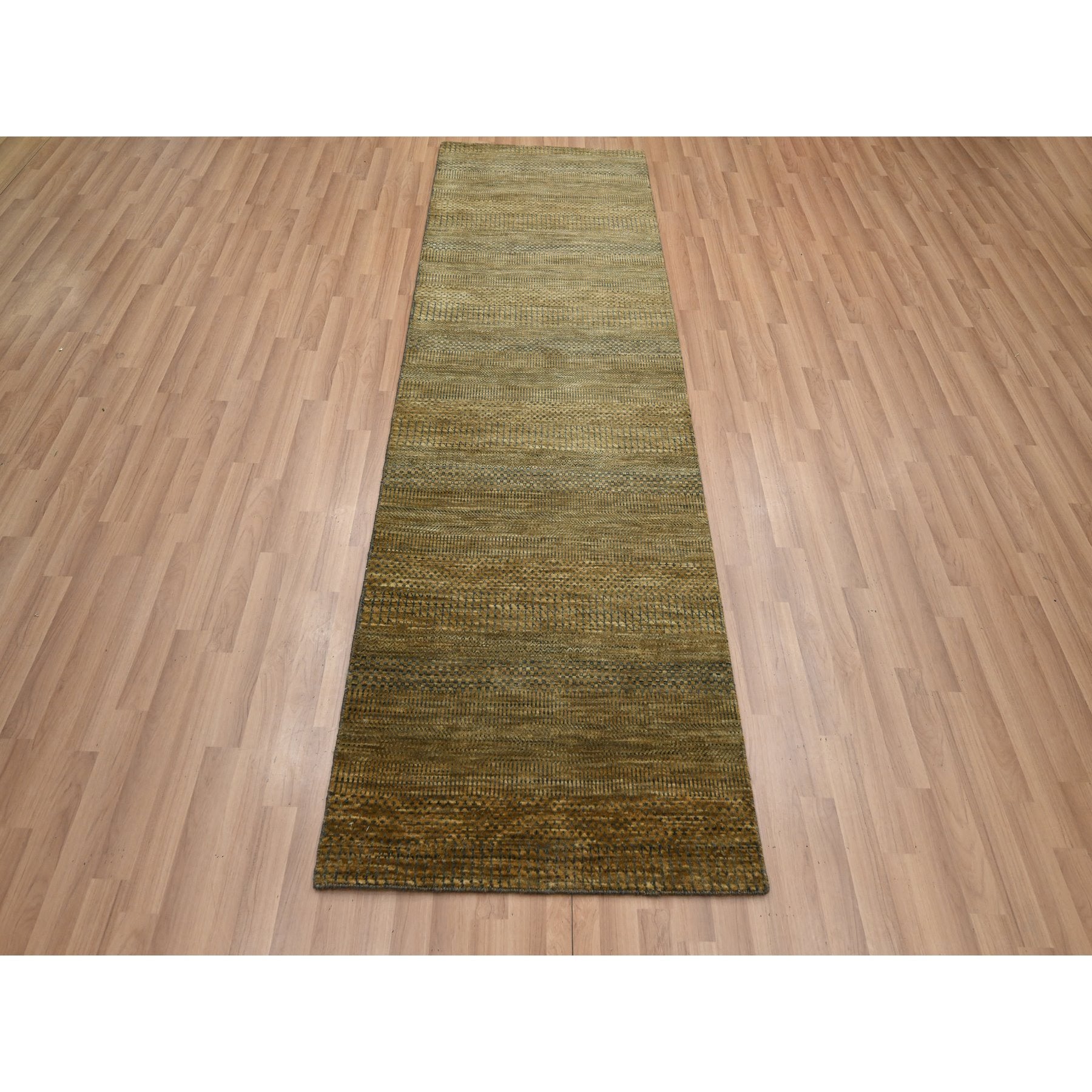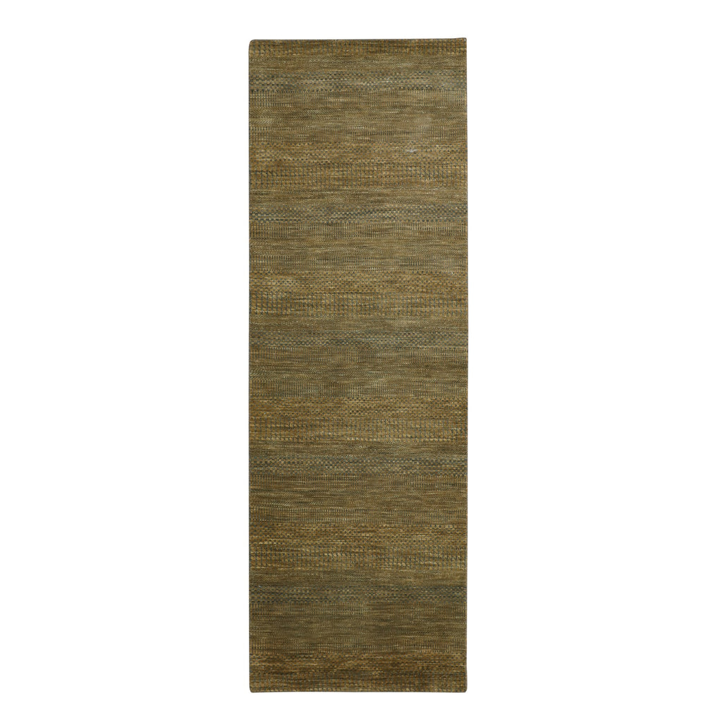 2'8"x8' Almond Brown, Hand Knotted, Modern Grass Design, Denser Weave, Wool And Silk, Lush And Plush, Runner, Oriental Rug FWR499392