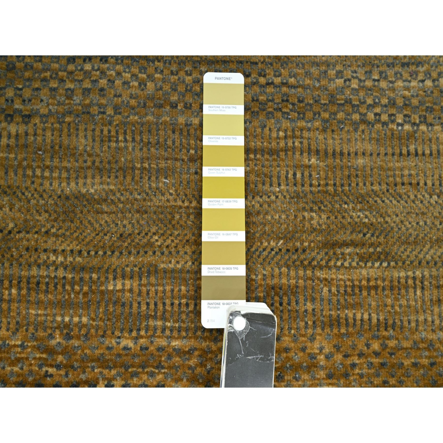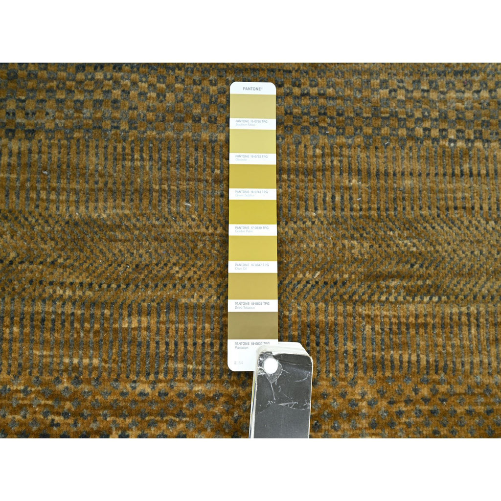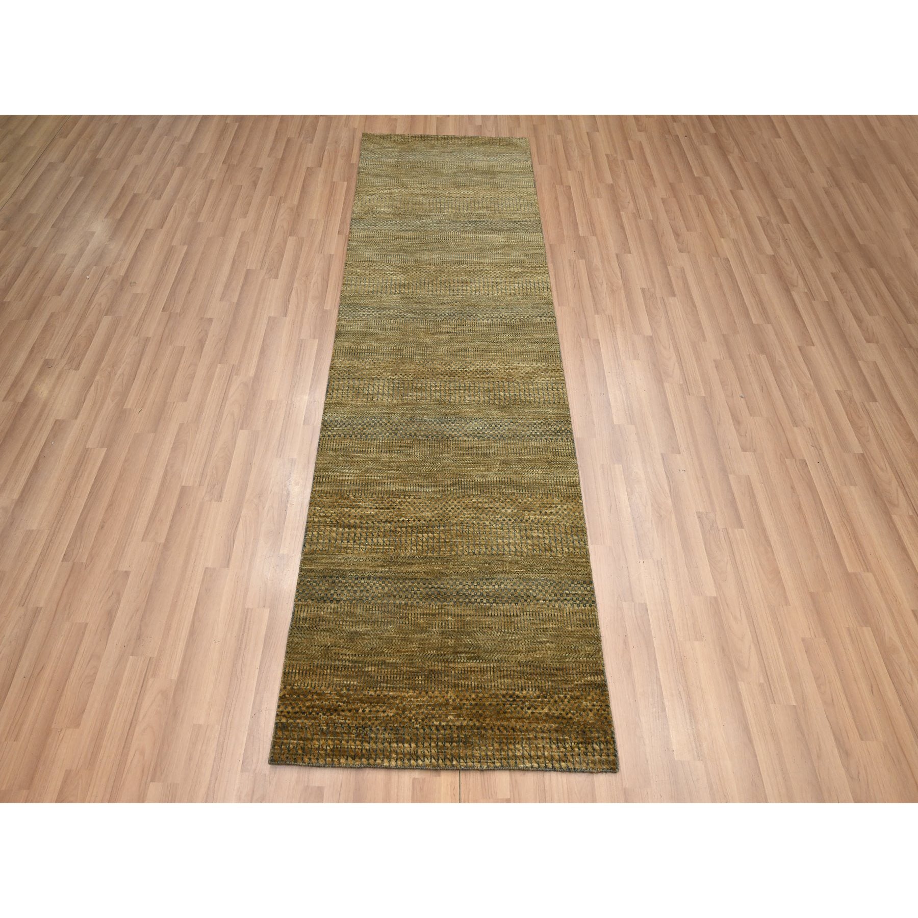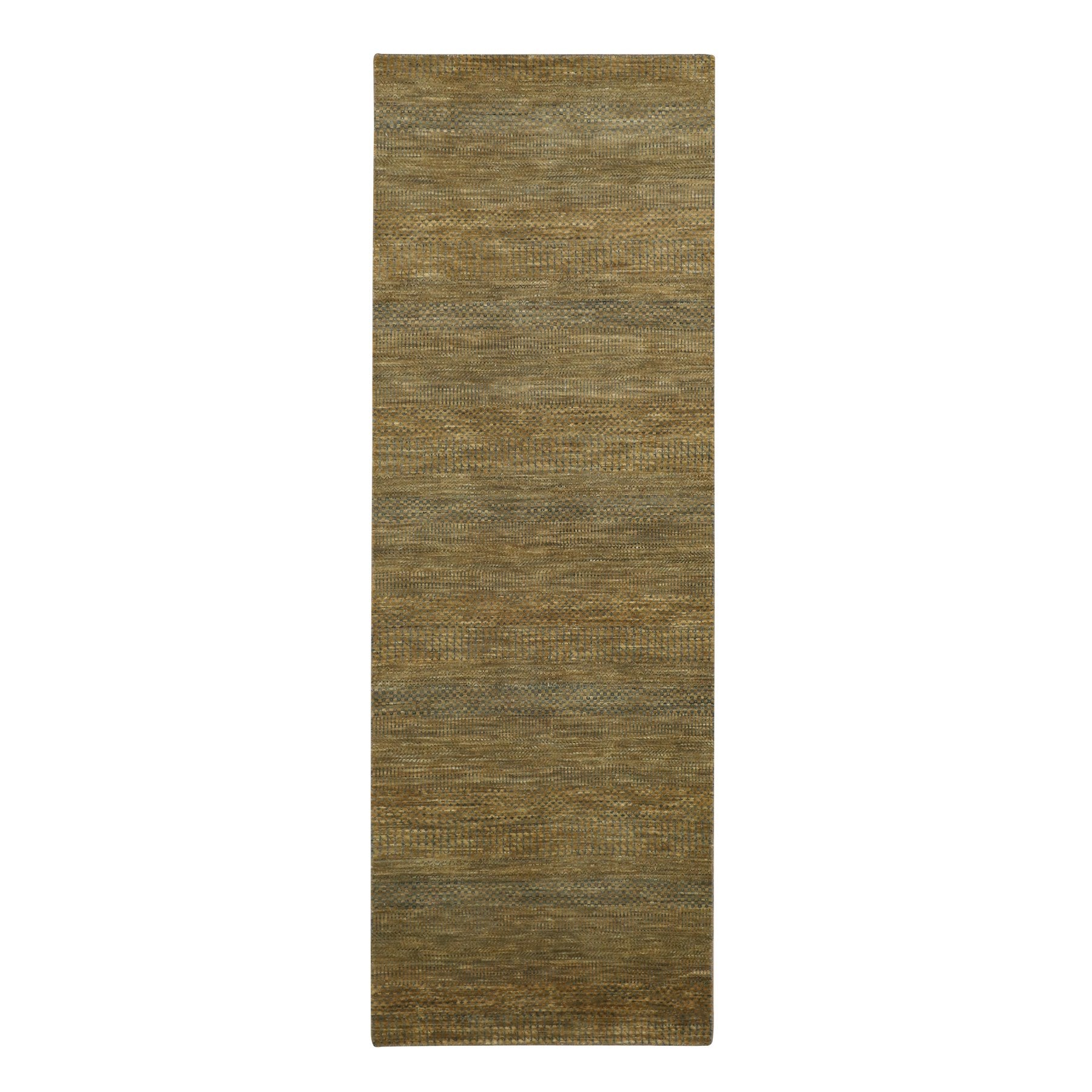 2'8"x8' Almond Brown, Modern Grass Design, Wool And Silk, Hand Knotted, Denser Weave, Lush And Plush, Runner, Oriental Rug FWR499368