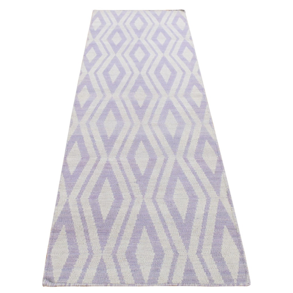2'8"x8' Little Princess Purple, 100% Wool, Hand Woven, Flat Weave Reversible Kilim, Runner Oriental Rug FWR527064