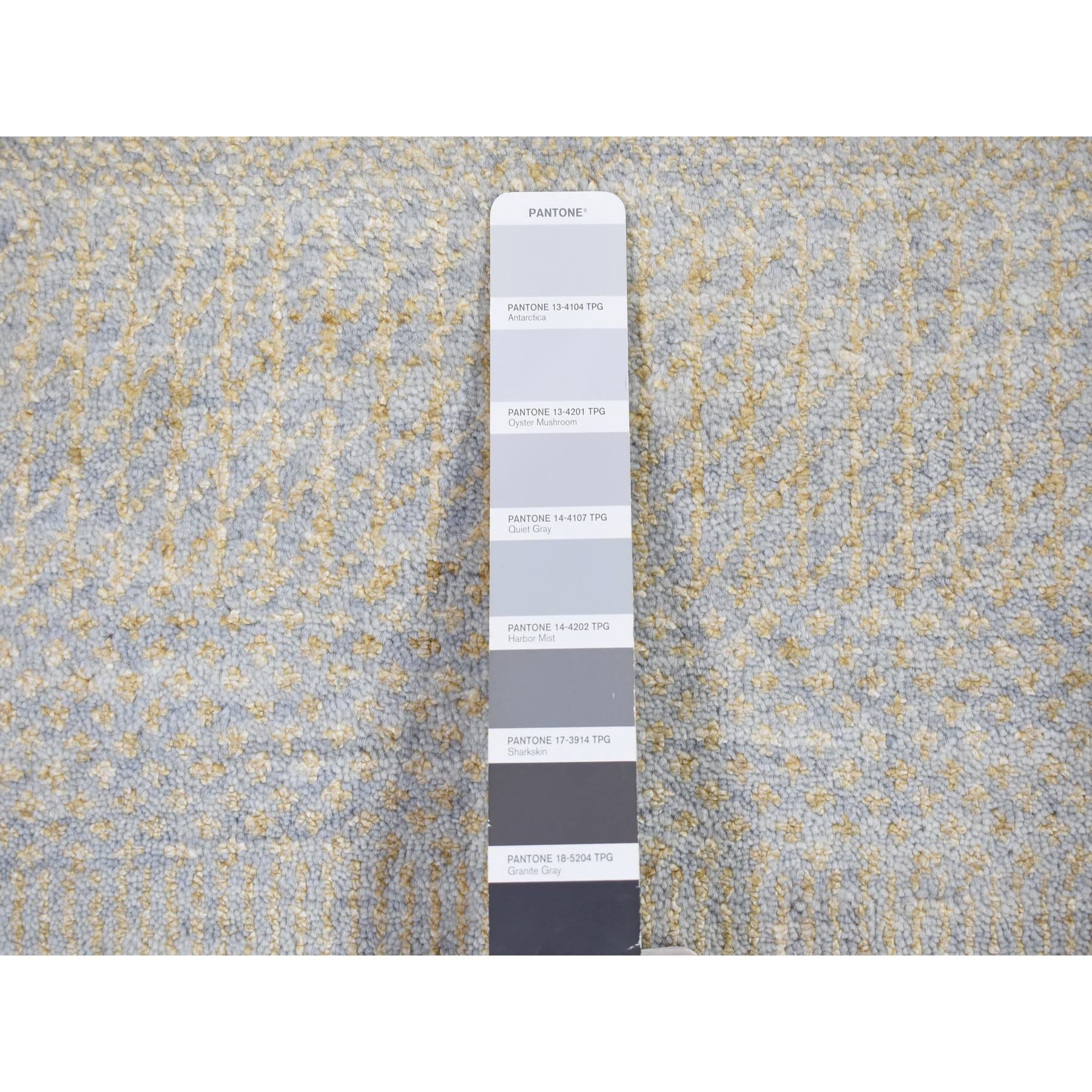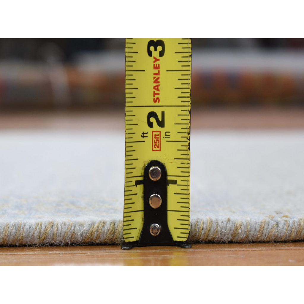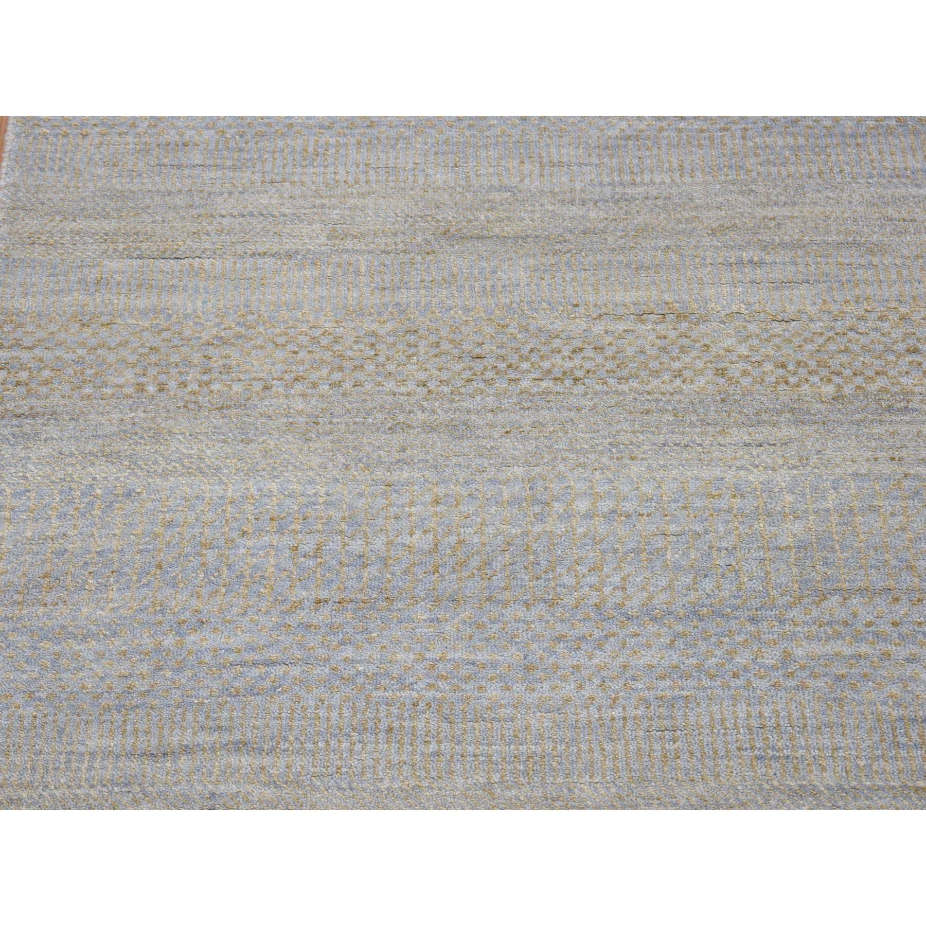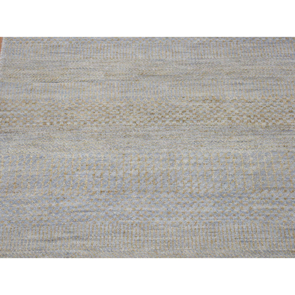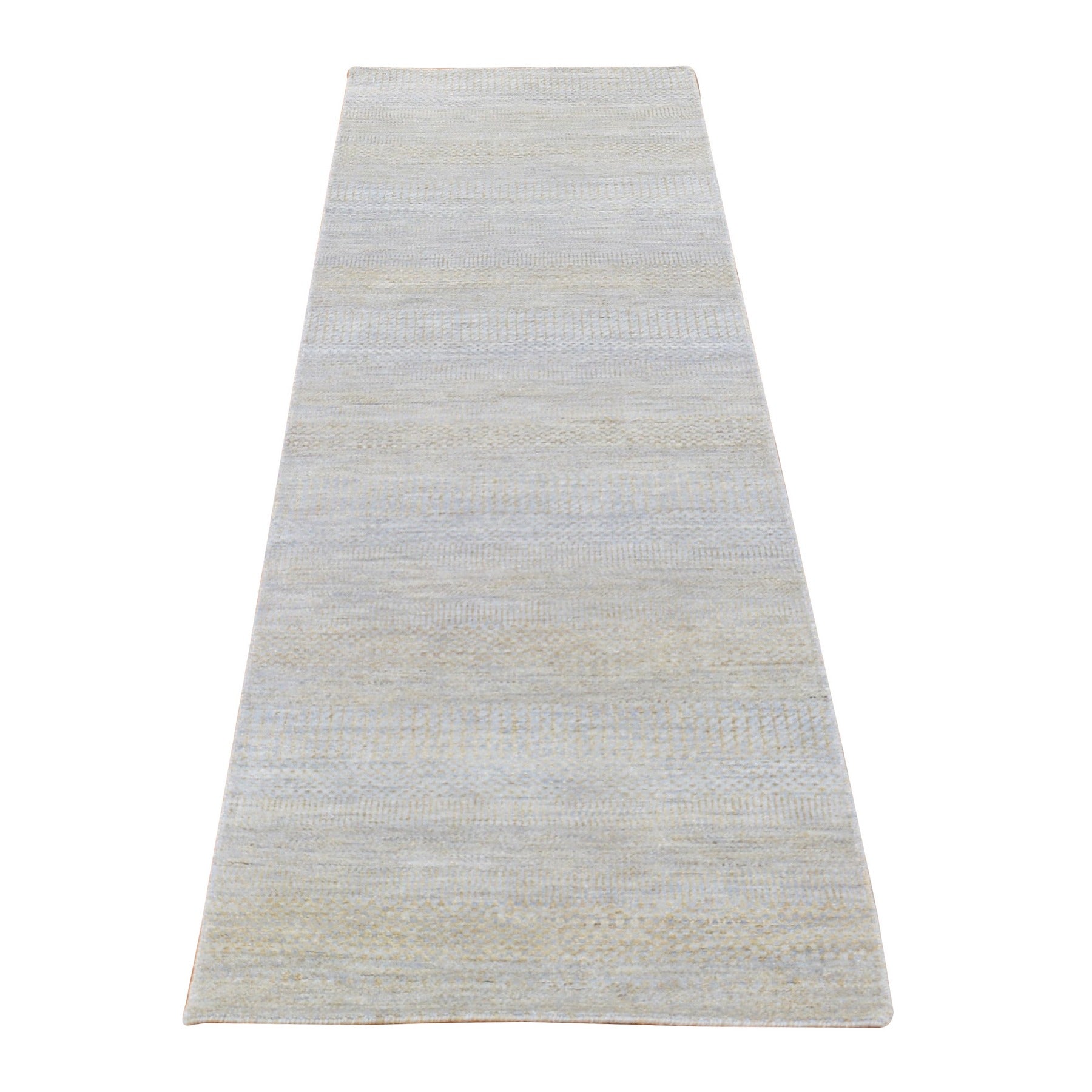 2'8"x9'1" Gray, Modern Grass Design Gabbeh, Densely Woven Hand Knotted Wool And Silk, Runner Oriental Rug FWR481002
