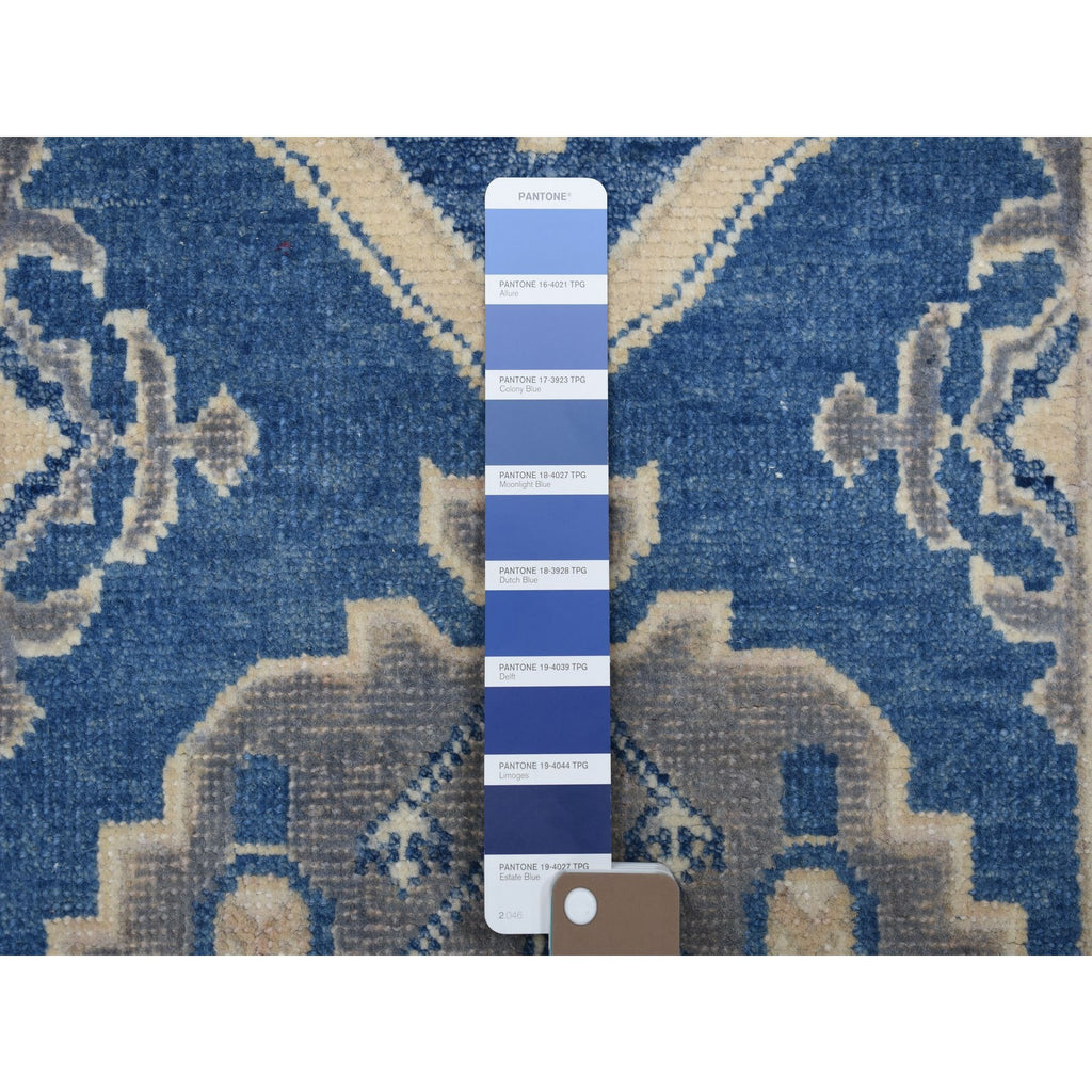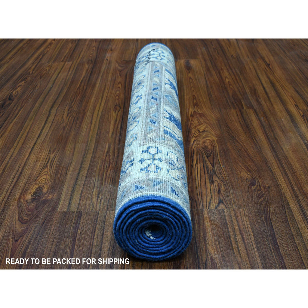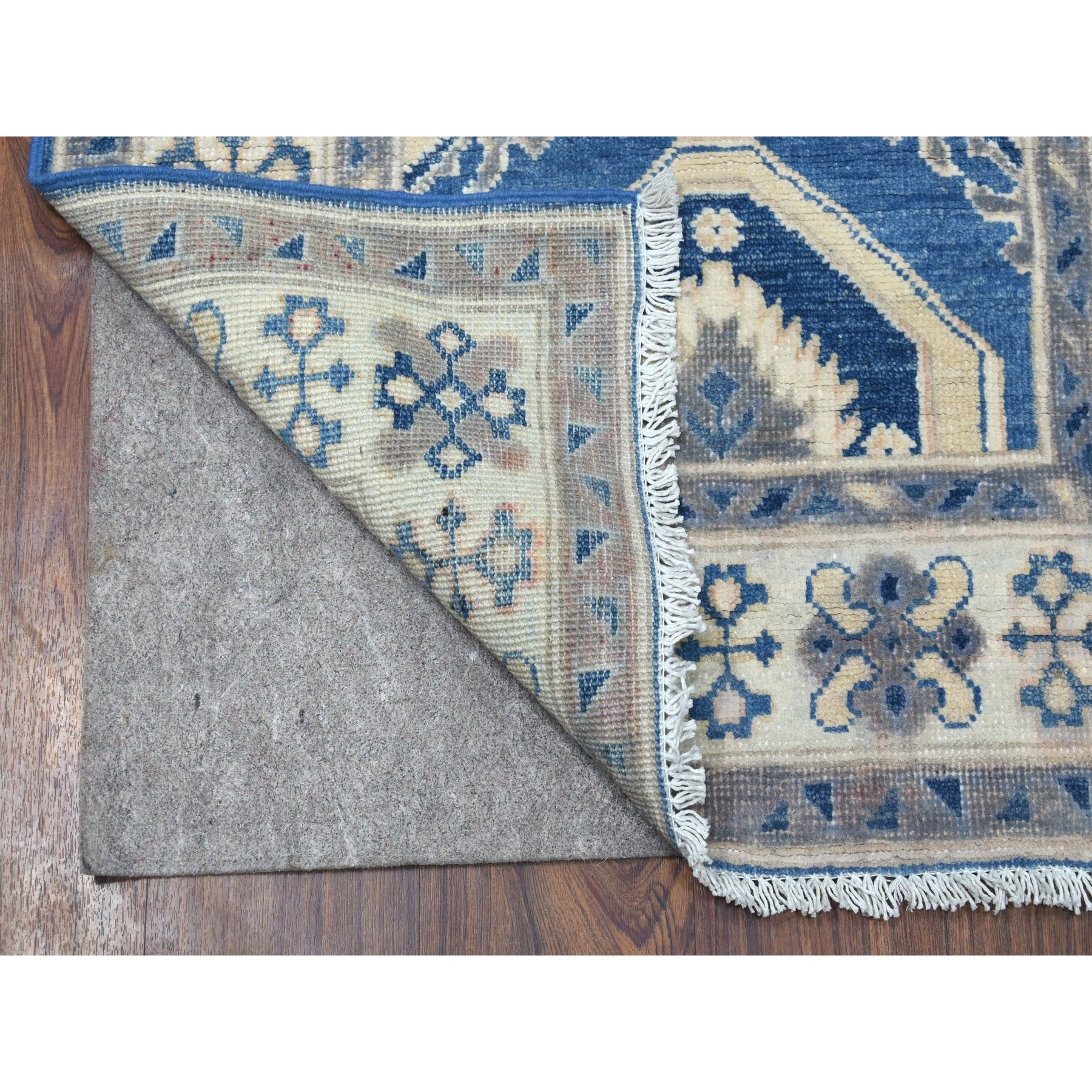 2'8"x9'5" Blue Hand Knotted Vintage Look Kazak Natural Wool Geometric Design Runner Oriental Rug FWR327978