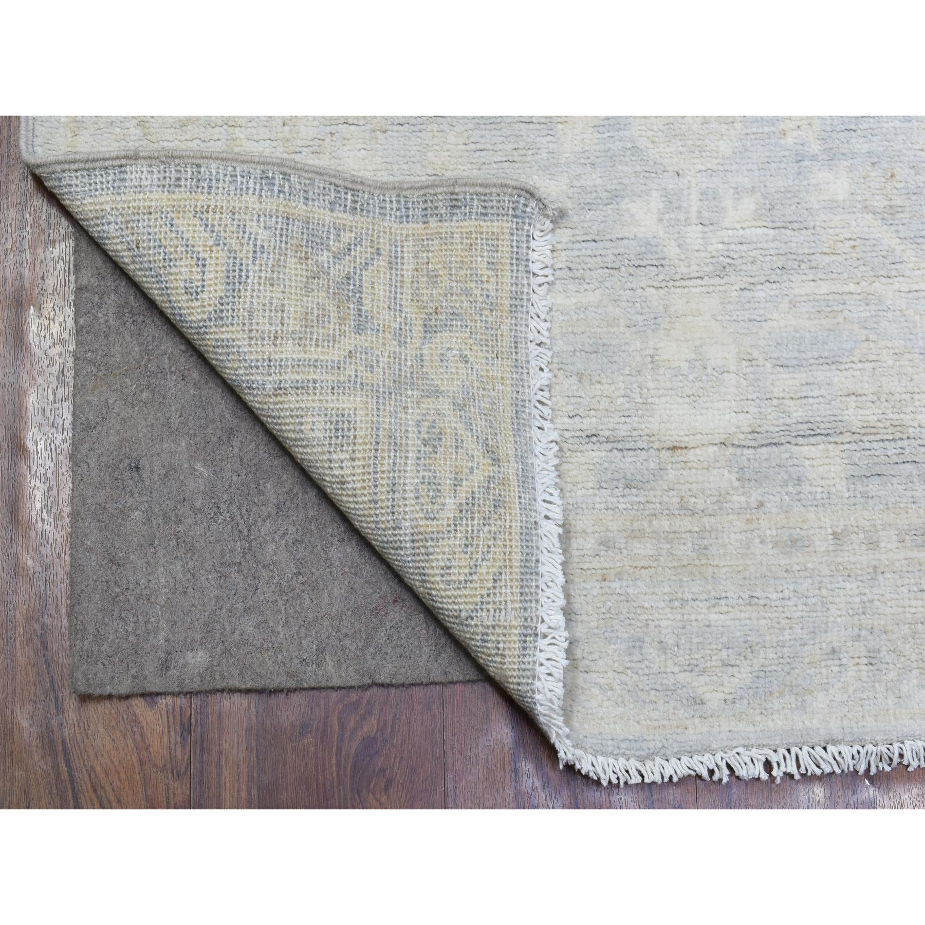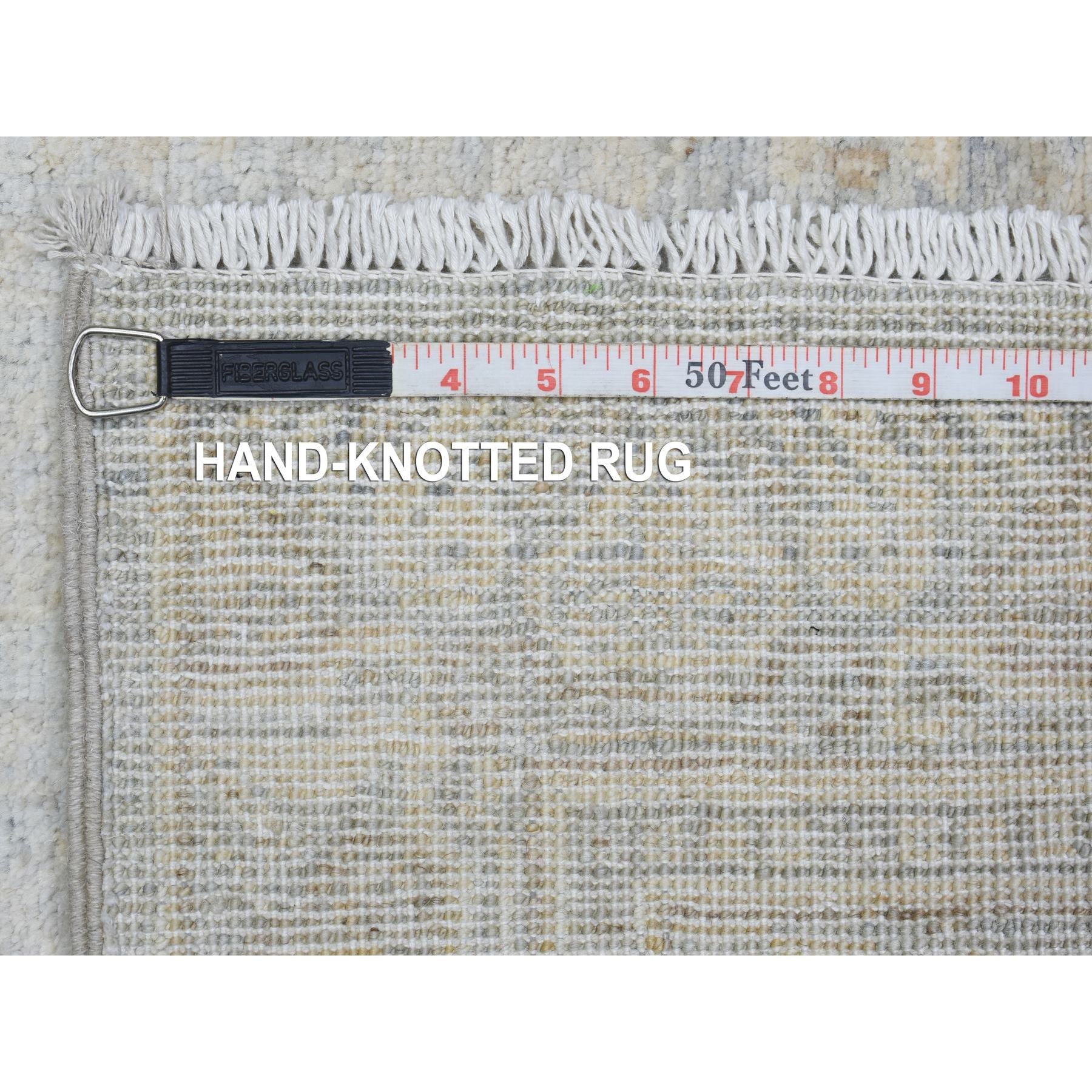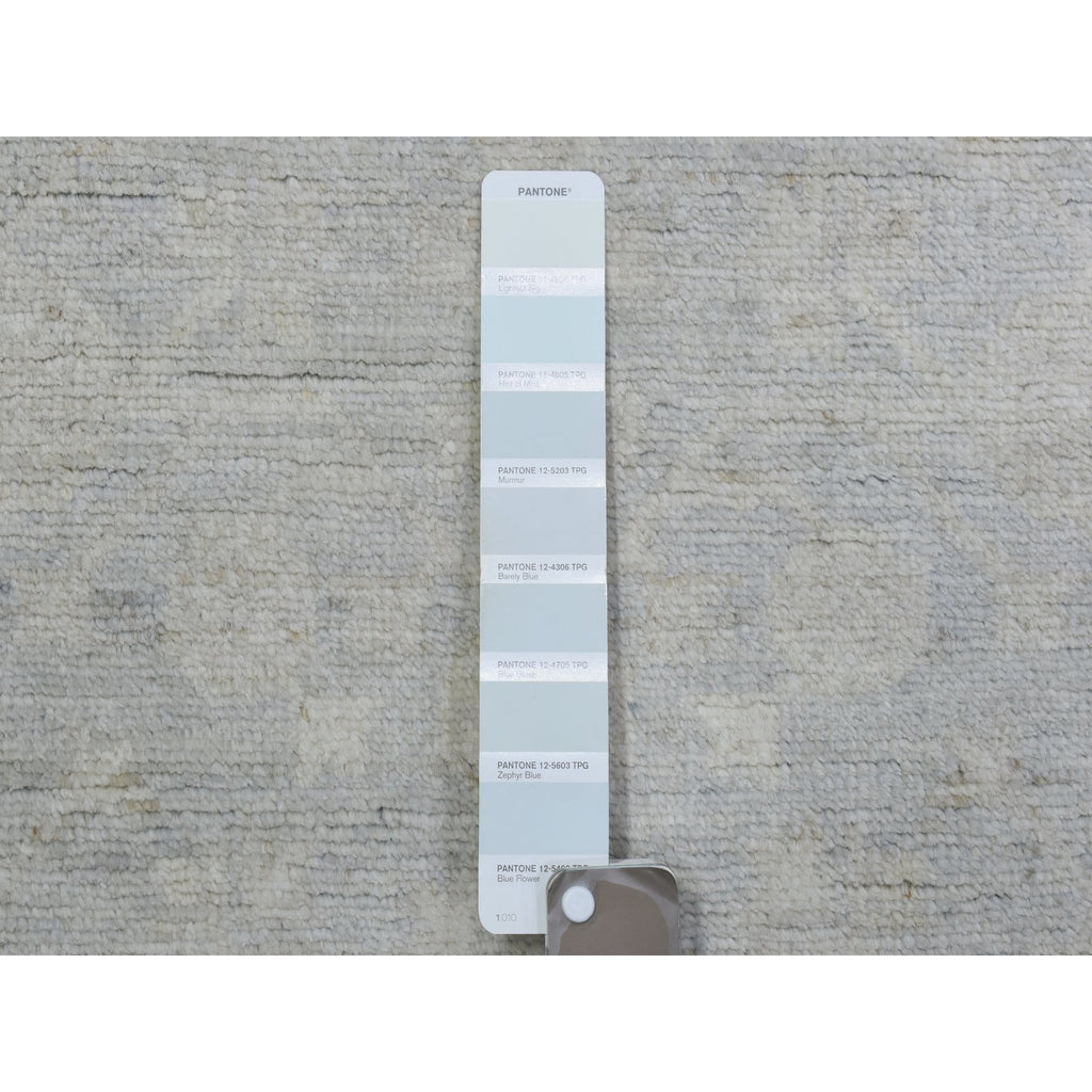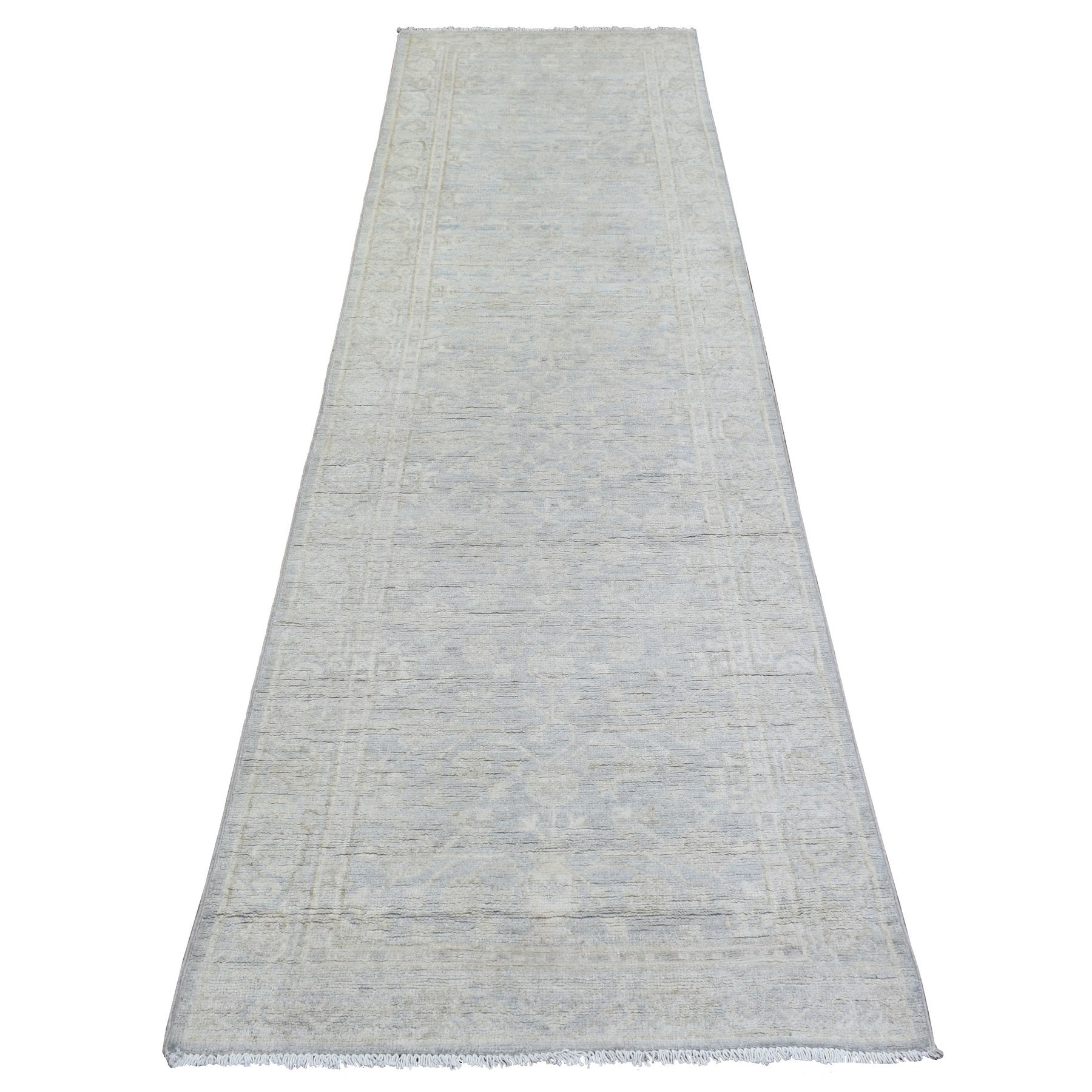 2'8"x9'6" Silver Blue, Hand Knotted Washed Out Peshawar With All Over Design, Natural Dyes Soft And Shiny Wool, Runner Oriental Rug FWR436566