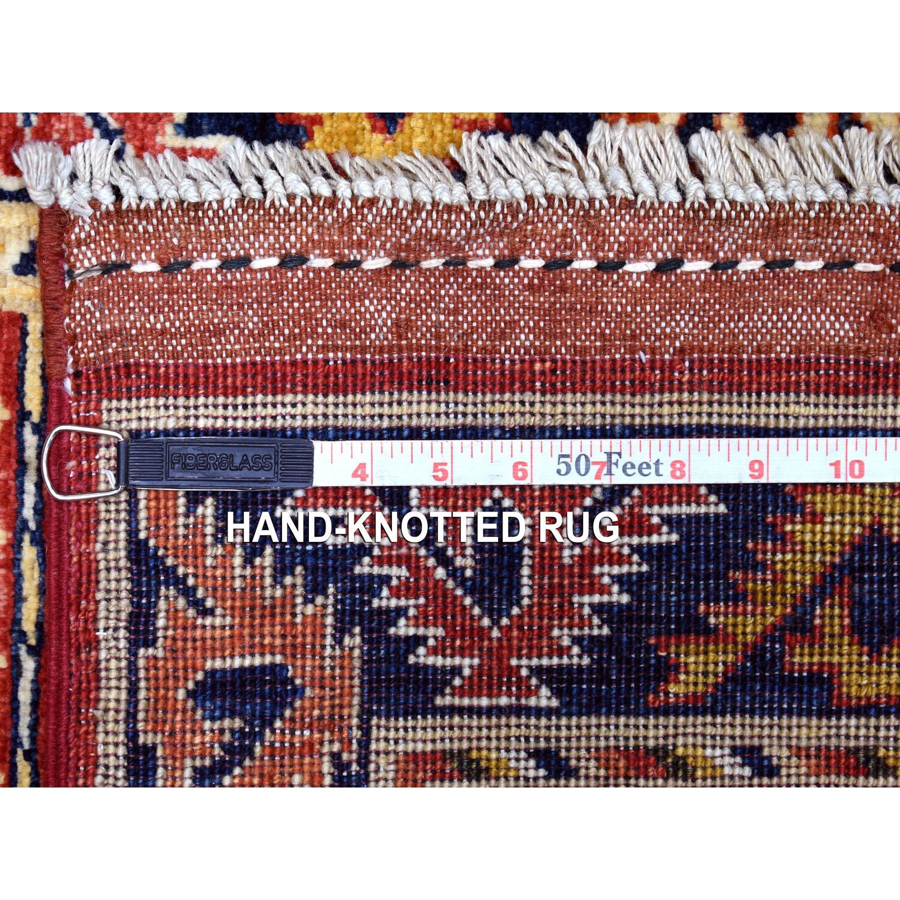 2'8"x9'7" Red Organic Wool Afghan Ersari Geometric Design Hand Knotted Oriental Runner Rug FWR341574