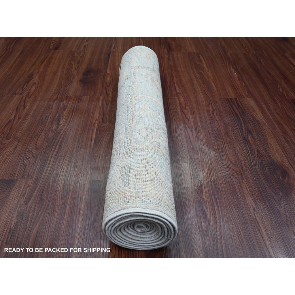 2'8"x9'8" Misty Gray, Hand Knotted, Afghan Angora Oushak With Cypress Tree Design, Veggie Dyes, 100% Wool, Runner, Oriental Rug FWR539400