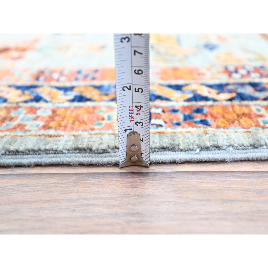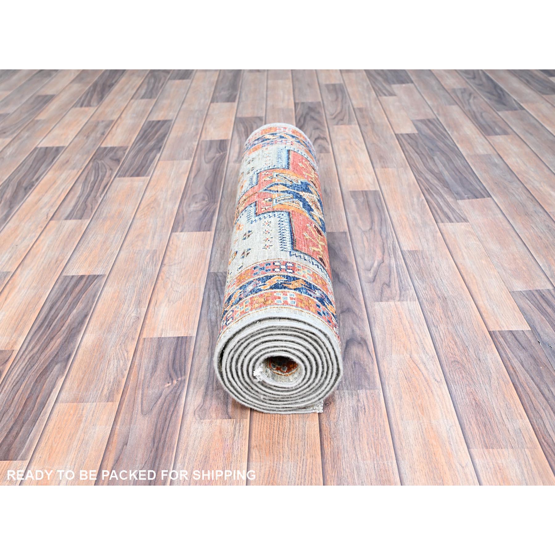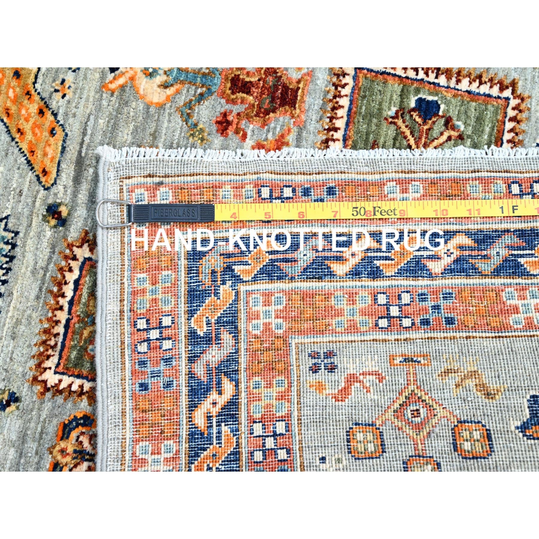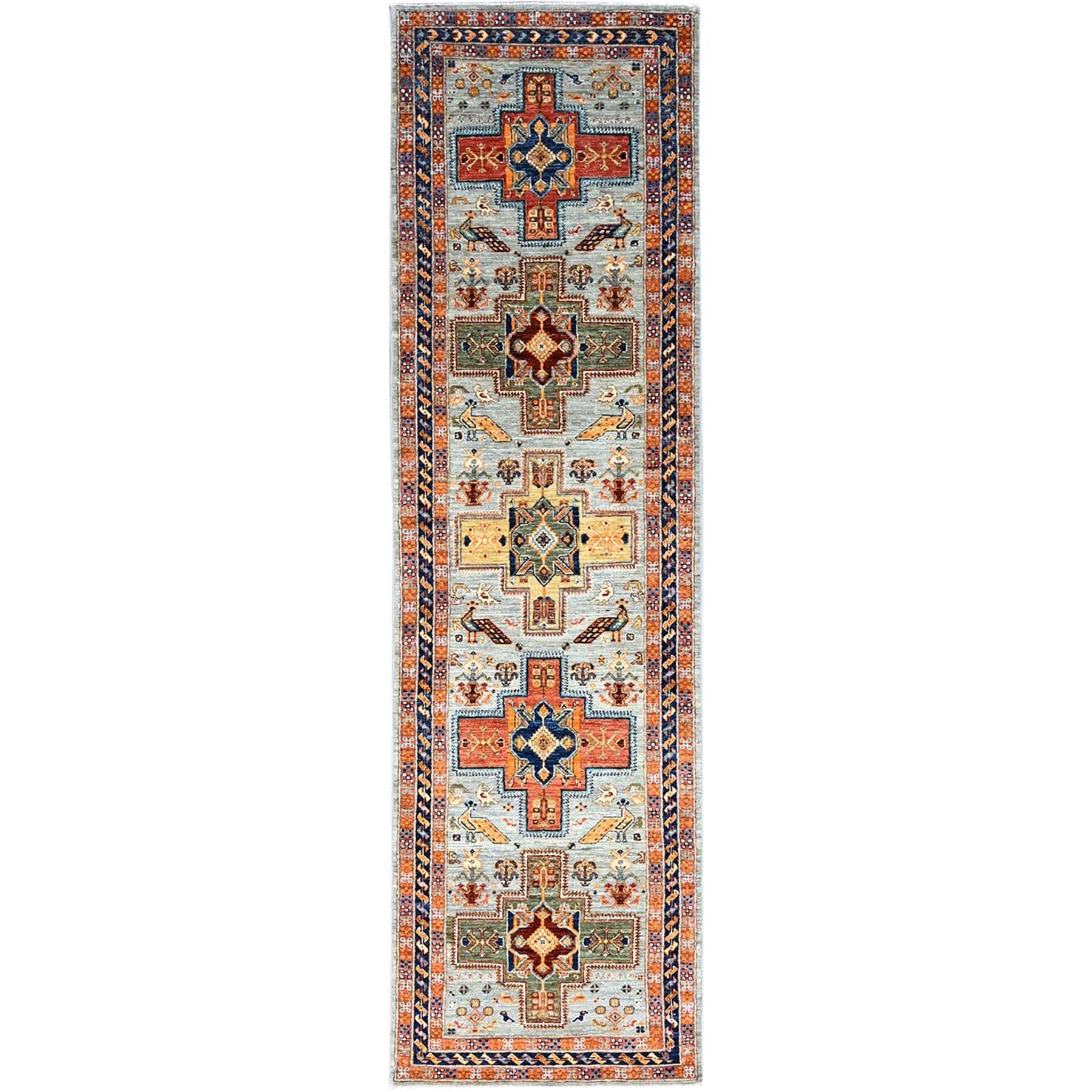 2'8"x9'8" Puritan Gray With Small Bird Figurines, 200 Kpsi, Organic Wool, Hand Knotted, Denser Weave, Vegetable Dyes, Colorful Armenian Inspired Caucasian Design, Runner Oriental Rug FWR930