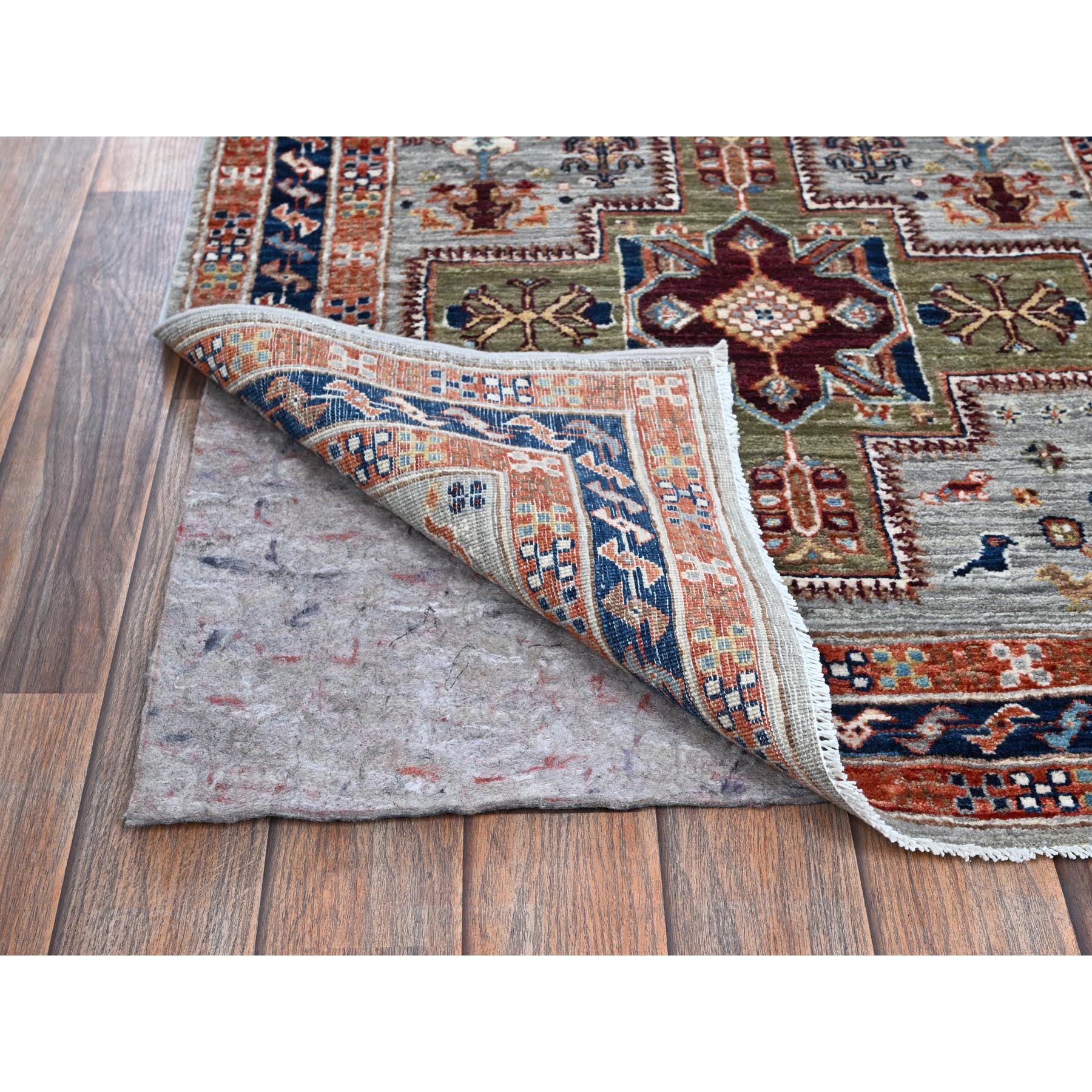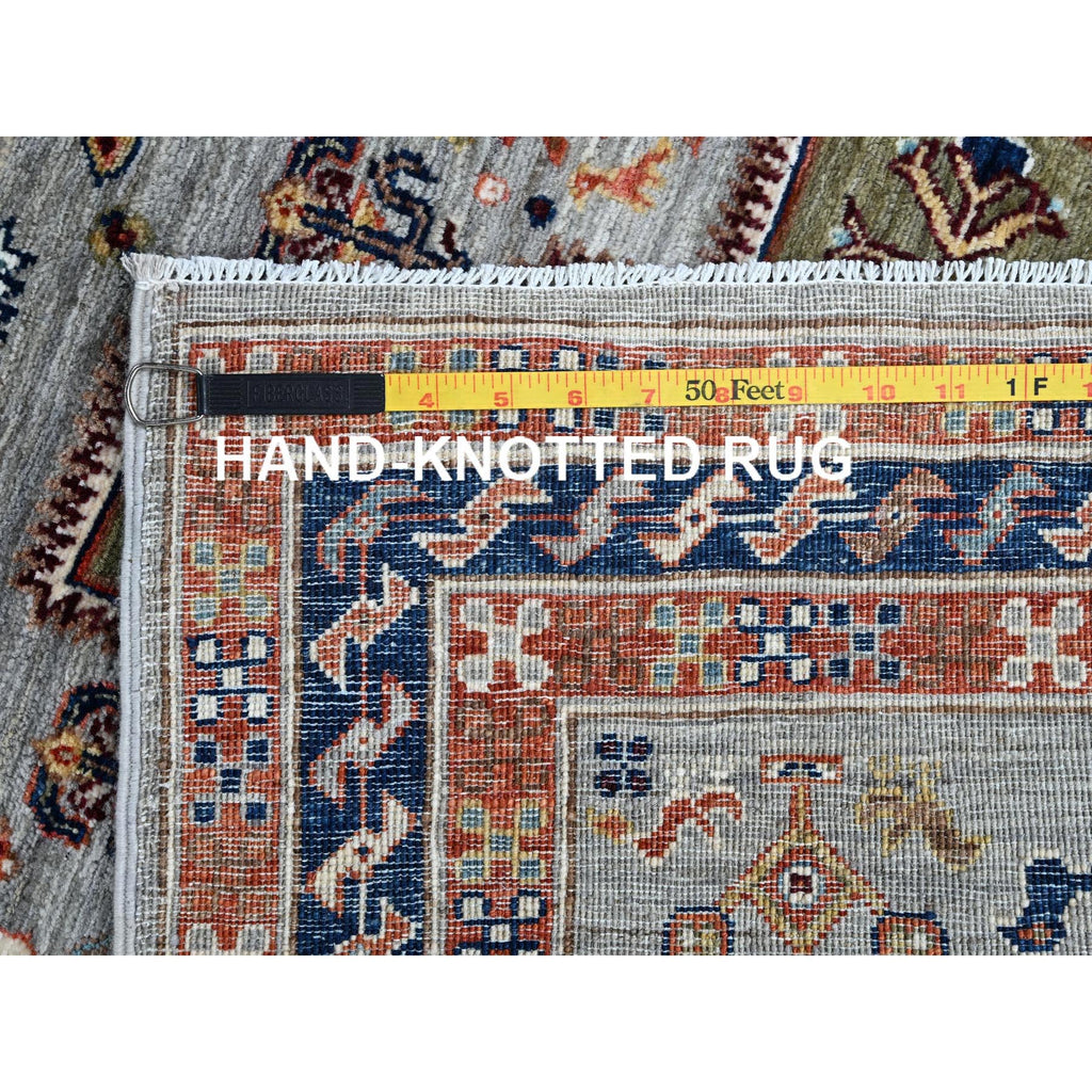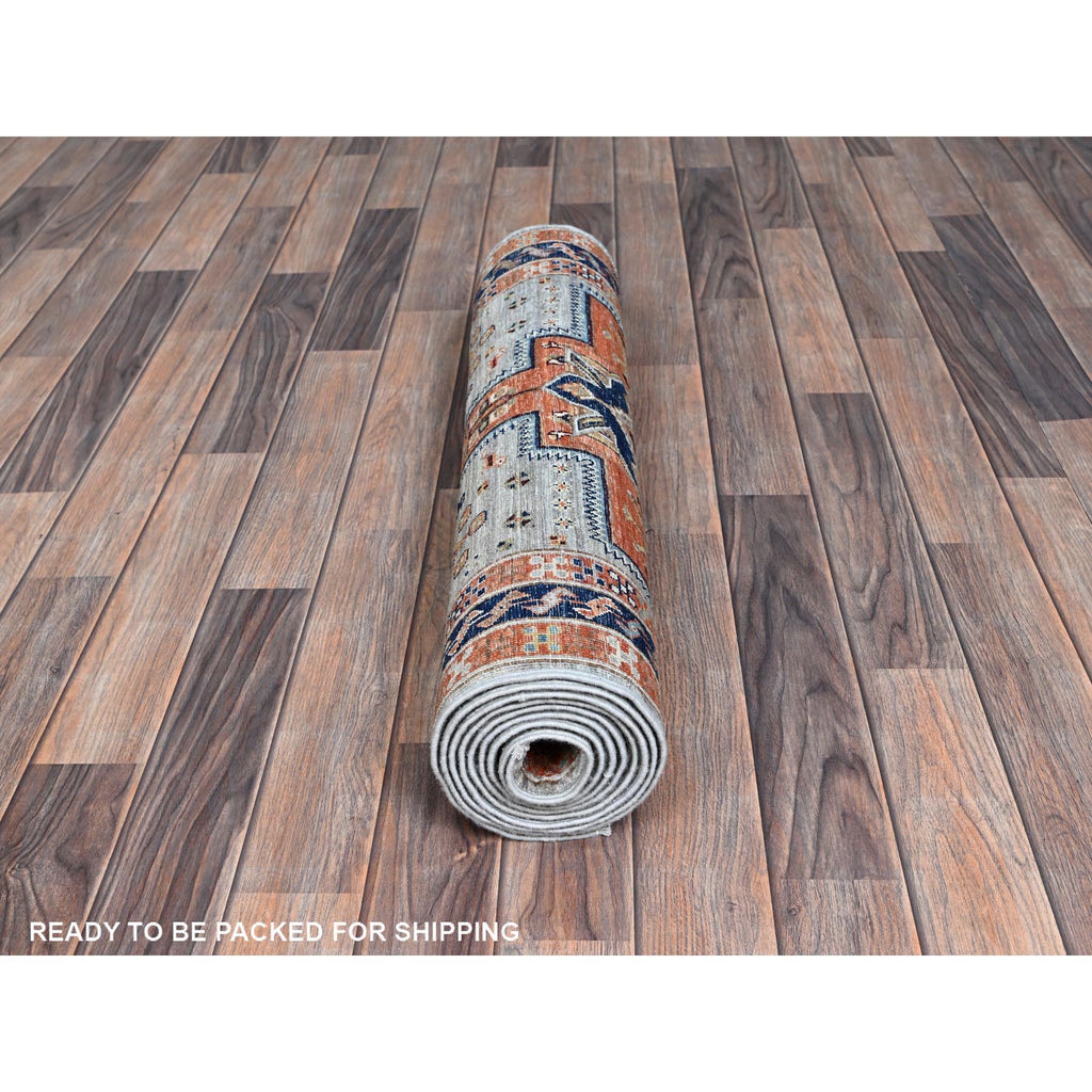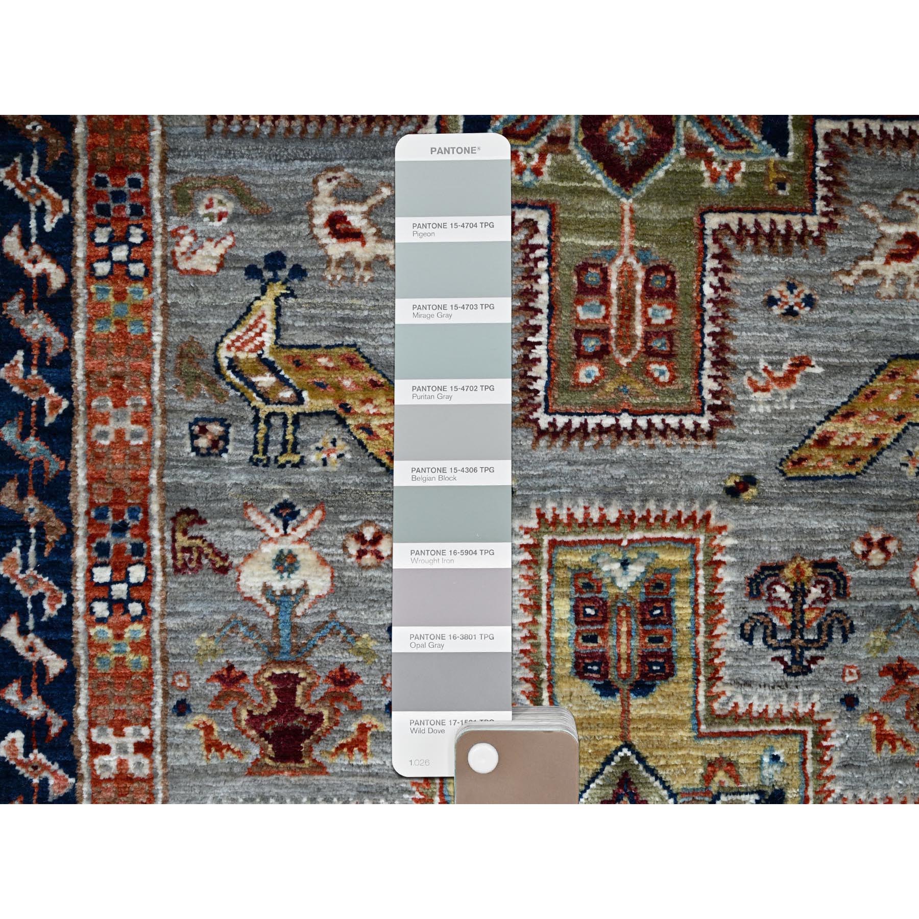 2'8"x9'8" Quiet Gray, Armenian Inspired Caucasian Design With Bird Figurines, Super Fine Wool, 200 Kpsi, Hand Knotted, Denser Weave, Vegetable Dyes, Runner, Oriental Rug FWR8064