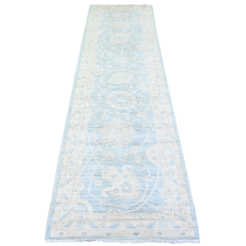 2'8"x9'9" Beau Blue, Hand Knotted, Finer Peshawar With Soft Colors, Natural Dyes, Extra Soft Wool, Runner Oriental Rug FWR446820