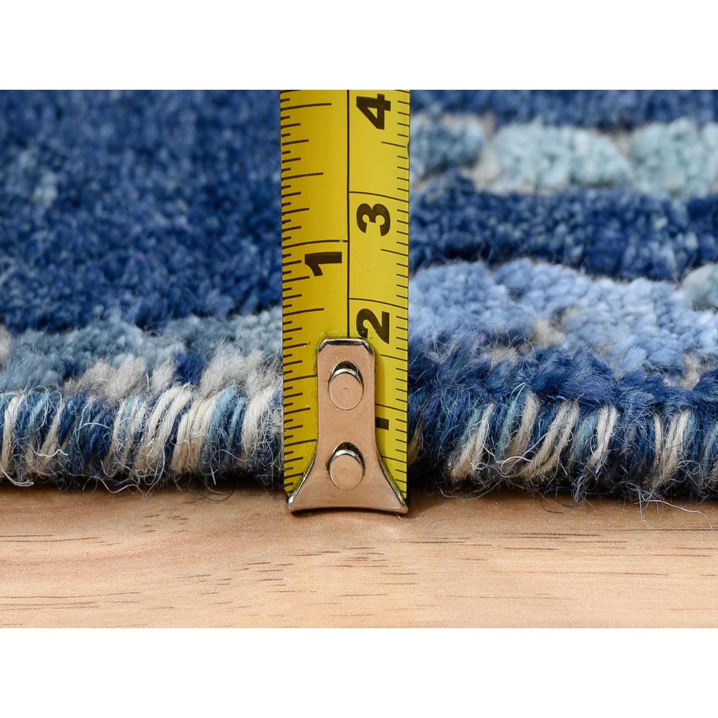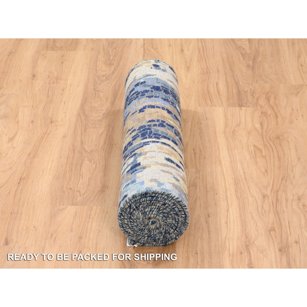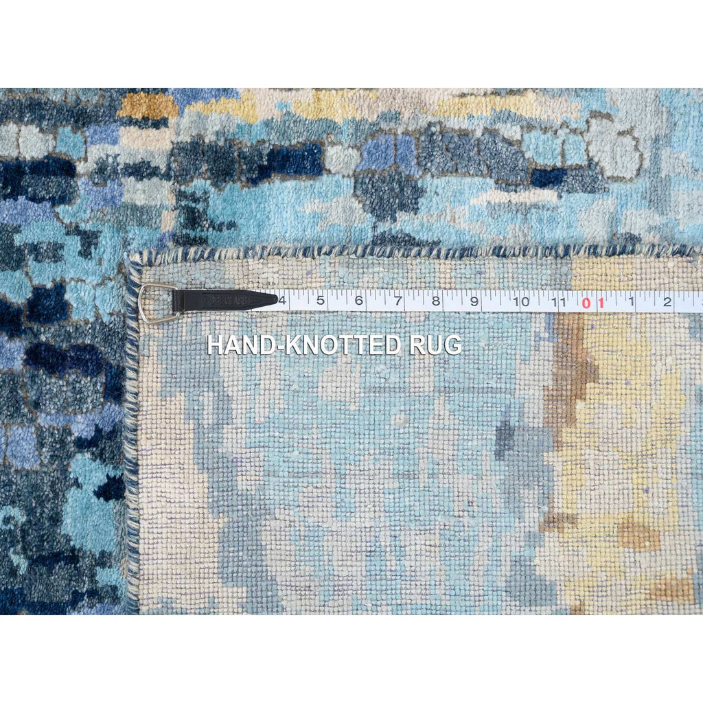 2'8"x9'9" Denim Blue With Mix Of Gold, Hand Knotted, Mosaic Design Wool And Silk, Runner Persian Knot Oriental Rug FWR383460