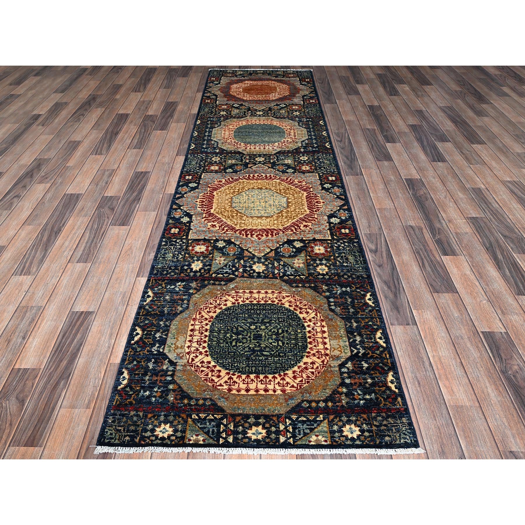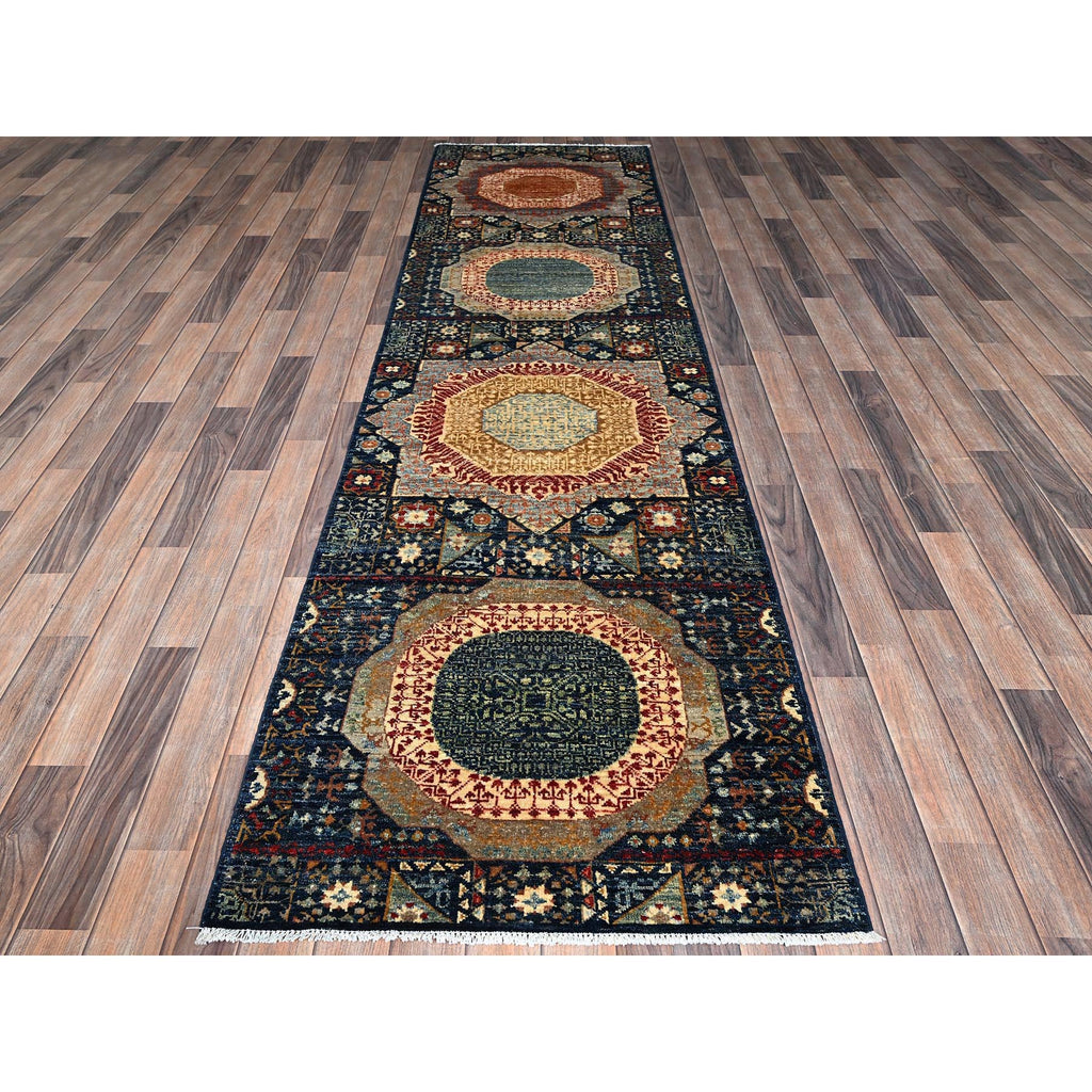 2'9"x10'2" Navy Blue, Mamluk Design, Aryana Collection, Vegetable Dyes, Soft Pile, High Mountain Wool, Hand Knotted, Densely Woven, Runner, Oriental Rug FWR6672