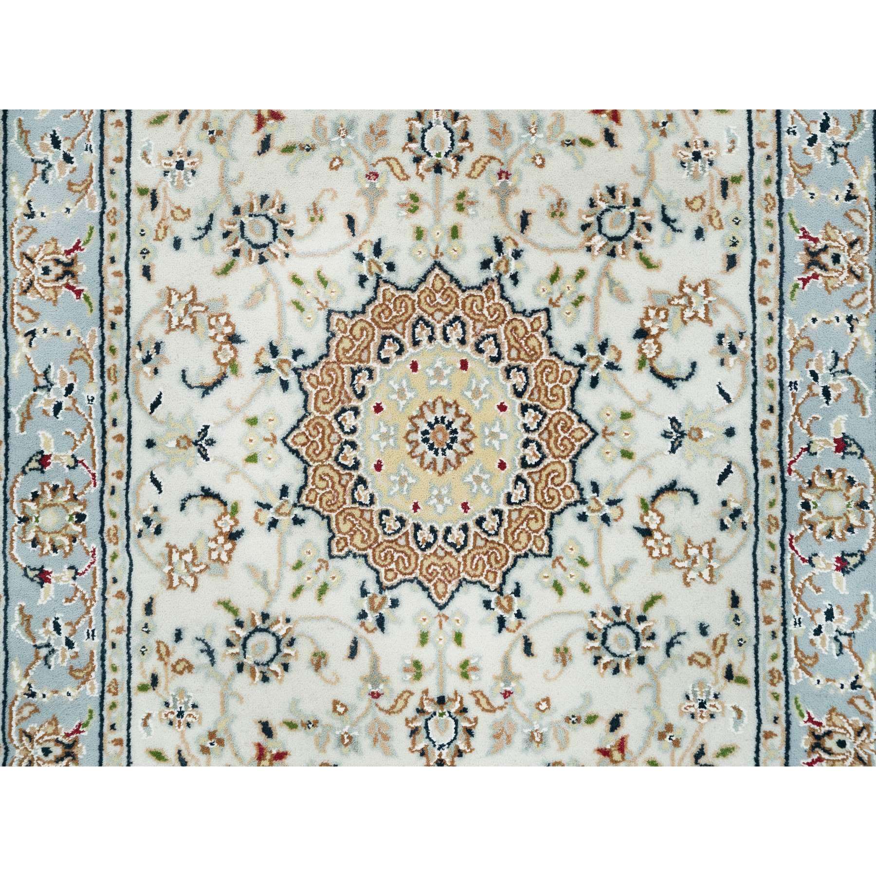 2'9"x10'4" Ivory, Nain With Center Medallion Flower Design, 250 Kpsi, Hand Knotted, Pure Wool, Runner Oriental Rug FWR391890