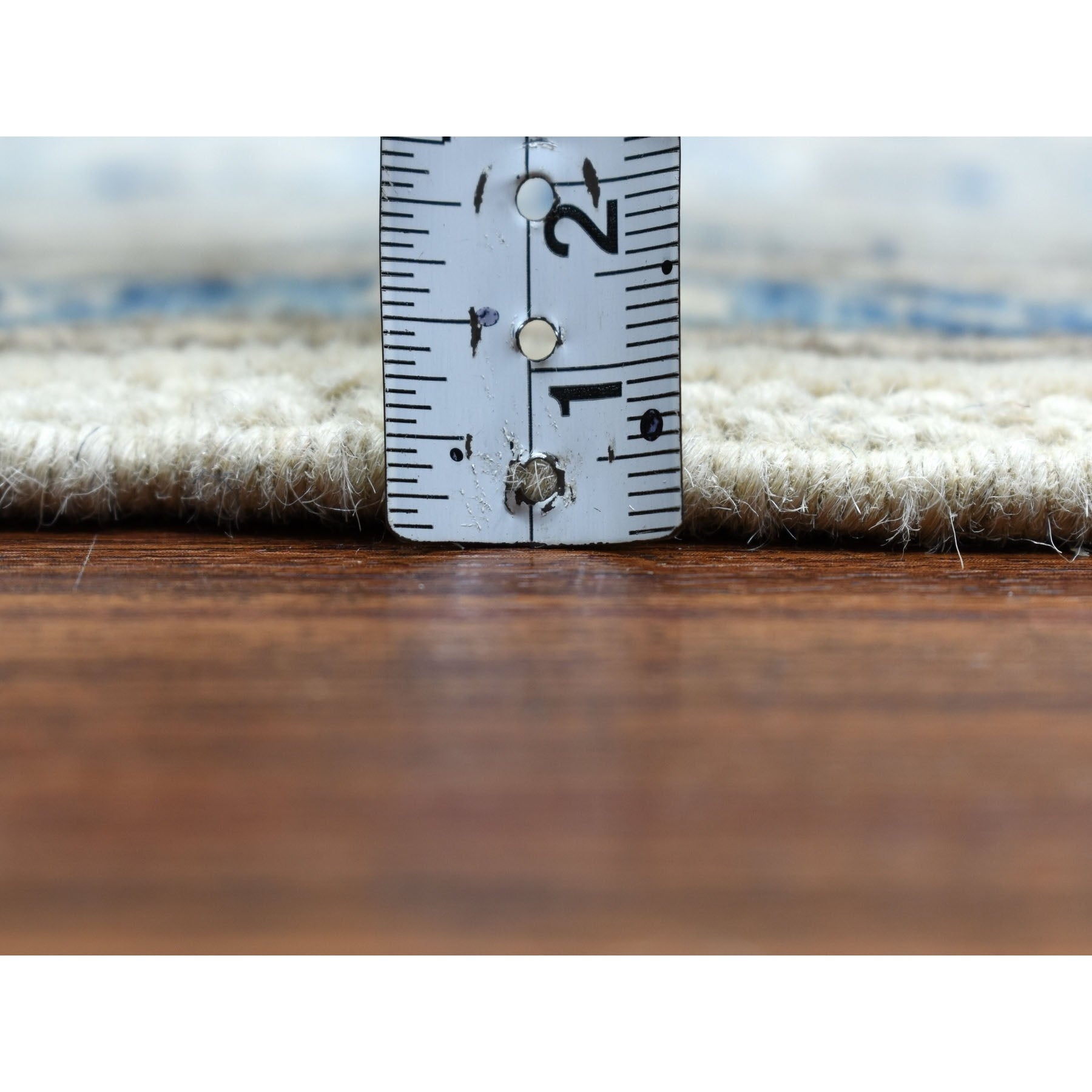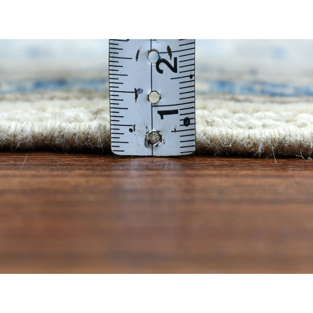 2'9"x10'7" Vintage Look Kazak Geometric Design Ivory Runner Pure Wool Hand Knotted Oriental Rug FWR311502