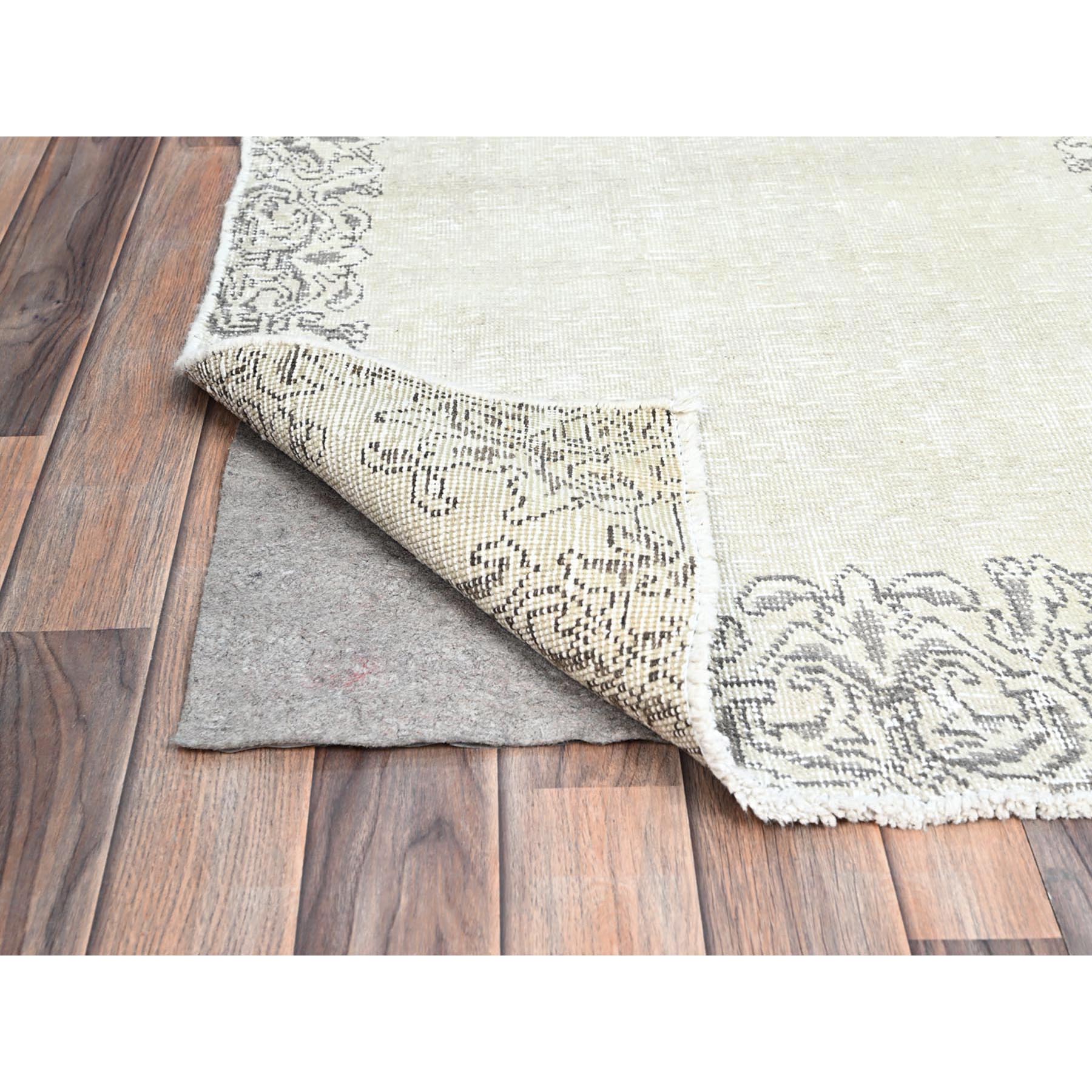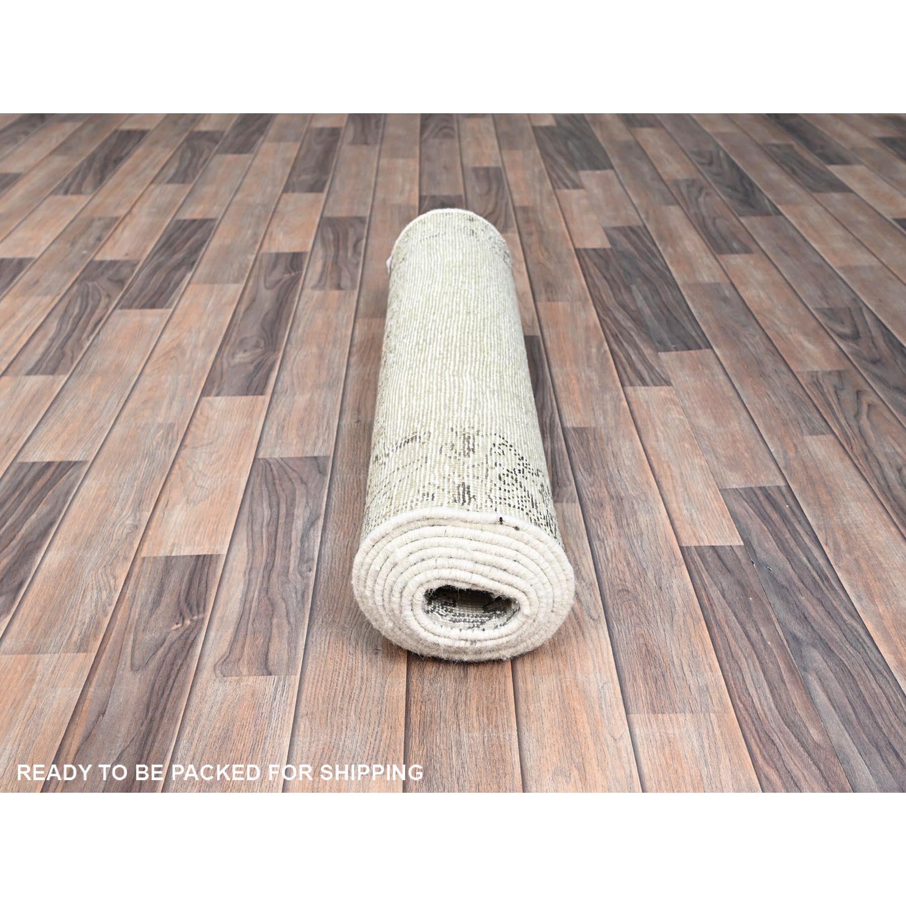 2'9"x10' Cough Mixture White, Cropped Thin, Natural And Soft Wool, Hand Knotted, Even Wear, Open Field Border Design, White Wash, Ends And Sides Secured, Vintage Persian Tabriz, Runner Oriental Rug FWR1398