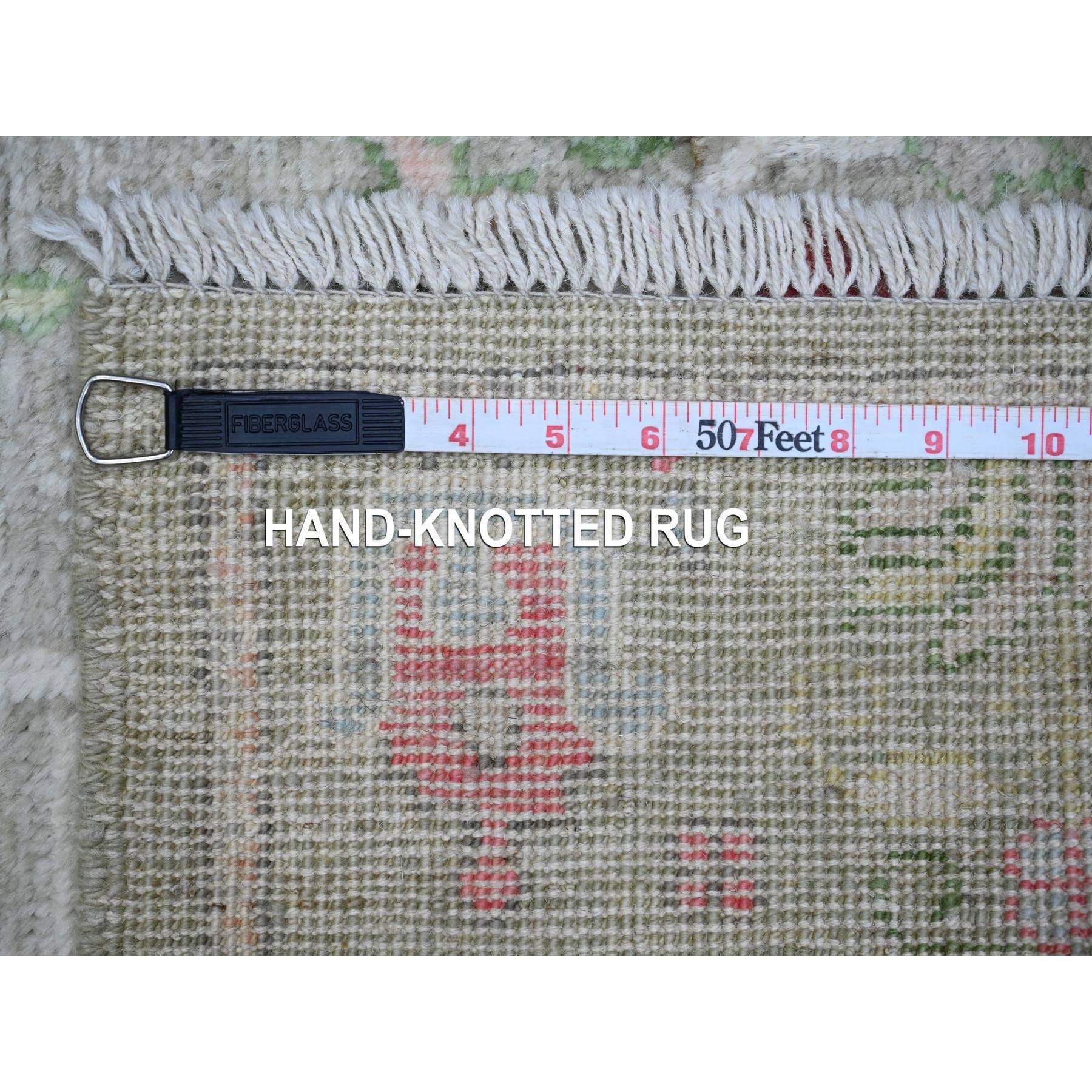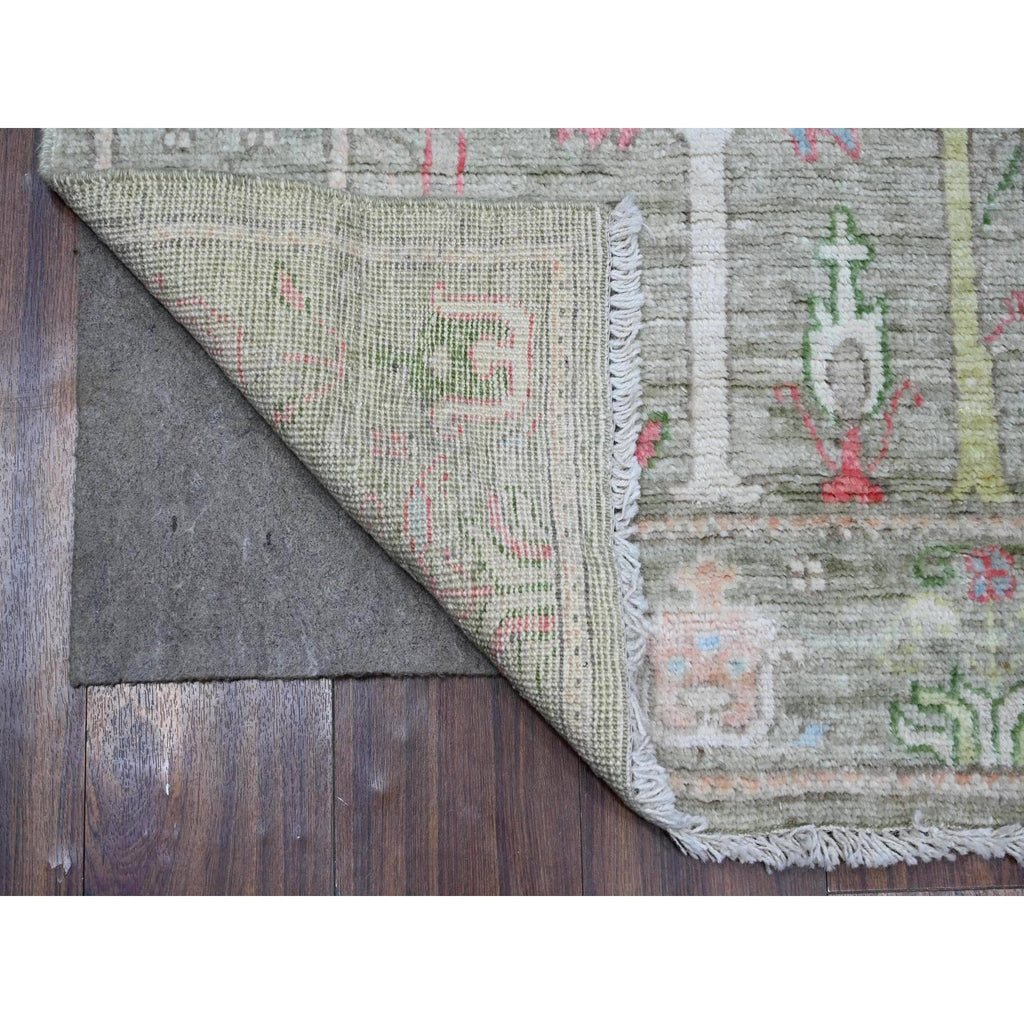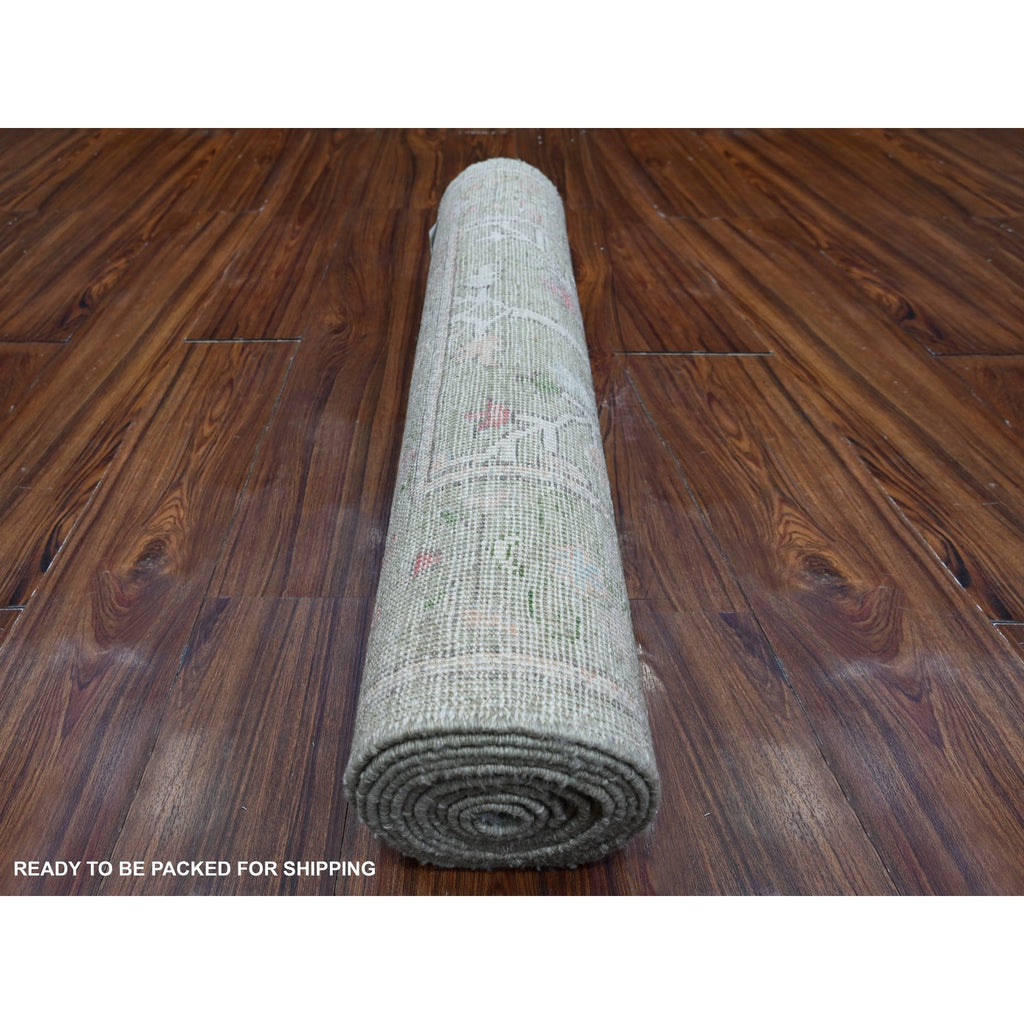 2'9"x11'10" Sage Green, Hand Knotted, Natural Dyes, Willow And Cypress Tree Design, Wool Weft, Afghan Angora Oushak, Runner Oriental Rug FWR533010