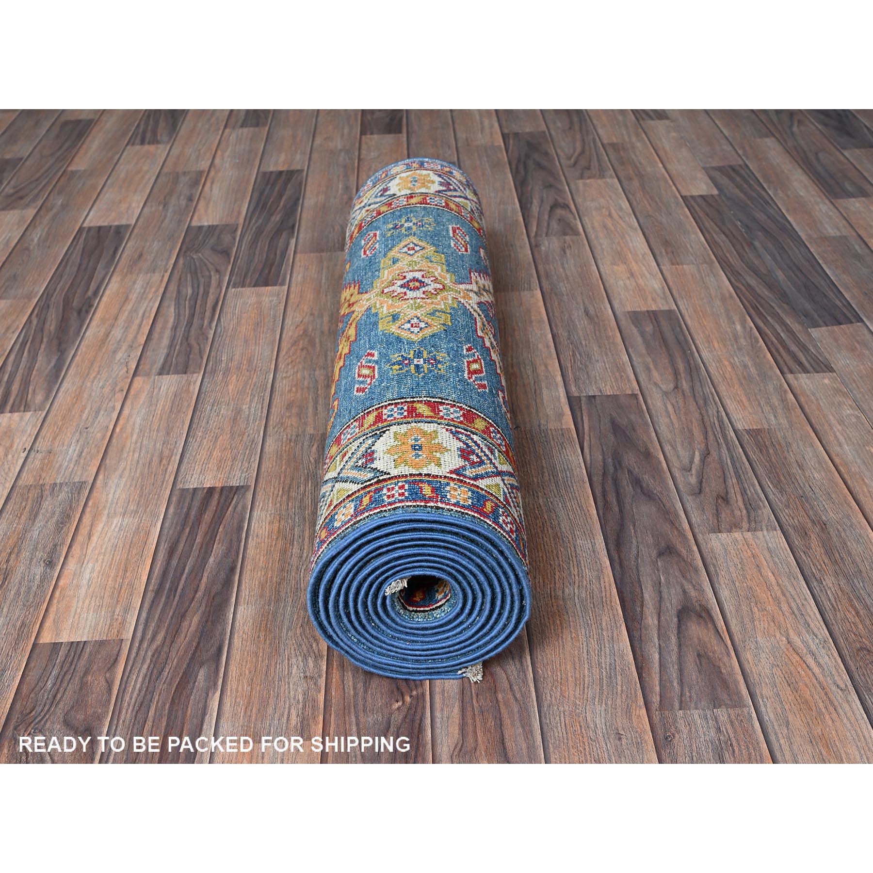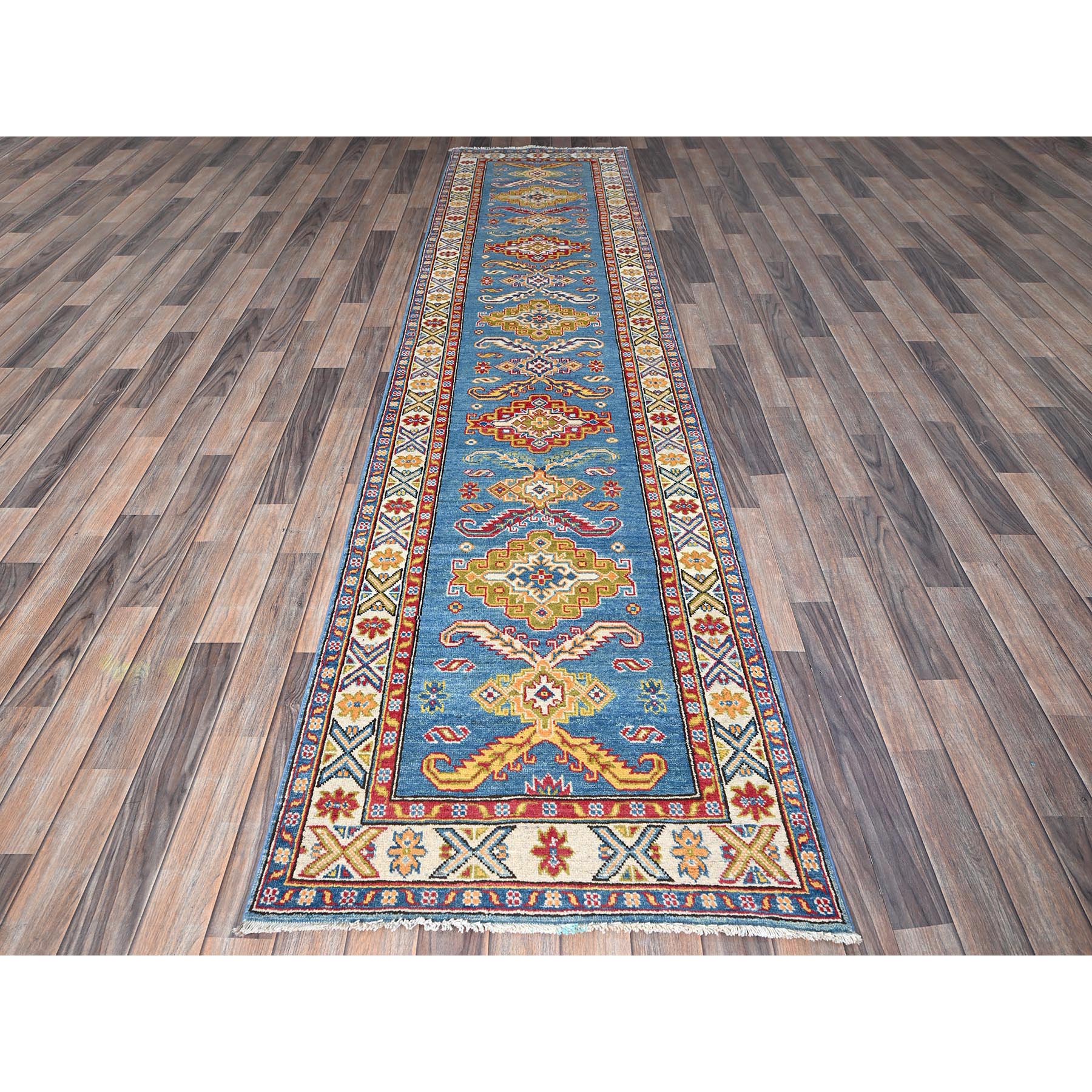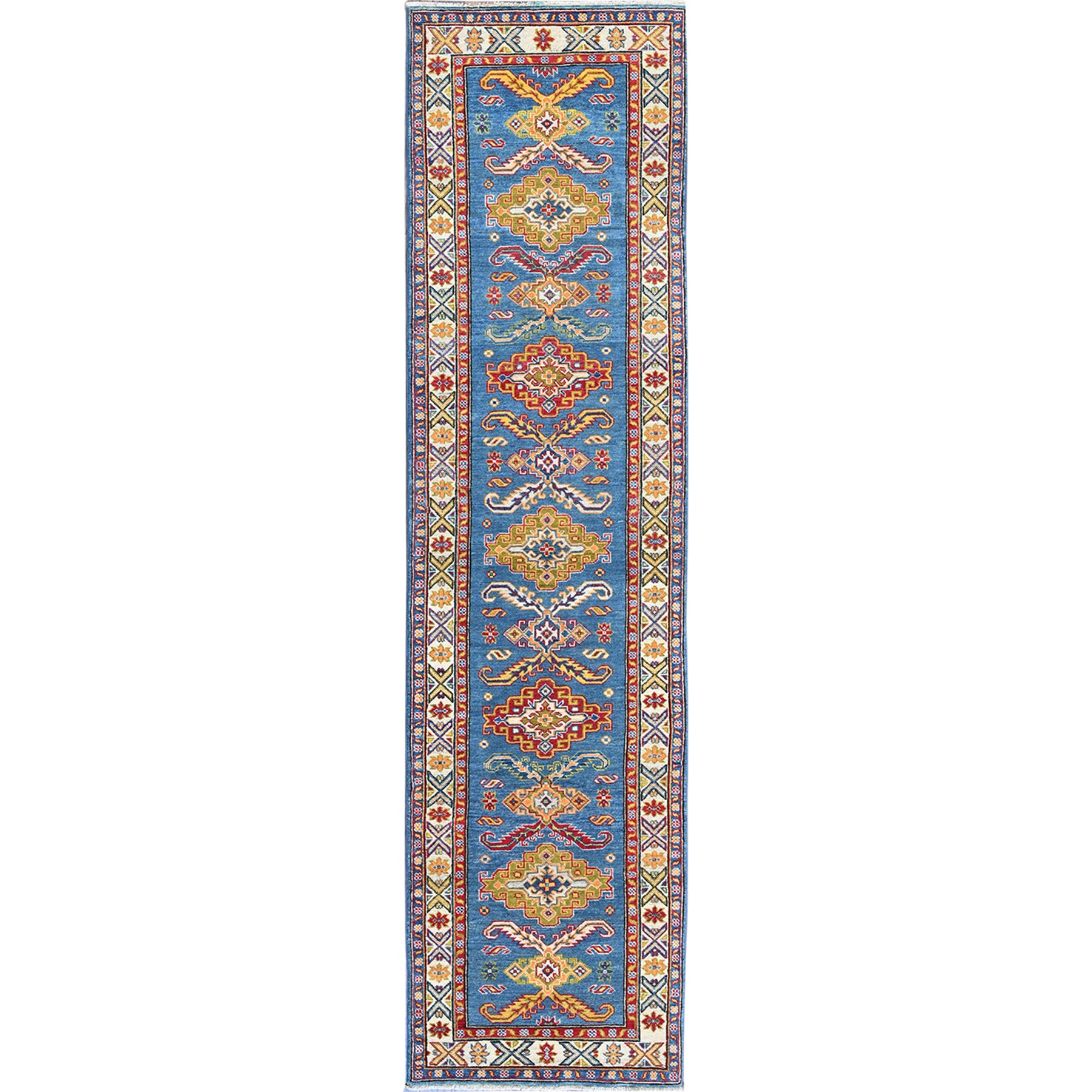 2'9"x11'2" Carolina Blue, Kazak With Tribal Medallions Design, Hand Knotted, Soft And Velvety Wool, Vegetable Dyes, Denser Weave, Runner, Oriental Rug FWR2850