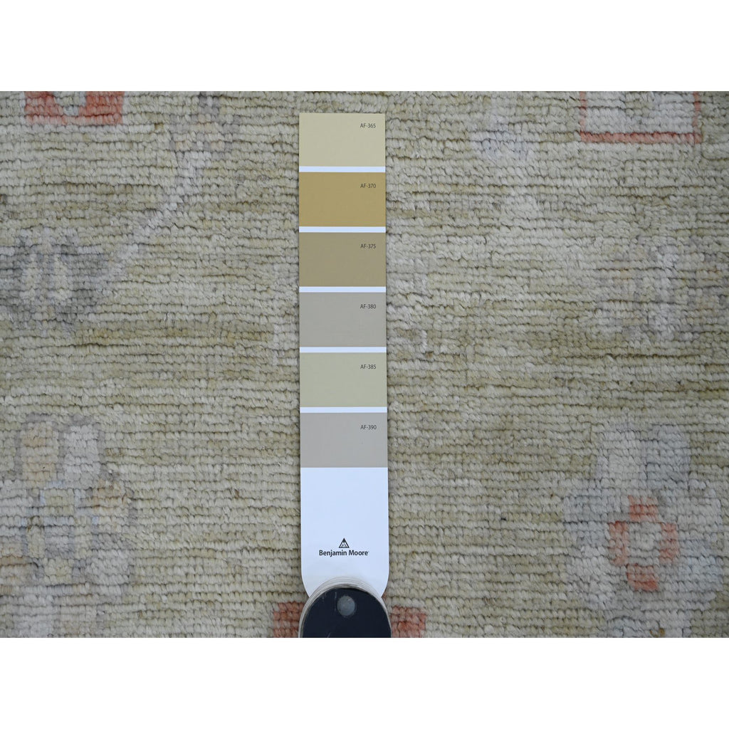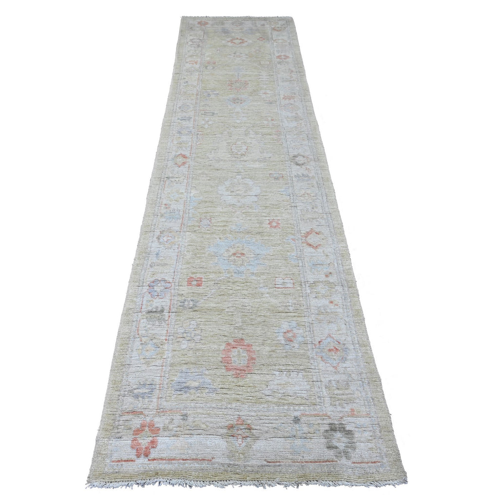 2'9"x11'3" Olive Green, Afghan Angora Oushak With All Over Leaf Design, Veggie Dyes, Hand Knotted, 100% Wool, Runner, Oriental Rug FWR539592