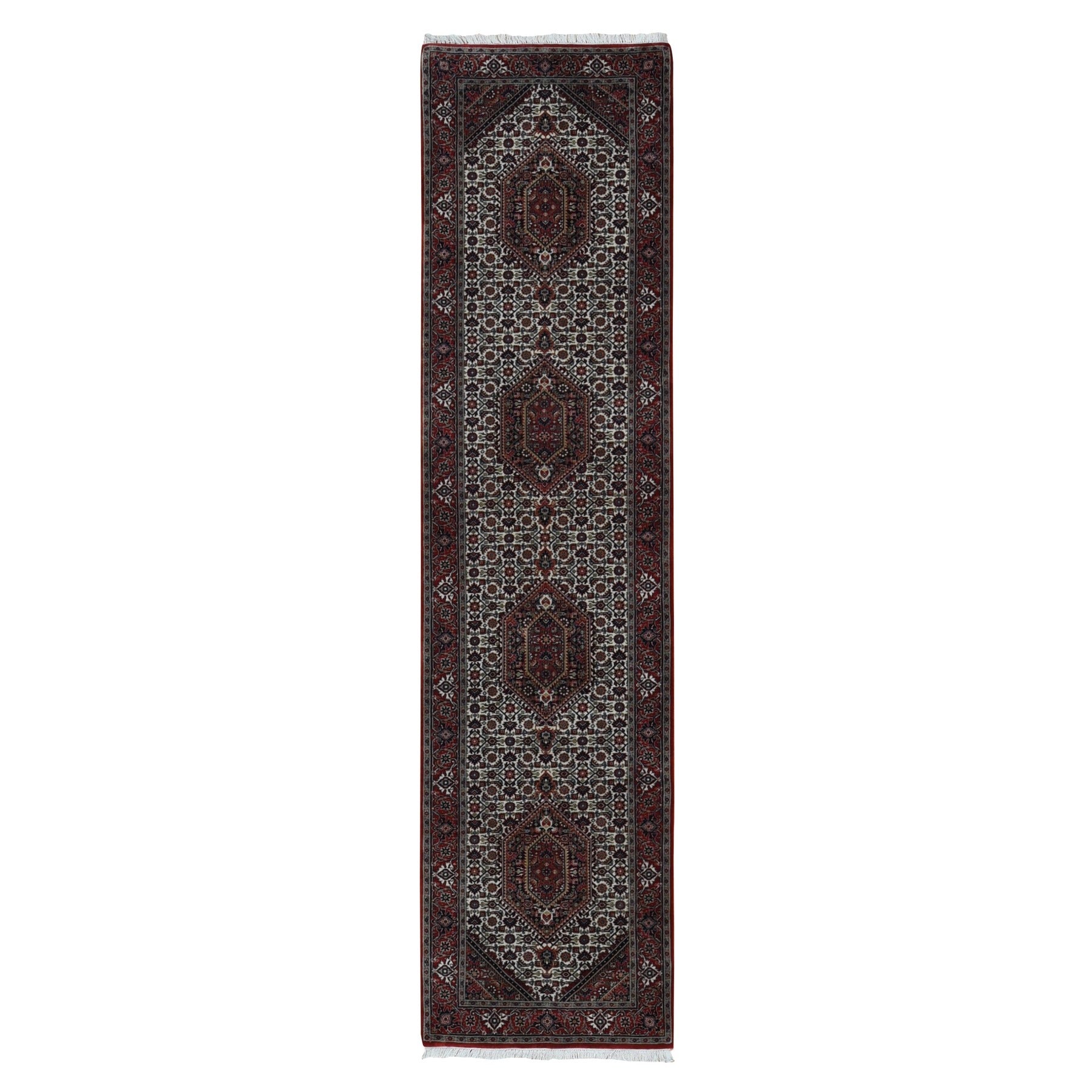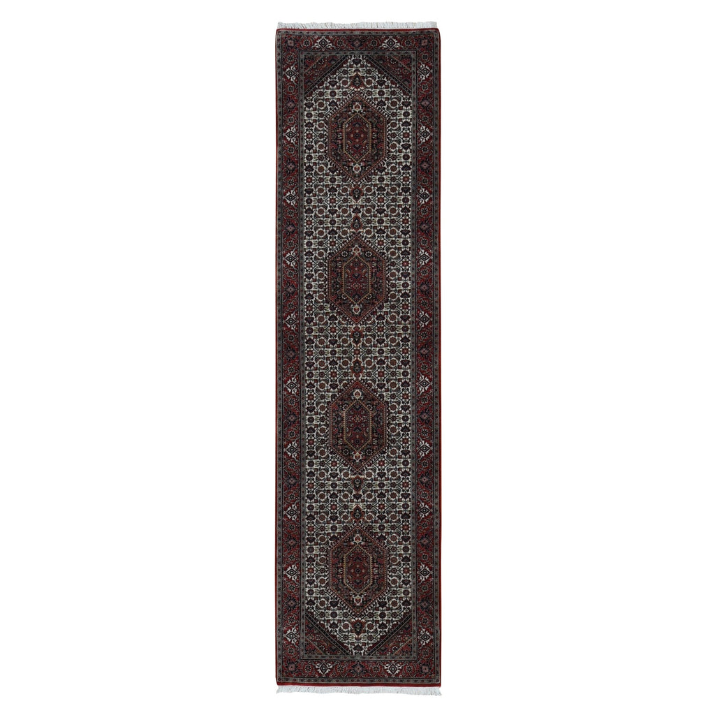 2'9"x11'4" Ivory, Hand Knotted, 300 Kpsi, Hand Spun New Zealand Wool, Bijar Mahi, Runner Oriental Rug FWR526368