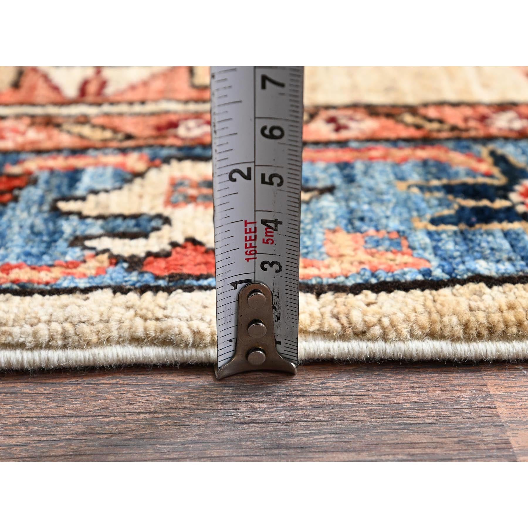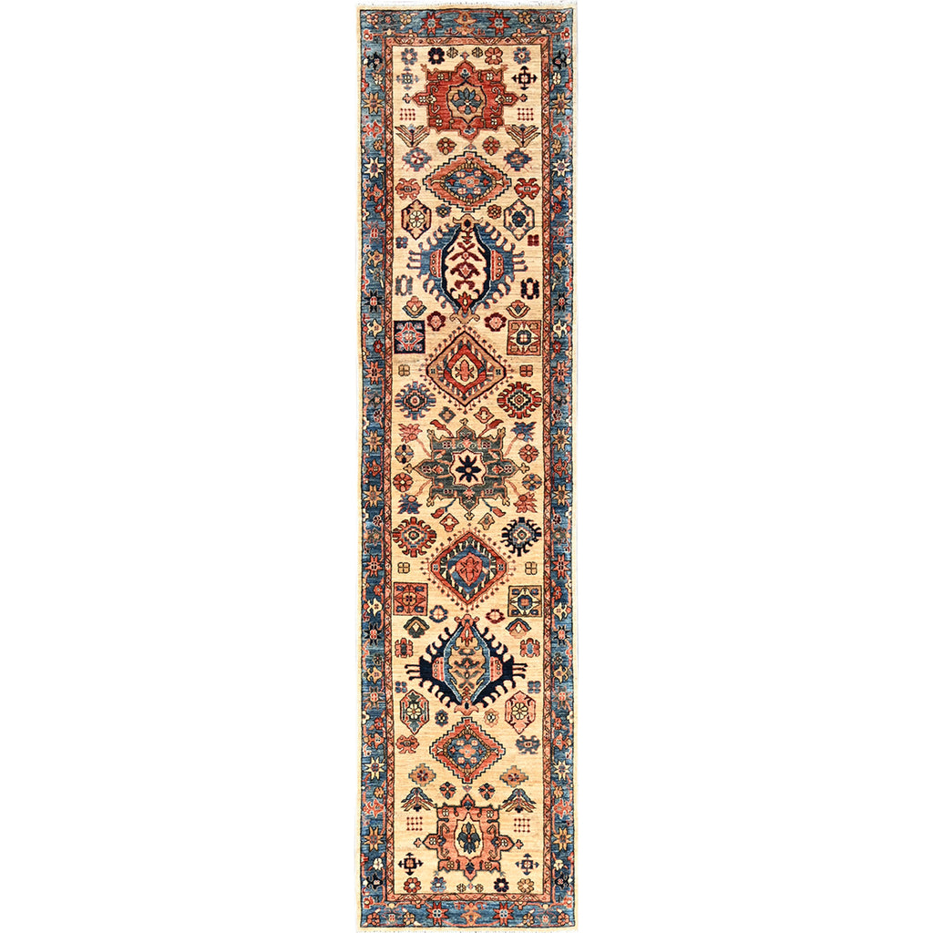 2'9"x11'9" Parchment White, Karajeh With Tribal Medallions Design, Aryana Collection, Vegetable Dyes, High Mountain Wool, Soft Pile, Hand Knotted, Densely Woven, Runner, Oriental Rug FWR6654