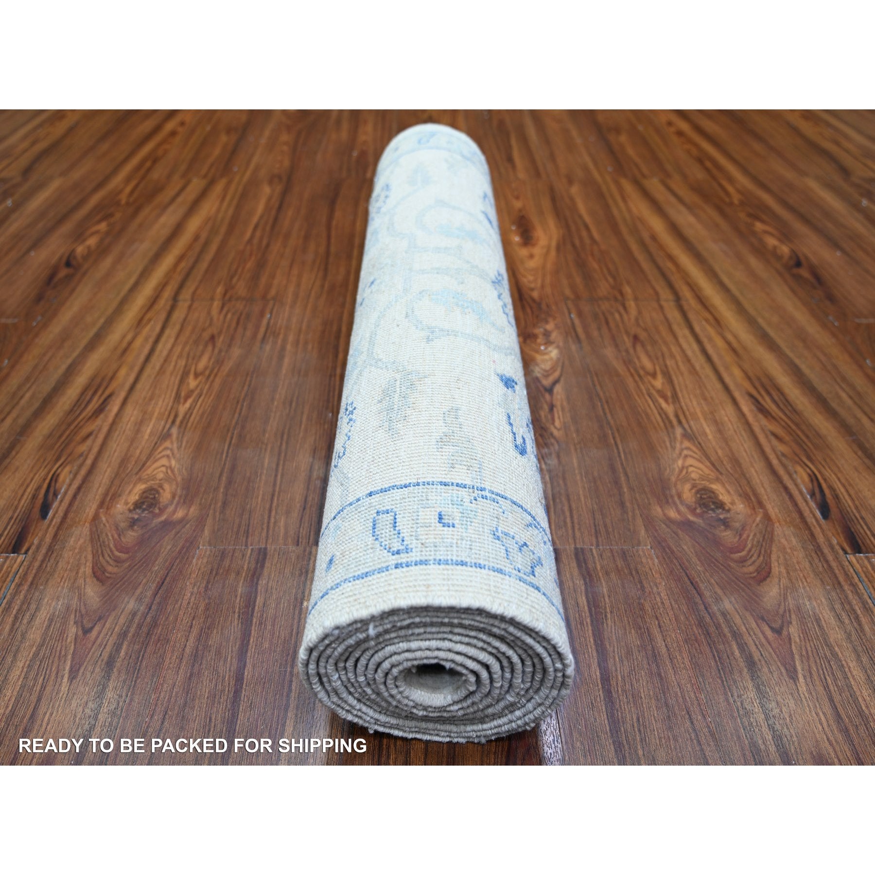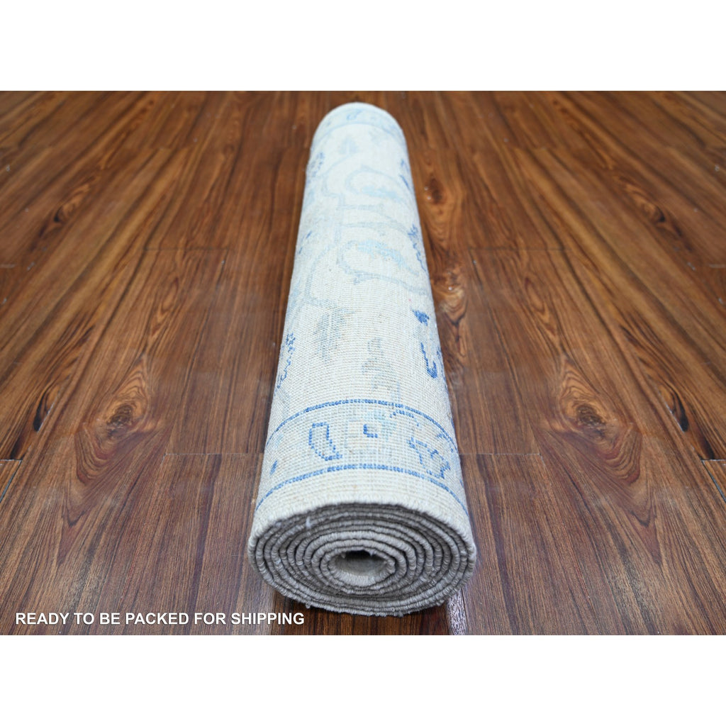 2'9"x11'9" White Wash Peshawar With Large Medallions Natural Dyes, Pure Wool Hand Knotted, Runner Oriental Rug FWR443670
