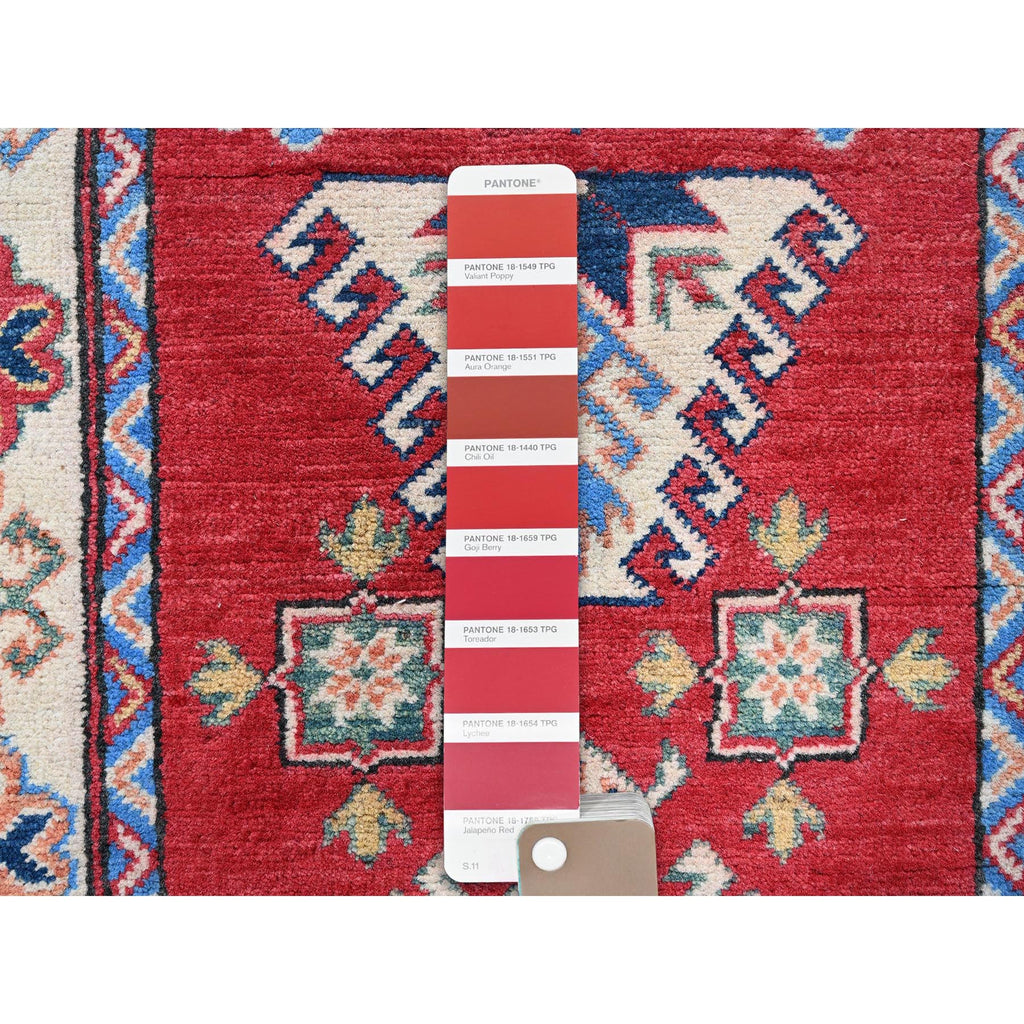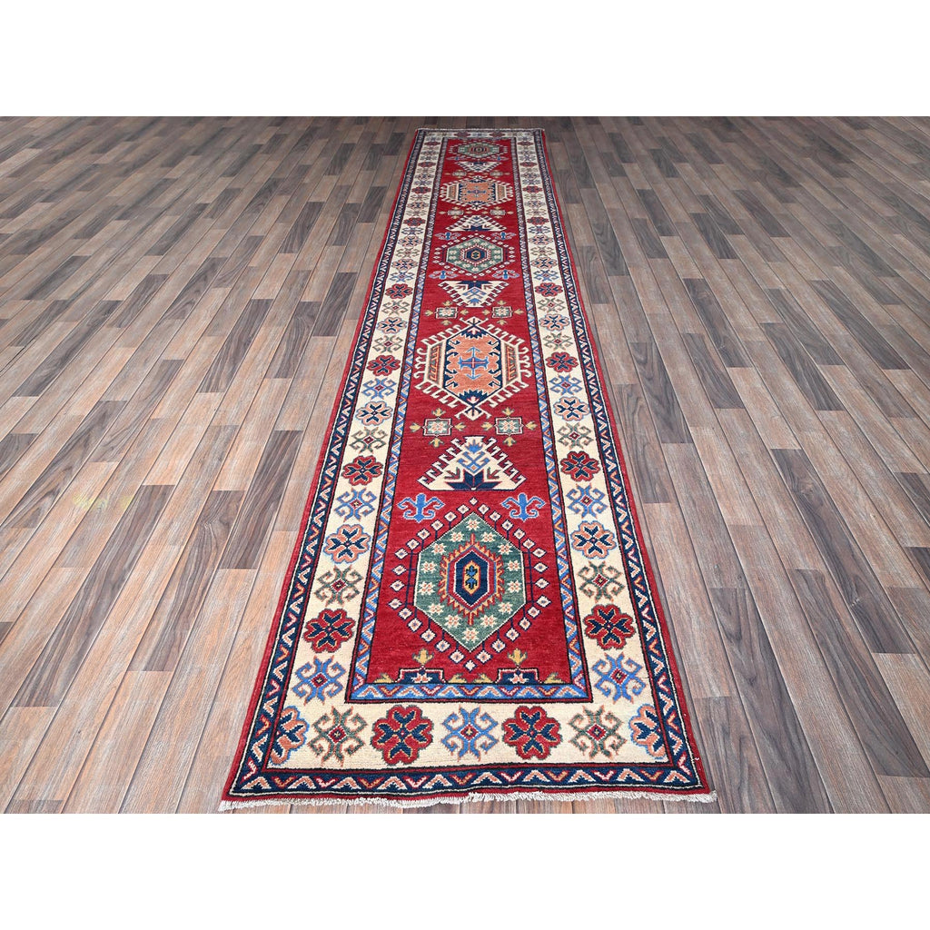 2'9"x12'10" Chili Red, Kazak With Tribal Medallions Design, Hand Knotted, Soft And Velvety Wool, Denser Weave, Vegetable Dyes, Runner, Oriental Rug FWR2844