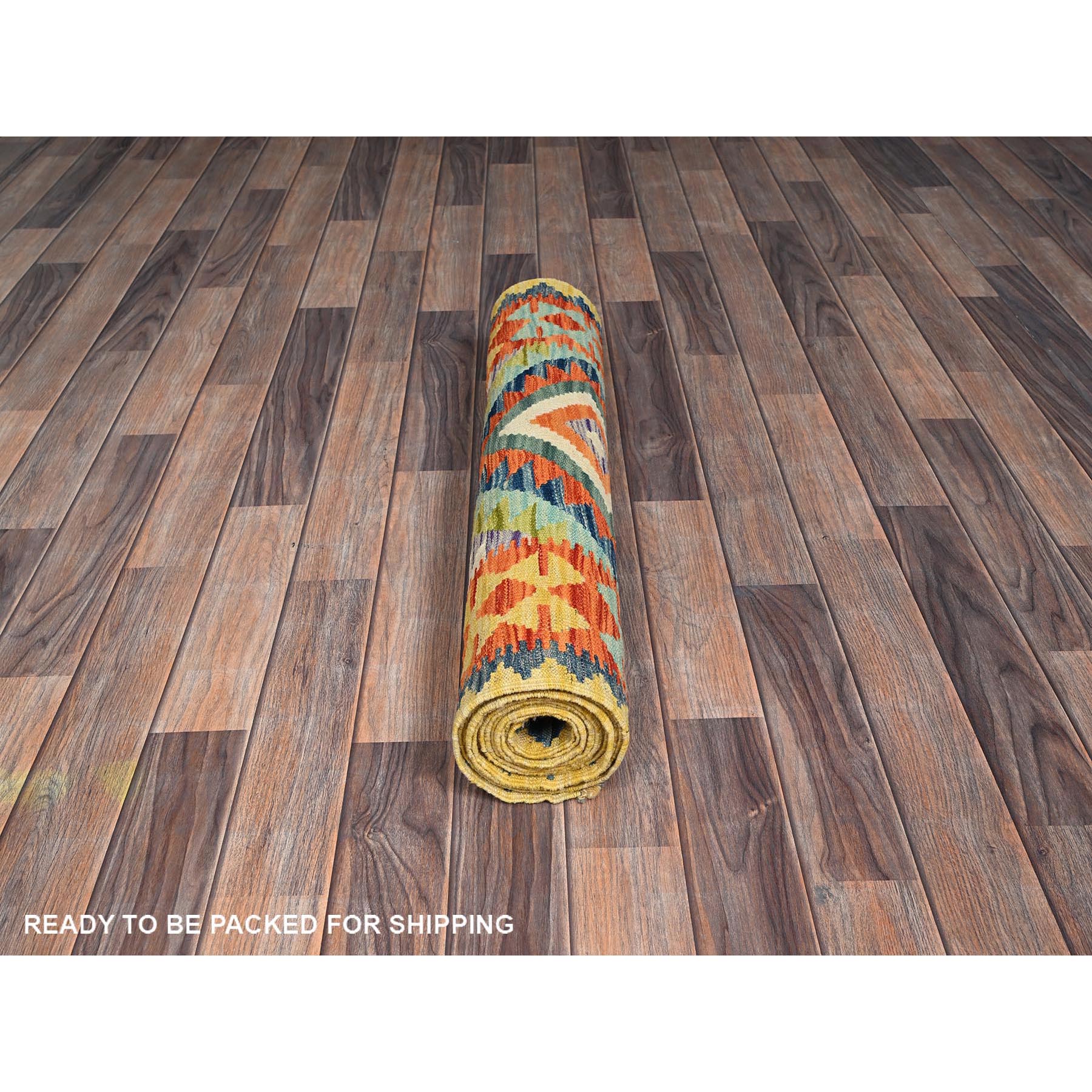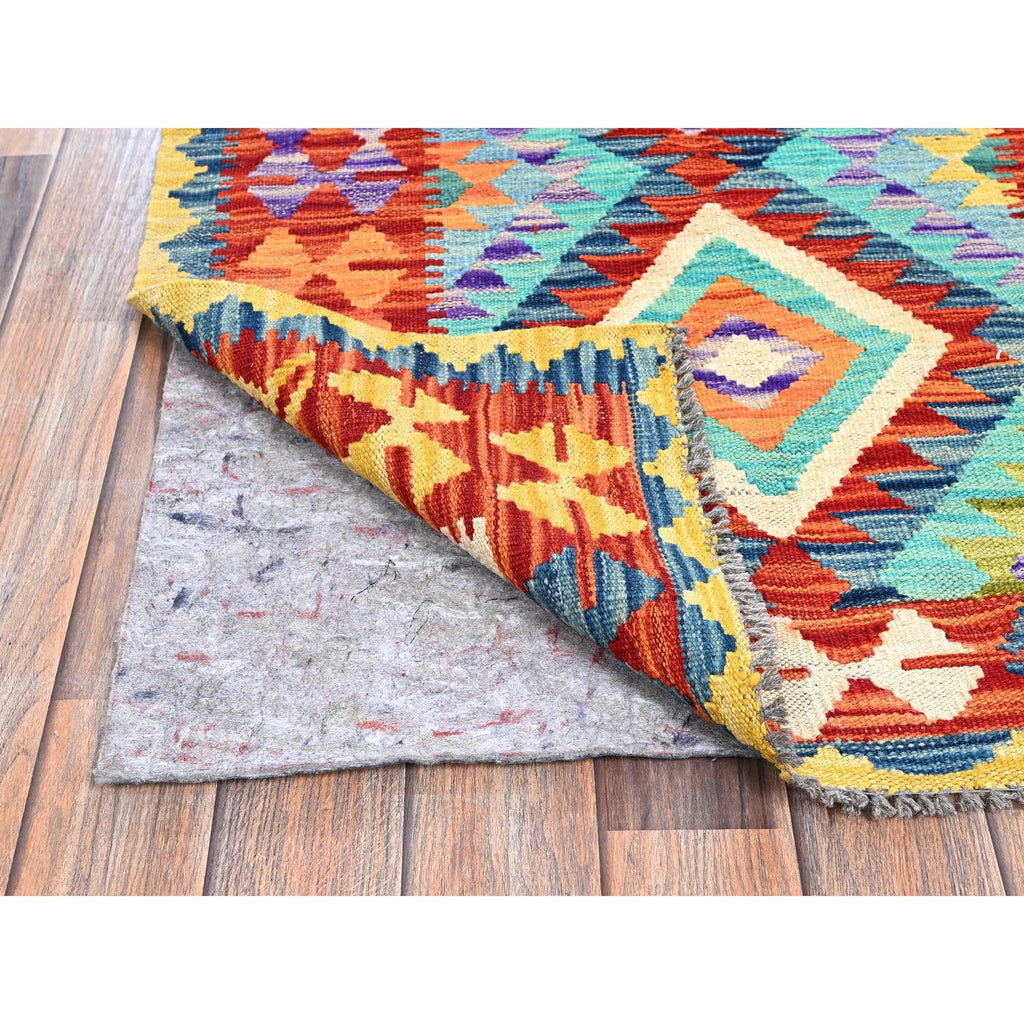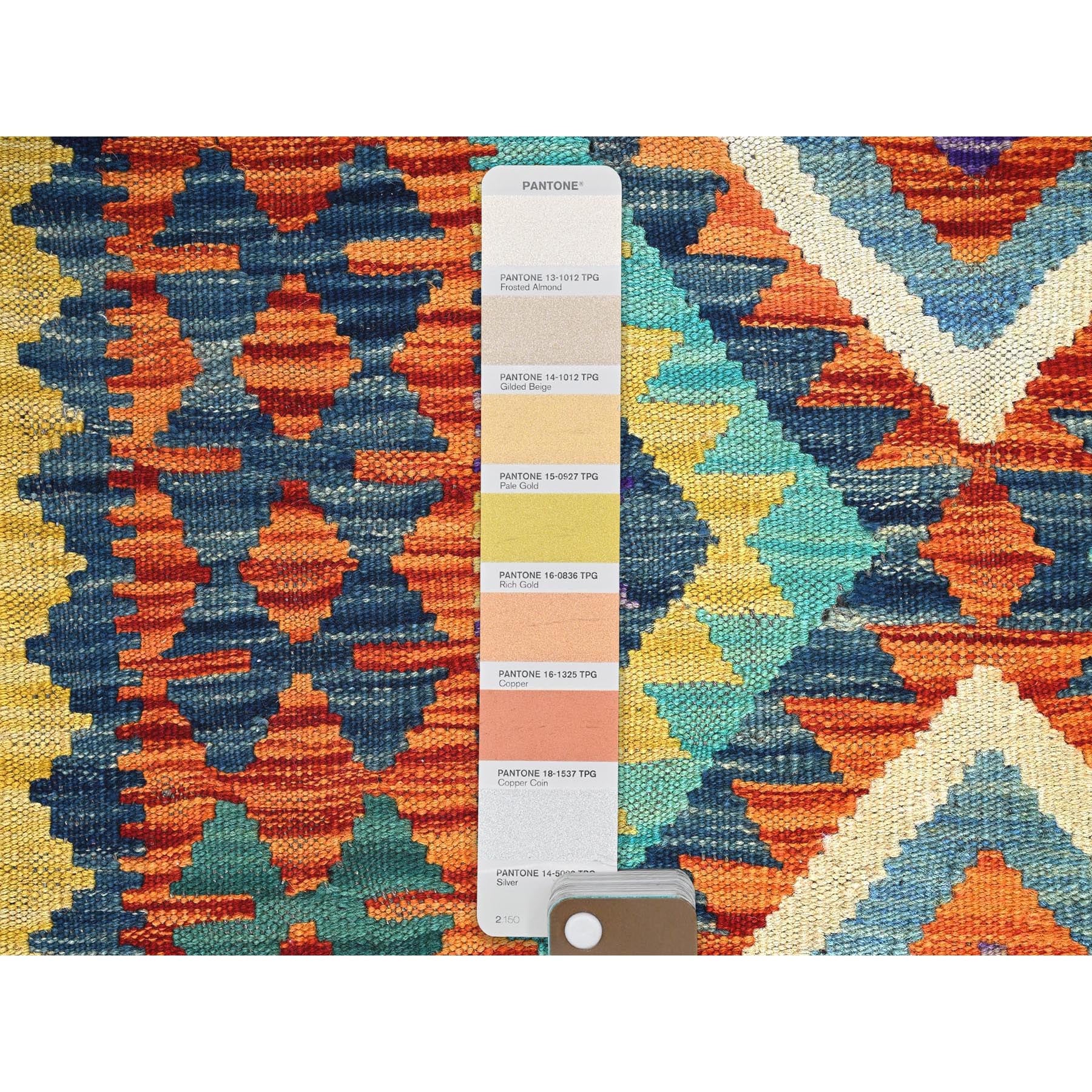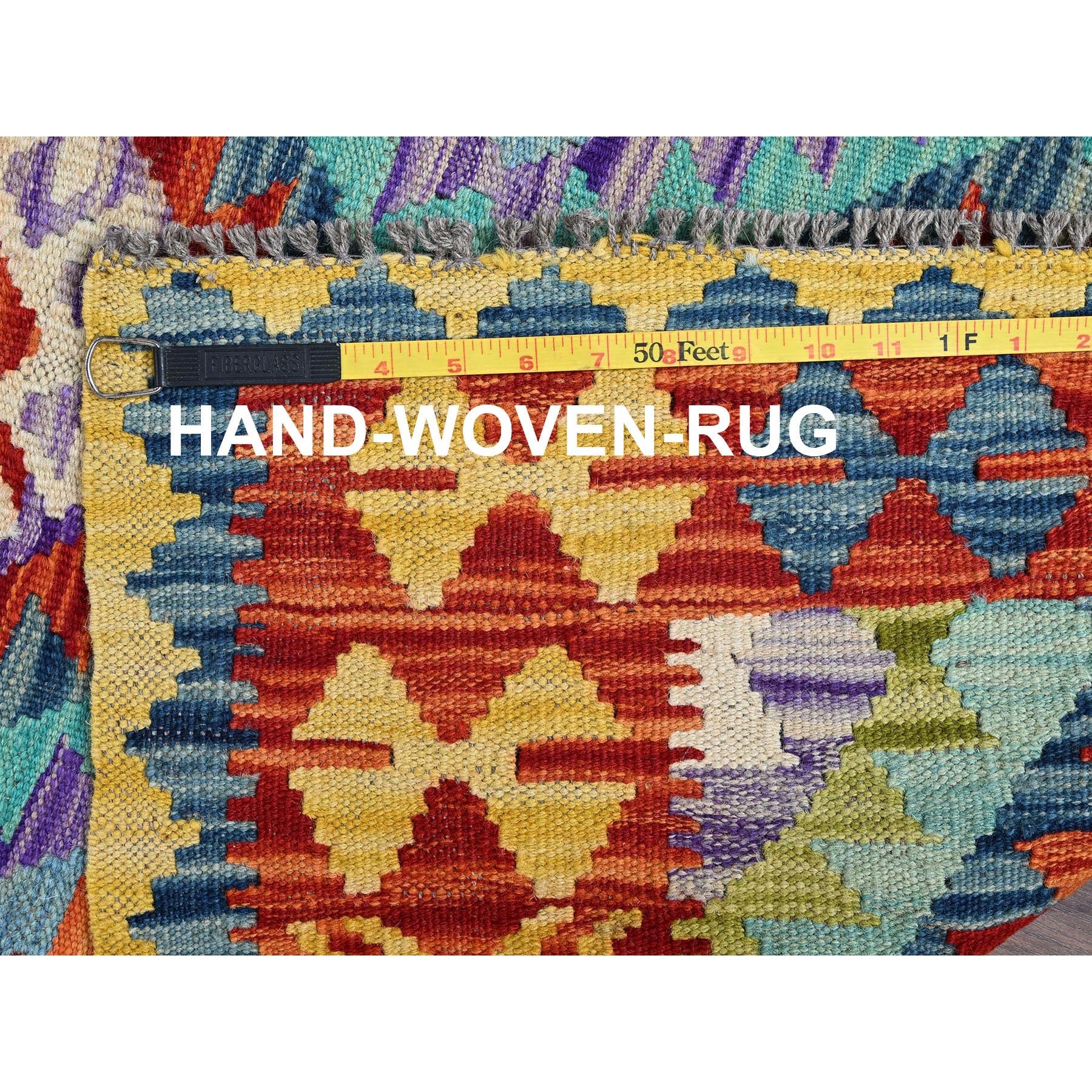 2'9"x12'9" Sapphire Blue, Flat Weave, Afghan Kilim With Colorful Geometric Pattern, Vegetable Dyes, Pure Wool, Hand Woven, Reversible, Runner, Oriental Rug FWR7362