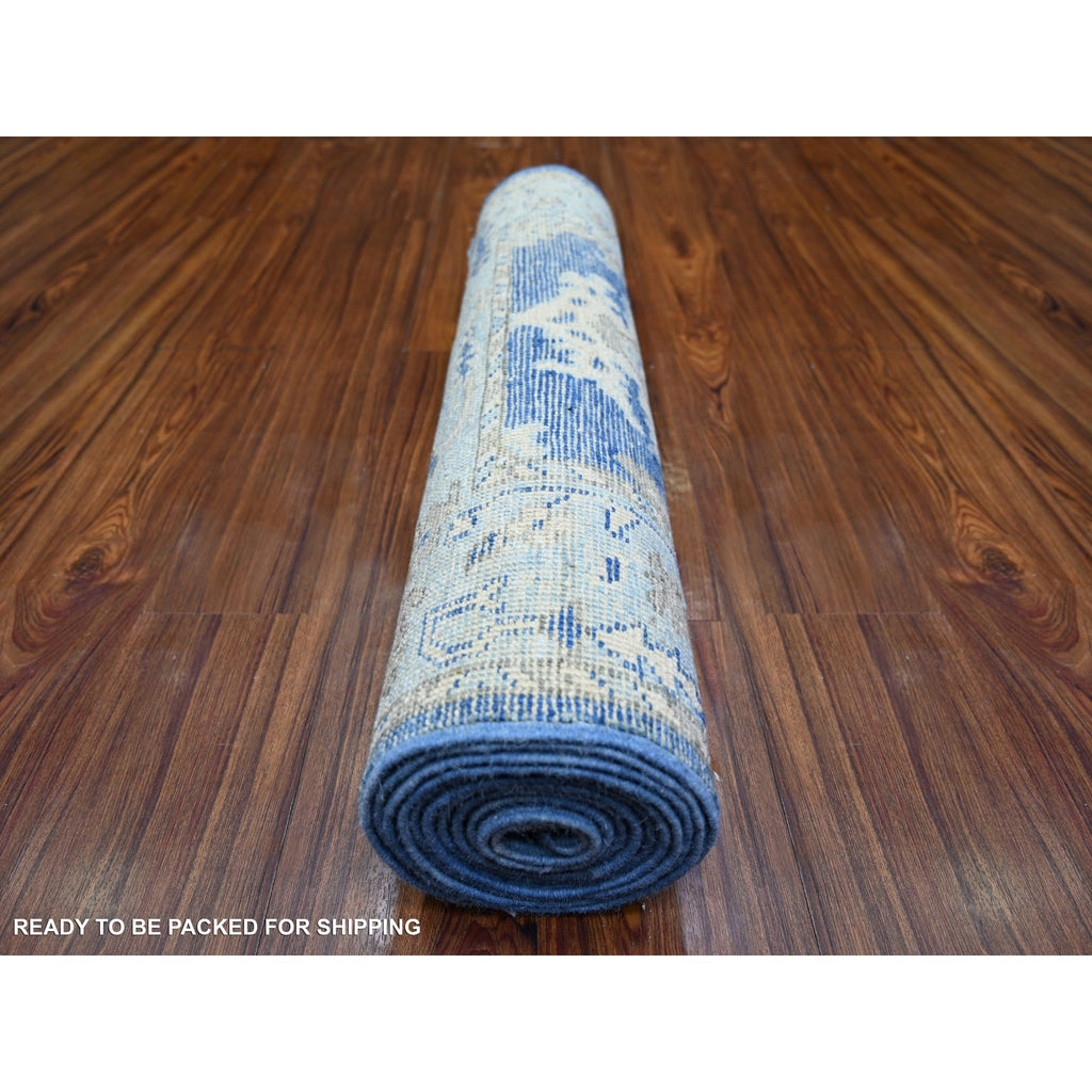 2'9"x12' Medium Sapphire Blue, Soft Wool Hand Knotted, Afghan Angora Oushak With All Over Design Natural Dyes, Runner Oriental Rug FWR441900