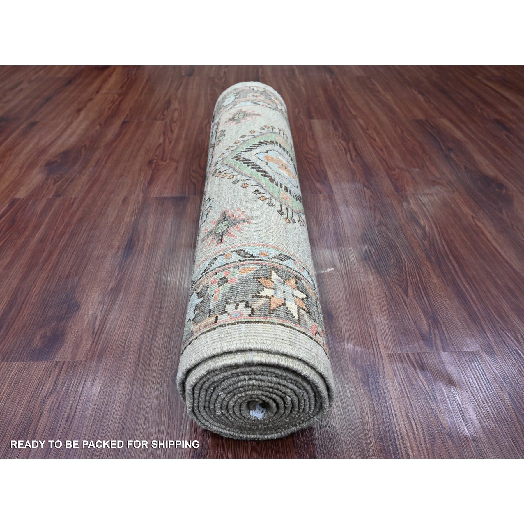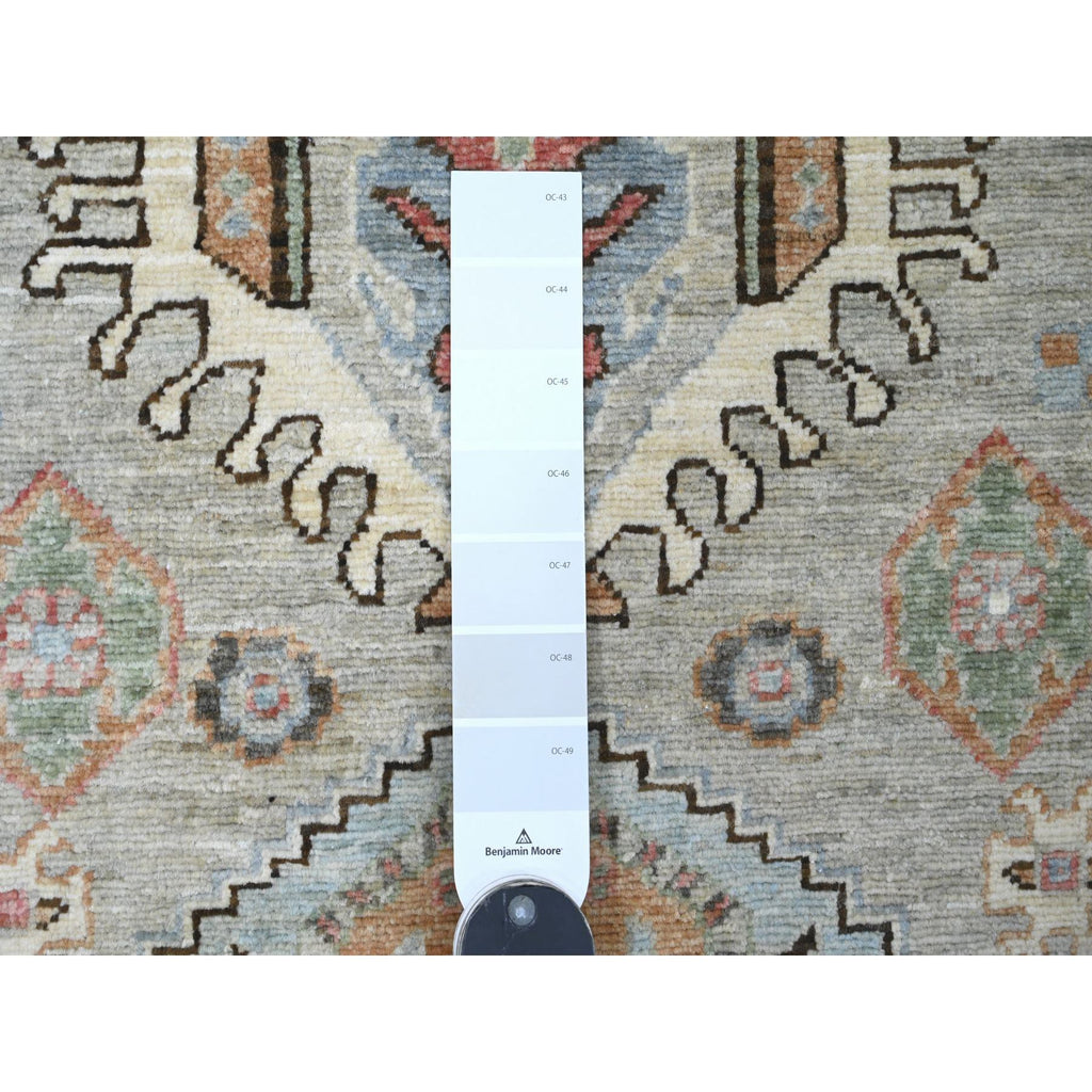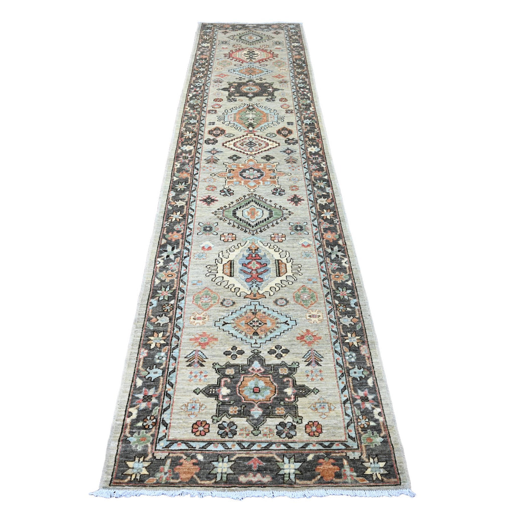 2'9"x12' Misty Gray, Peshawar With Karajeh Design, Vegetable Dyes, High Mountain Wool, Hand Knotted, Runner, Oriental Rug FWR124062