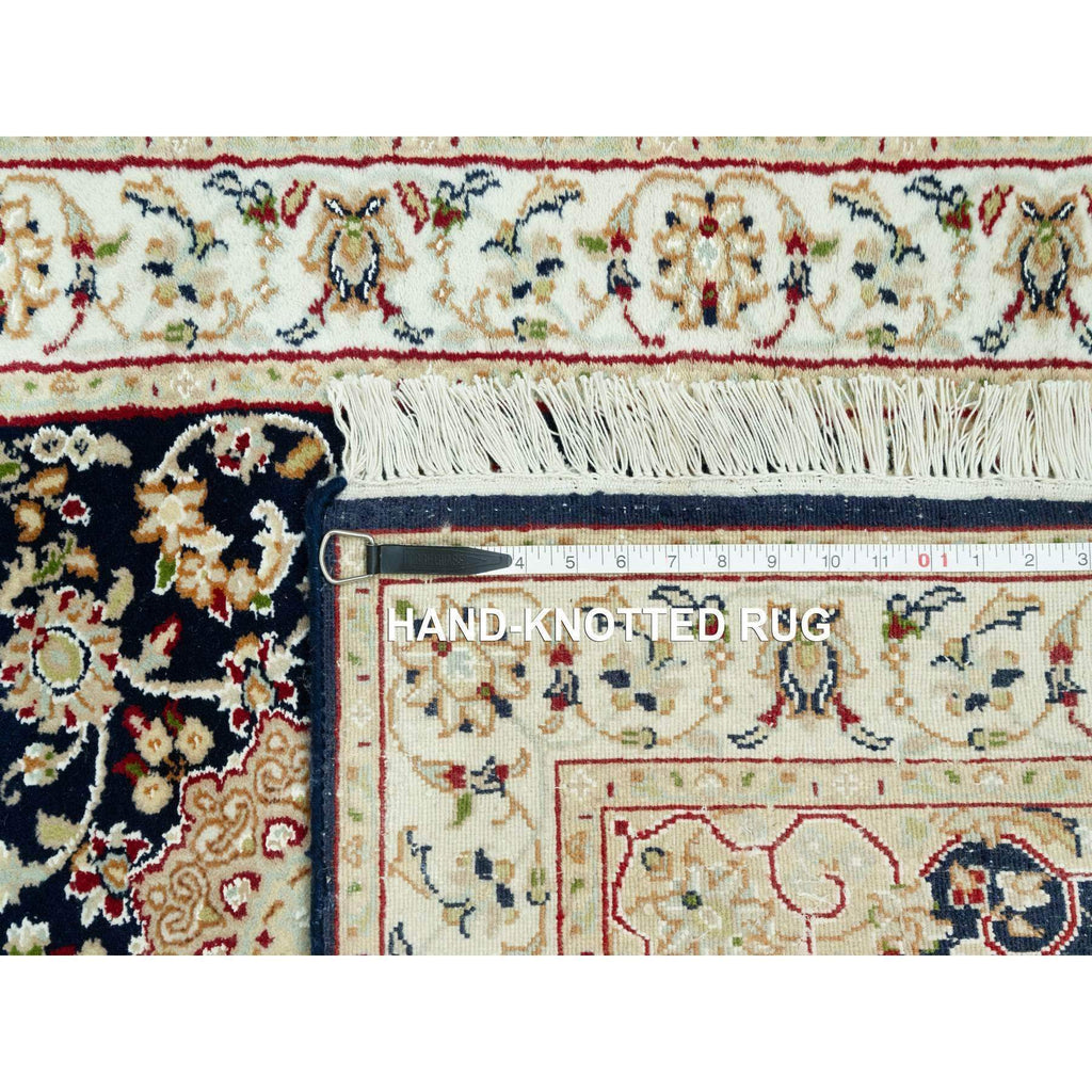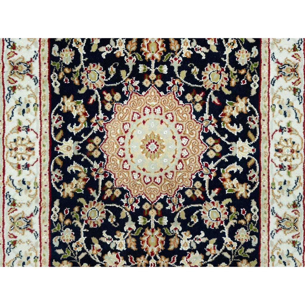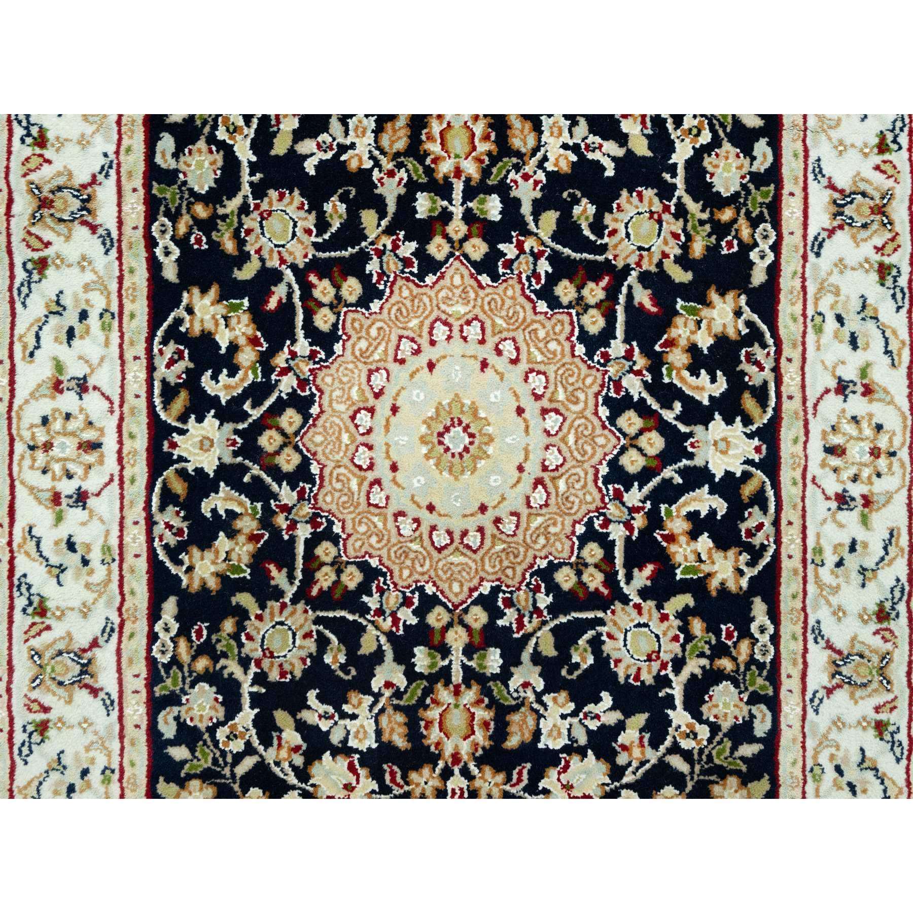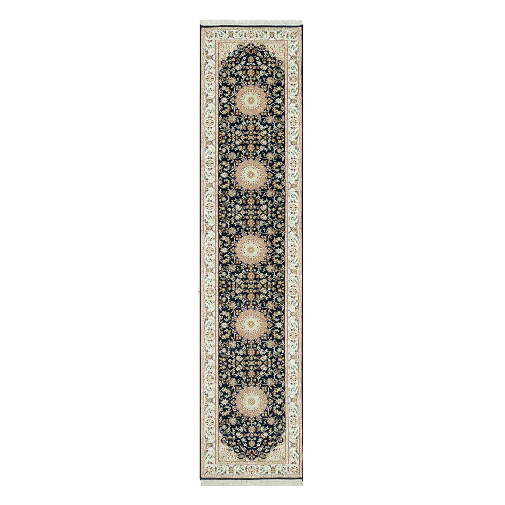 2'9"x12' Polo Blue, 250 Kpsi Denser Weave, Nain Vibrant Wool Large Central Medallion Floral Design, Hand Knotted Oriental Runner Rug FWR543666
