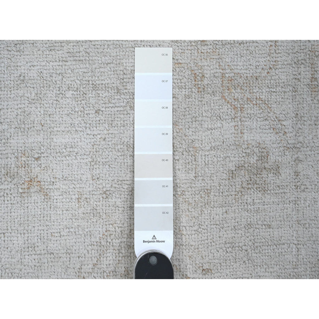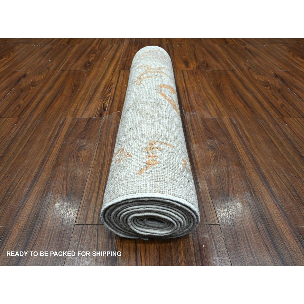 2'9"x12' Pure Silver Gray, Wool Weft, Hand Knotted, Vegetable Dyes, Village All Over Elements Design, Afghan Angora Oushak, Runner Oriental Rug FWR535680