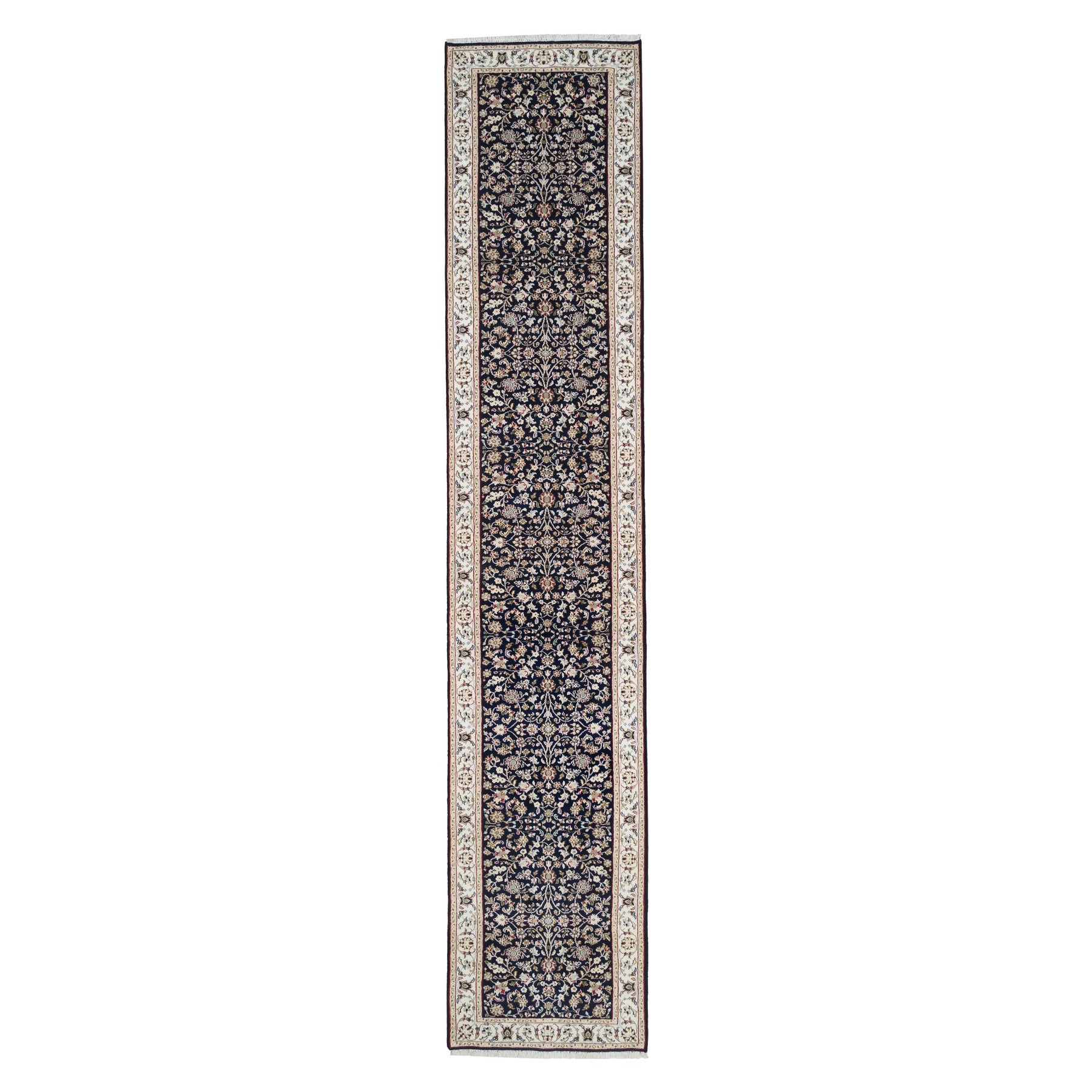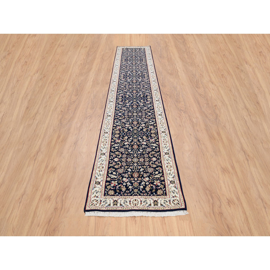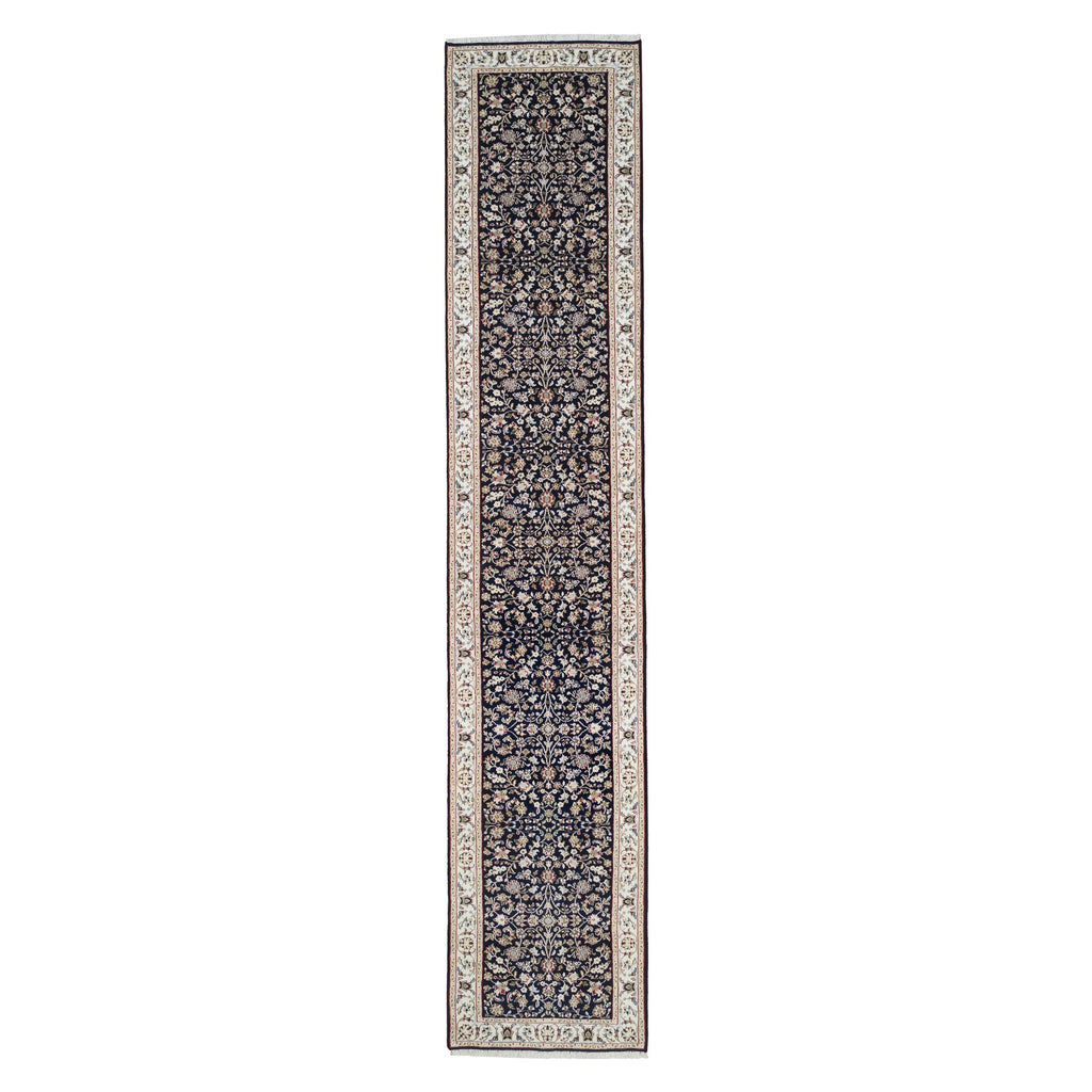 2'9"x14' Midnight Blue, Nain All Over Flower Design, 250 Kpsi Wool Hand Knotted, Runner Oriental Rug FWR383994
