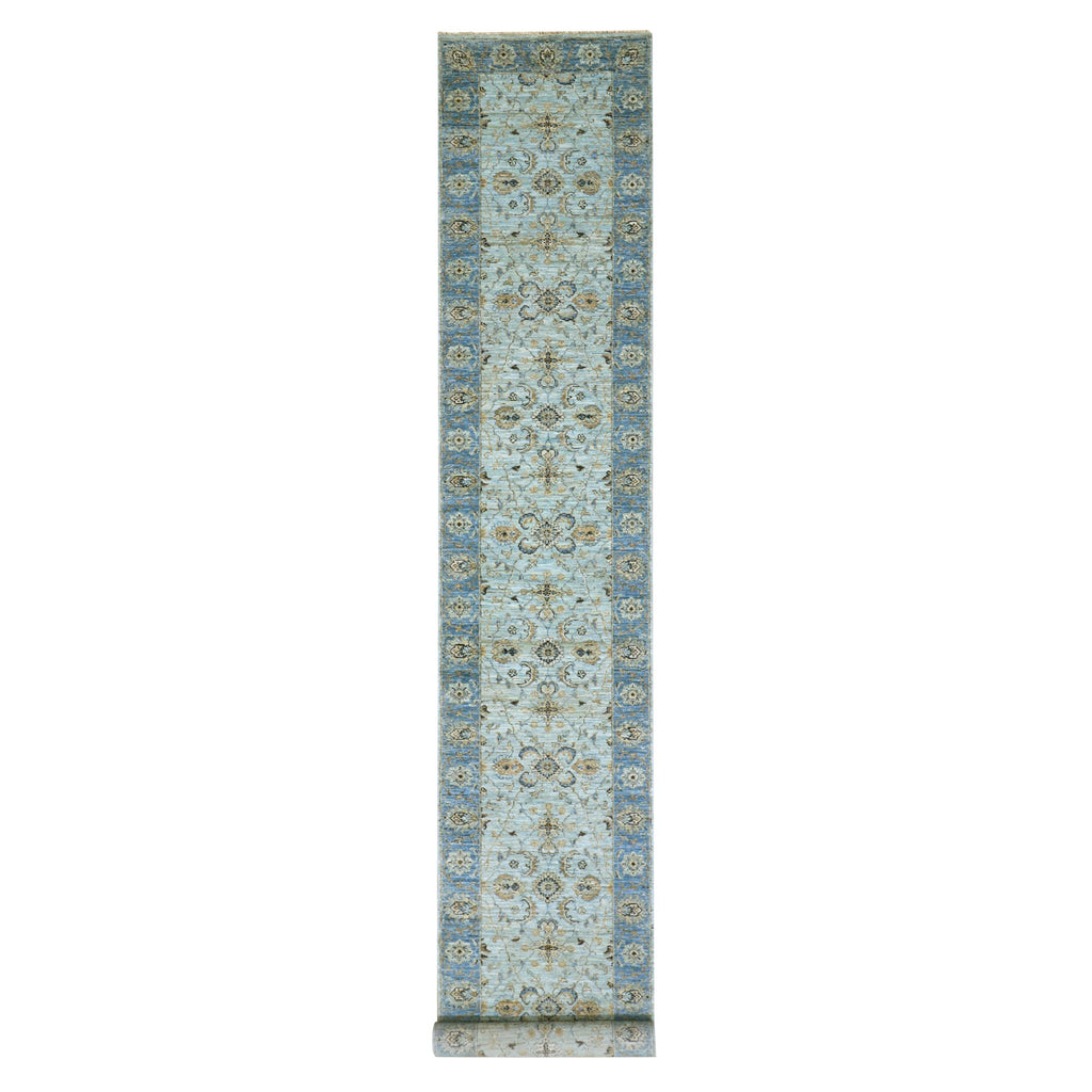 2'9"x16'1" Cruise With True Blue Border, 100% Wool, Hand Knotted, Natural Dyes Denser Weave, Agra, Shah Abbas Xl Runner With Floral Pattern, Oriental Rug FWR456306
