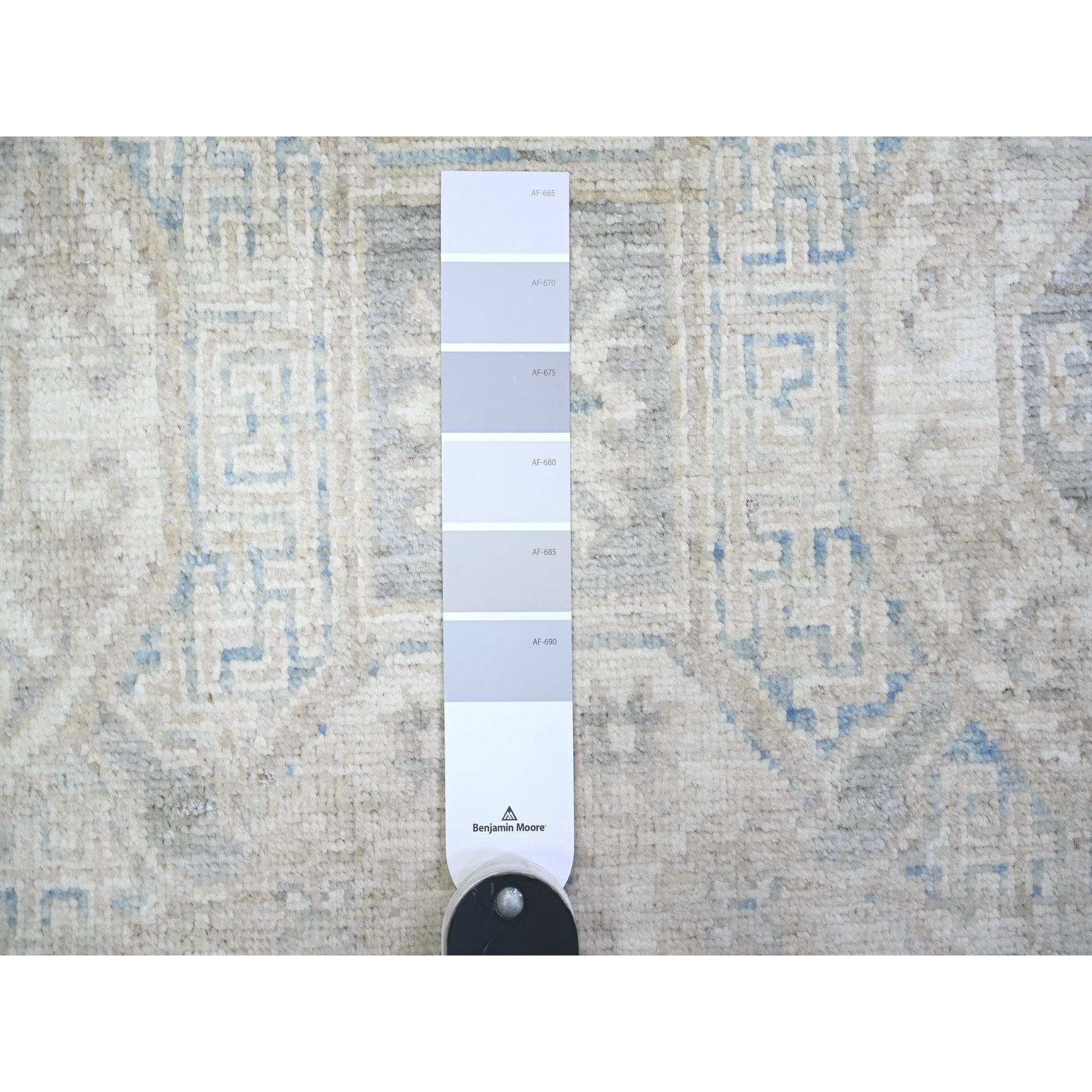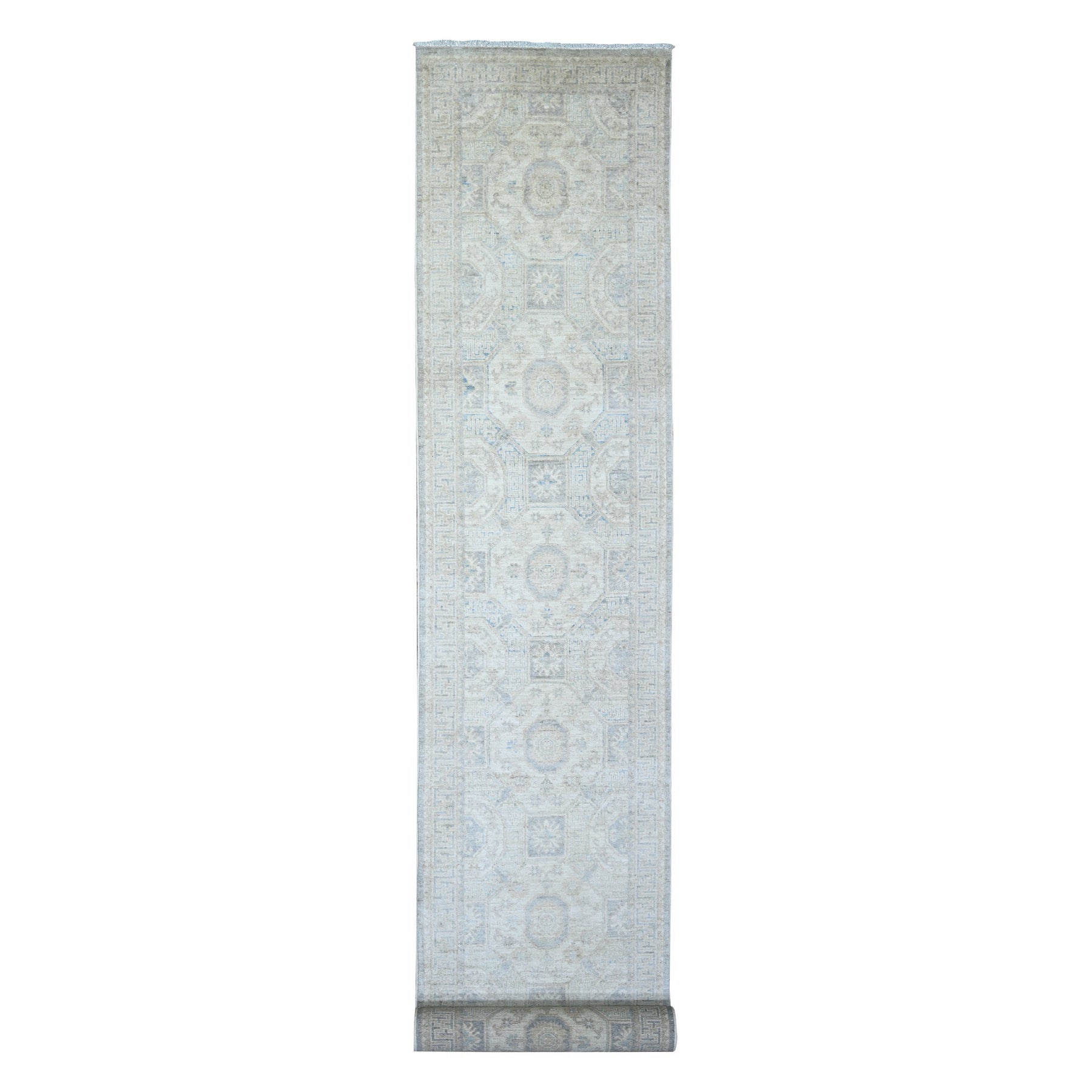 2'9"x18'6" Light Gray, White Wash Peshawar Large Medallions Design, Natural Dyes, Pure Wool, Hand Knotted, Xl Oriental Rug FWR445830