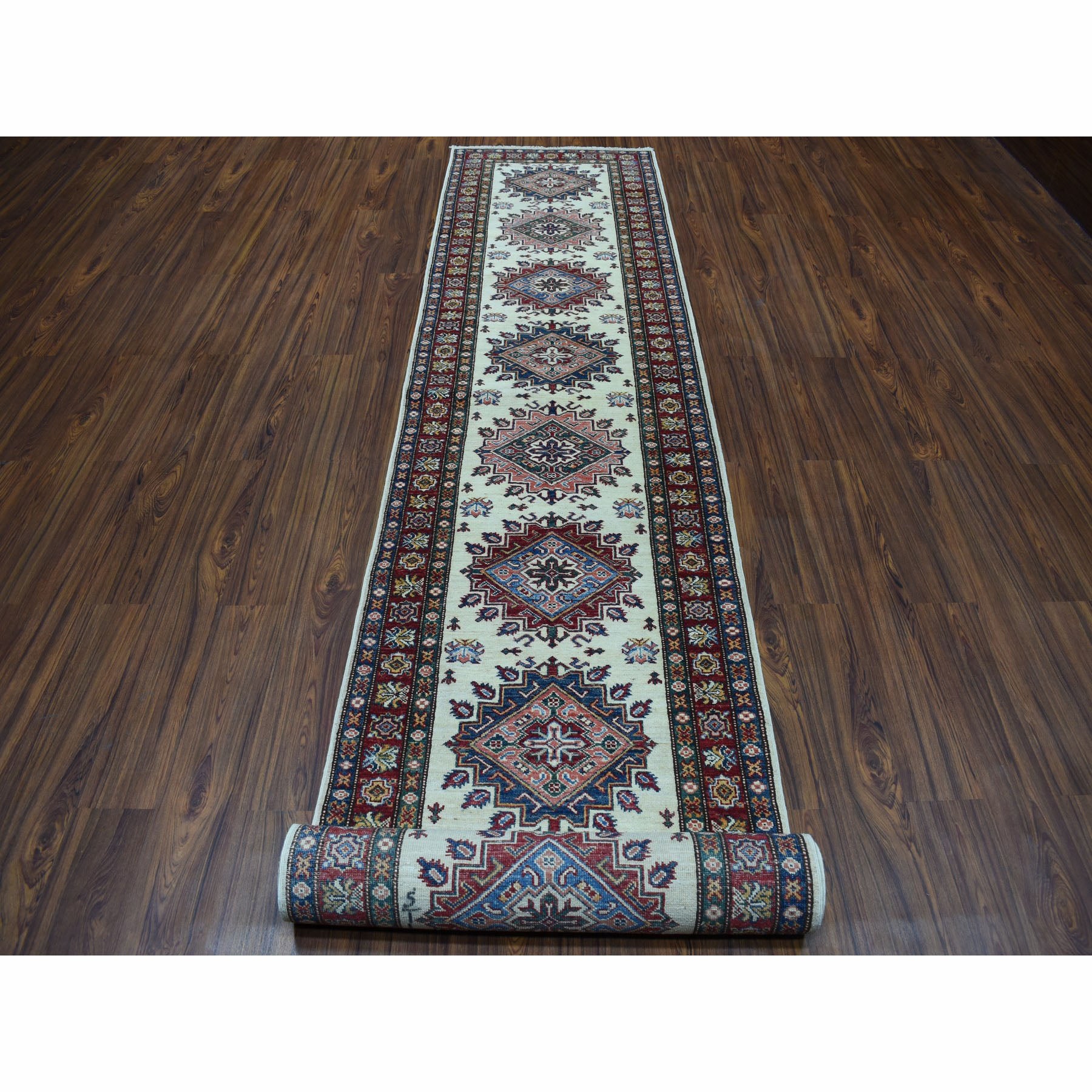 2'9"x19'1" Ivory Super Kazak Geometric Design Hand-knotted Xl Runner Oriental Rug FWR301122