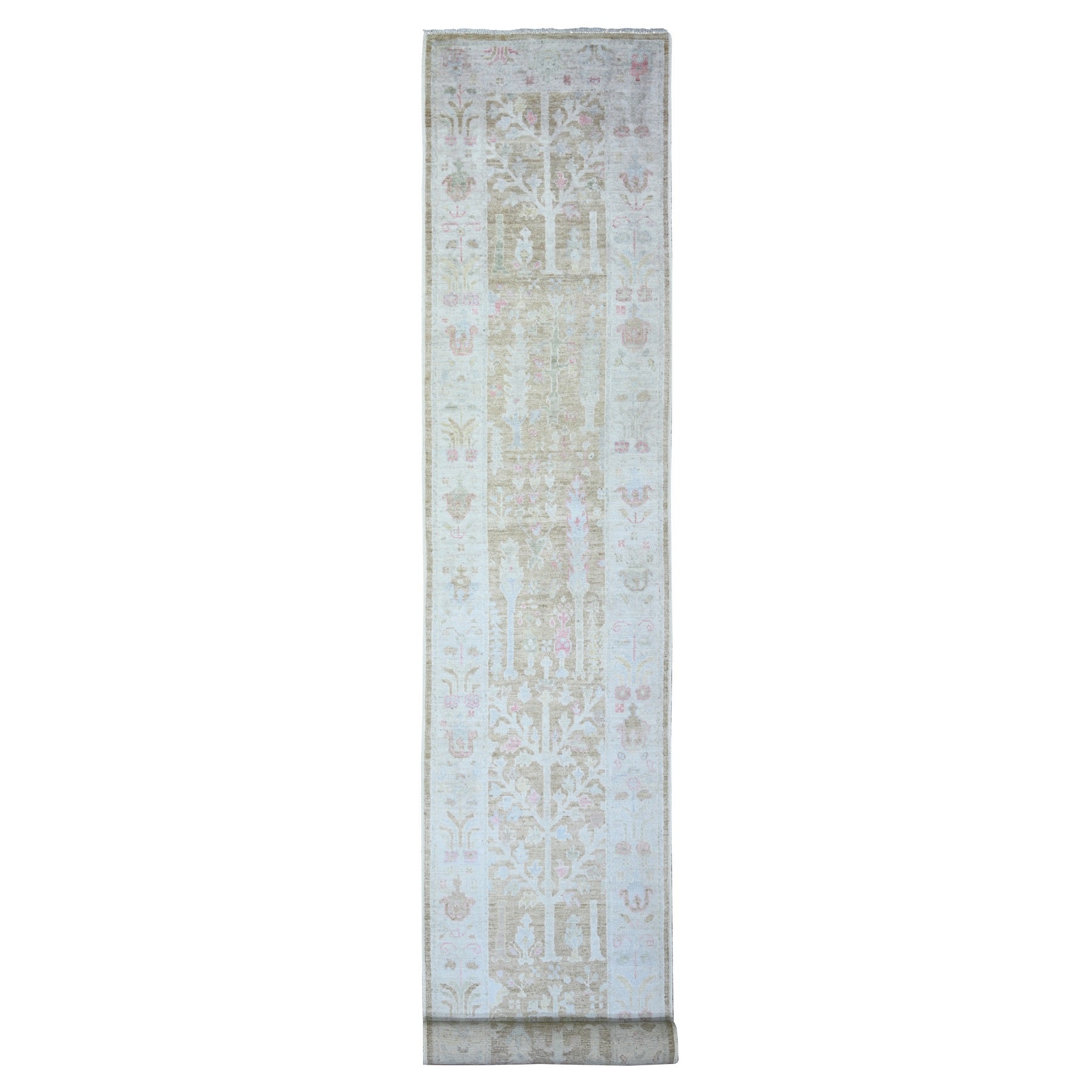 2'9"x19' Faded Brown, Afghan Angora Oushak With Willow And Cypress Tree Design, Vegetable Dyes, Soft Wool, Hand Knotted, Xl Runner Oriental Rug FWR439830