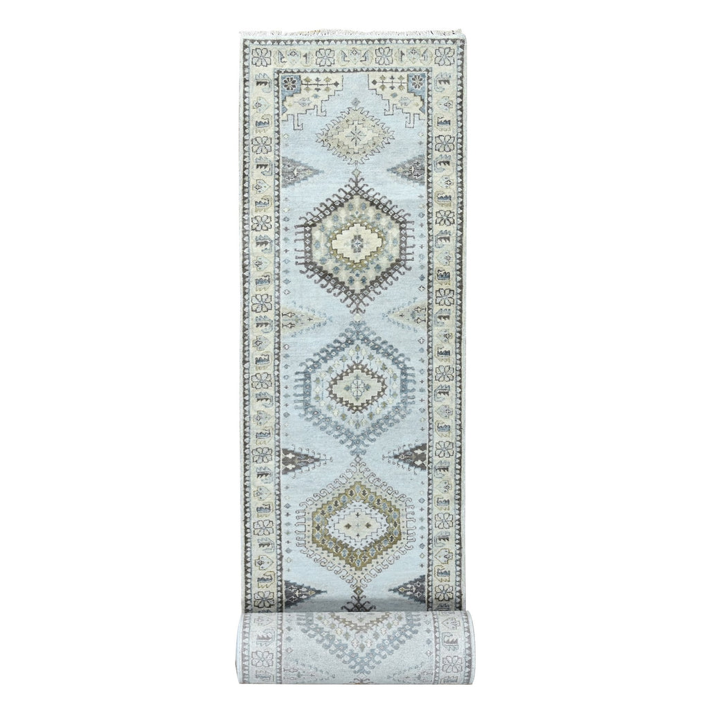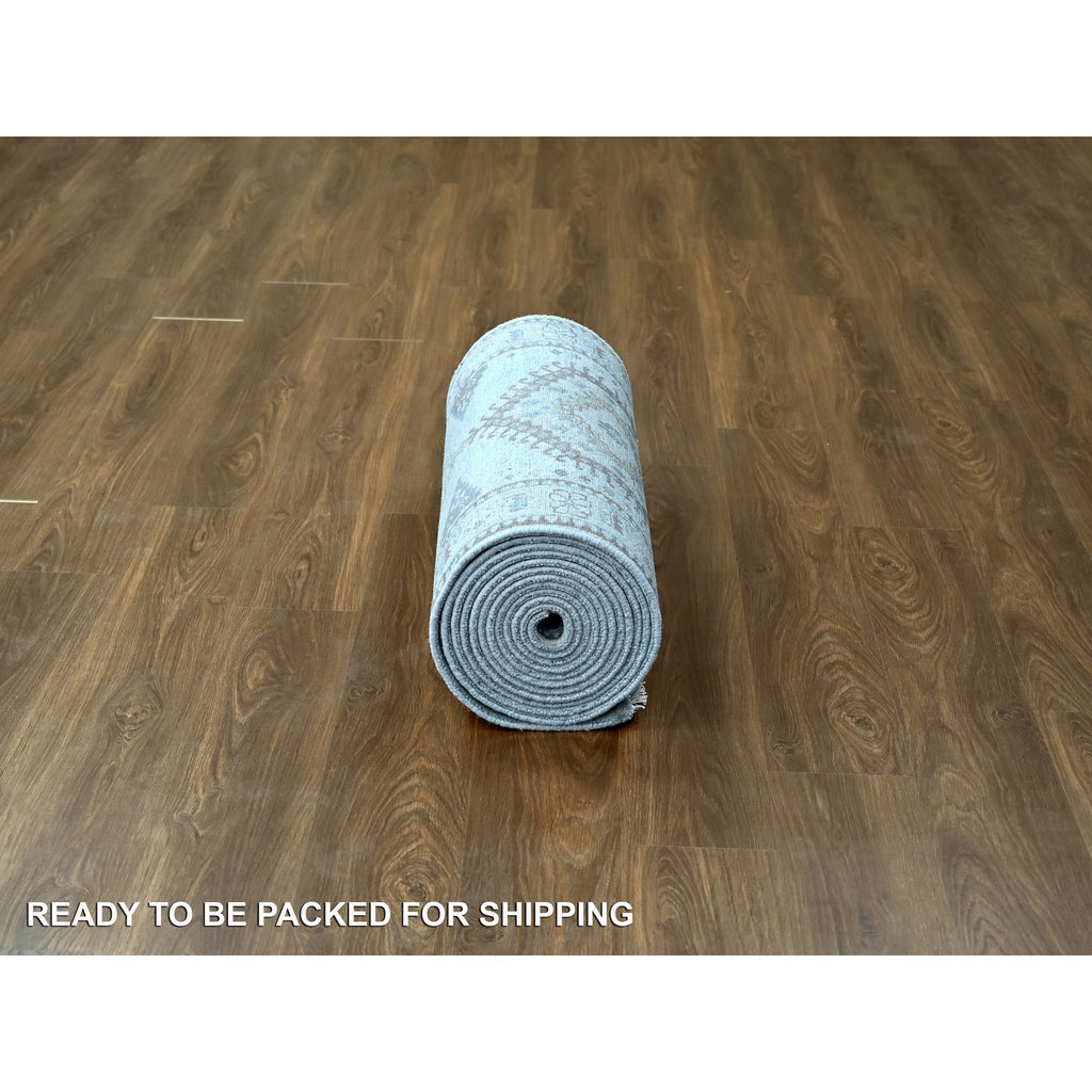 2'9"x21'9" Medium Gray, Persian Village Inspired Geometric Elements Design, Natural Dyes, Denser Weave, Organic Wool, Hand Knotted, Xl Runner, Oriental Rug FWR60462
