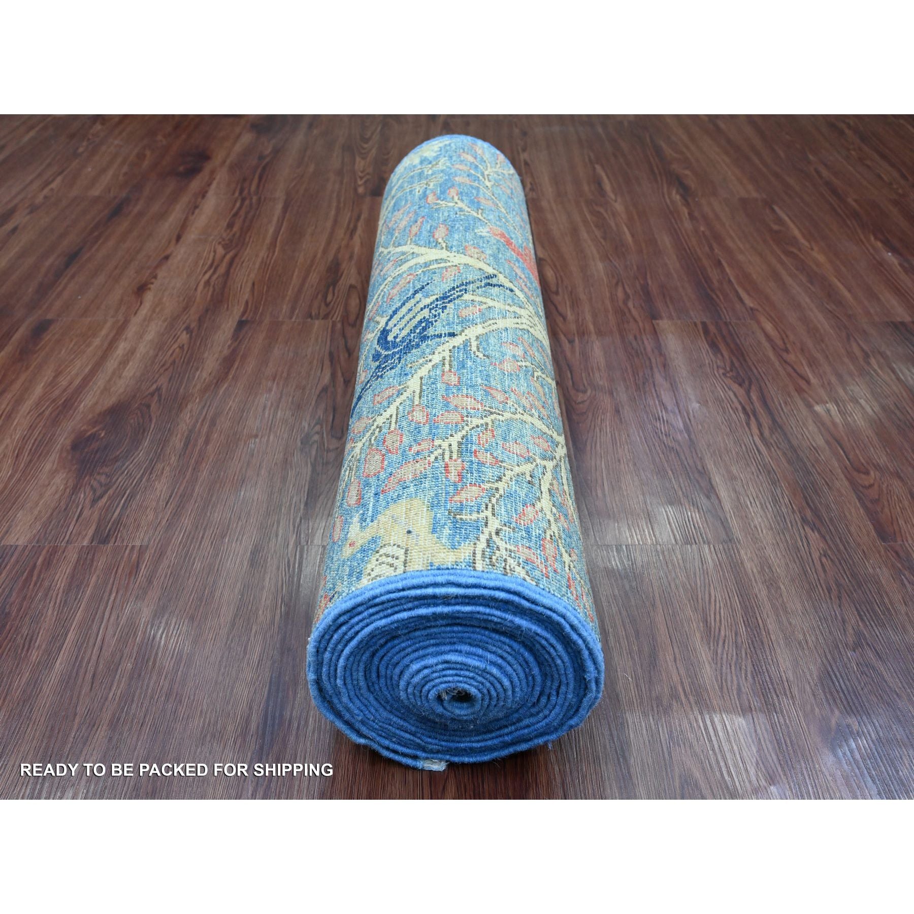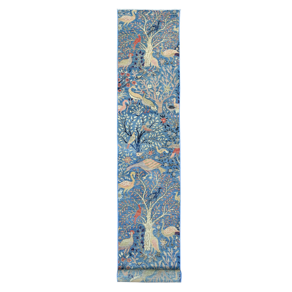 2'9"x23'4" Carolina Blue, Hand Knotted, Afghan Peshawar With Birds Of Paradise Design, Veggie Dyes, Soft And Velvety Wool, Xl Runner, Oriental Rug FWR125790