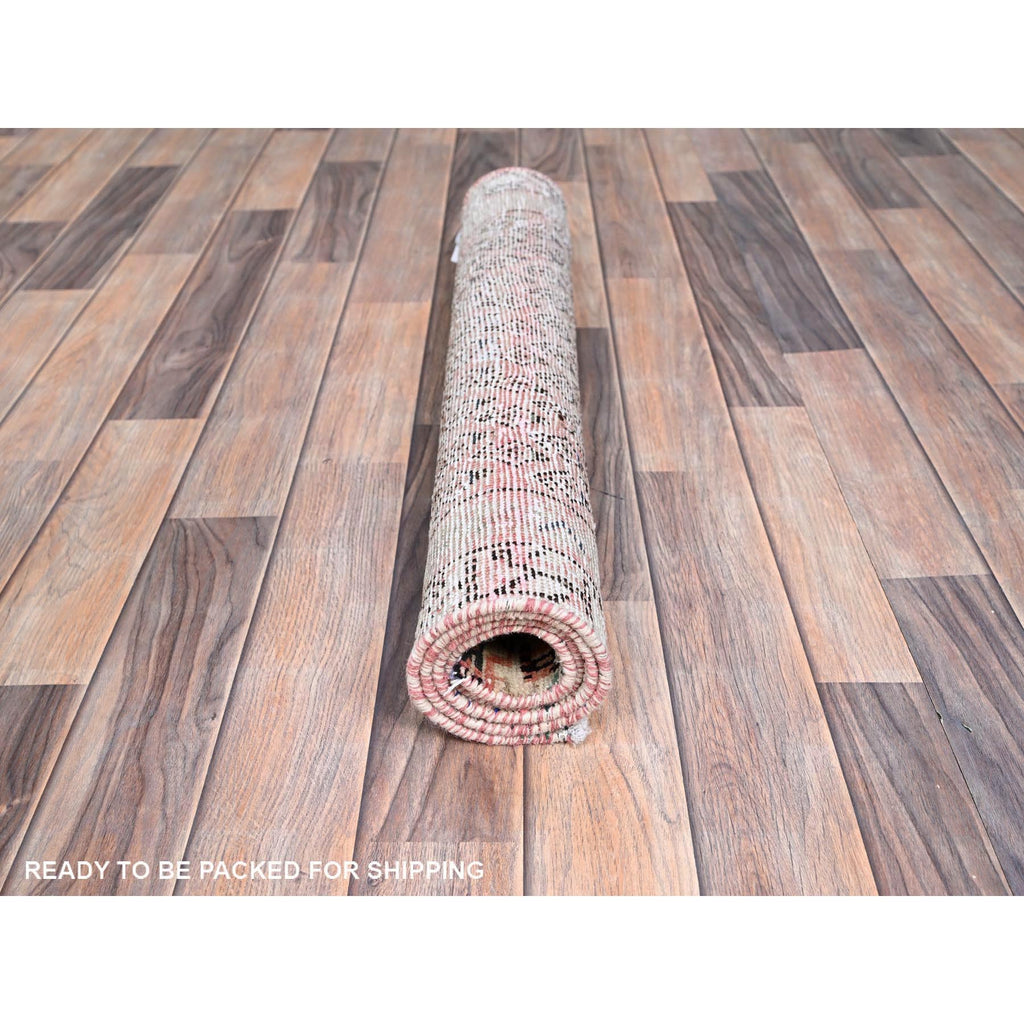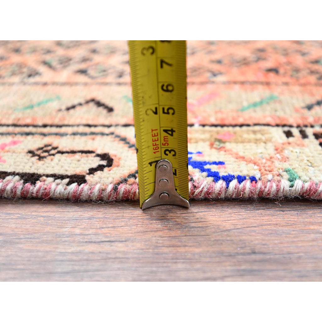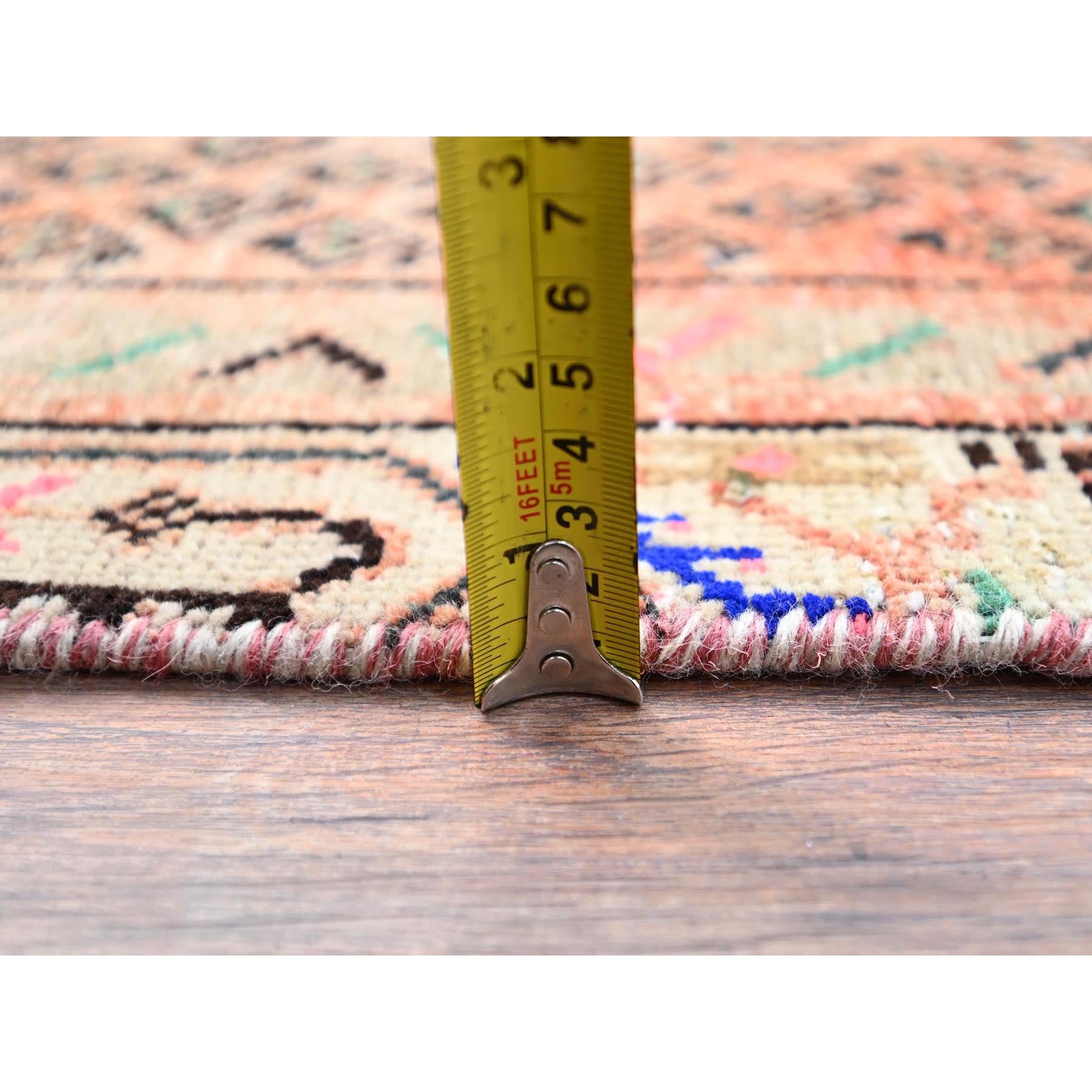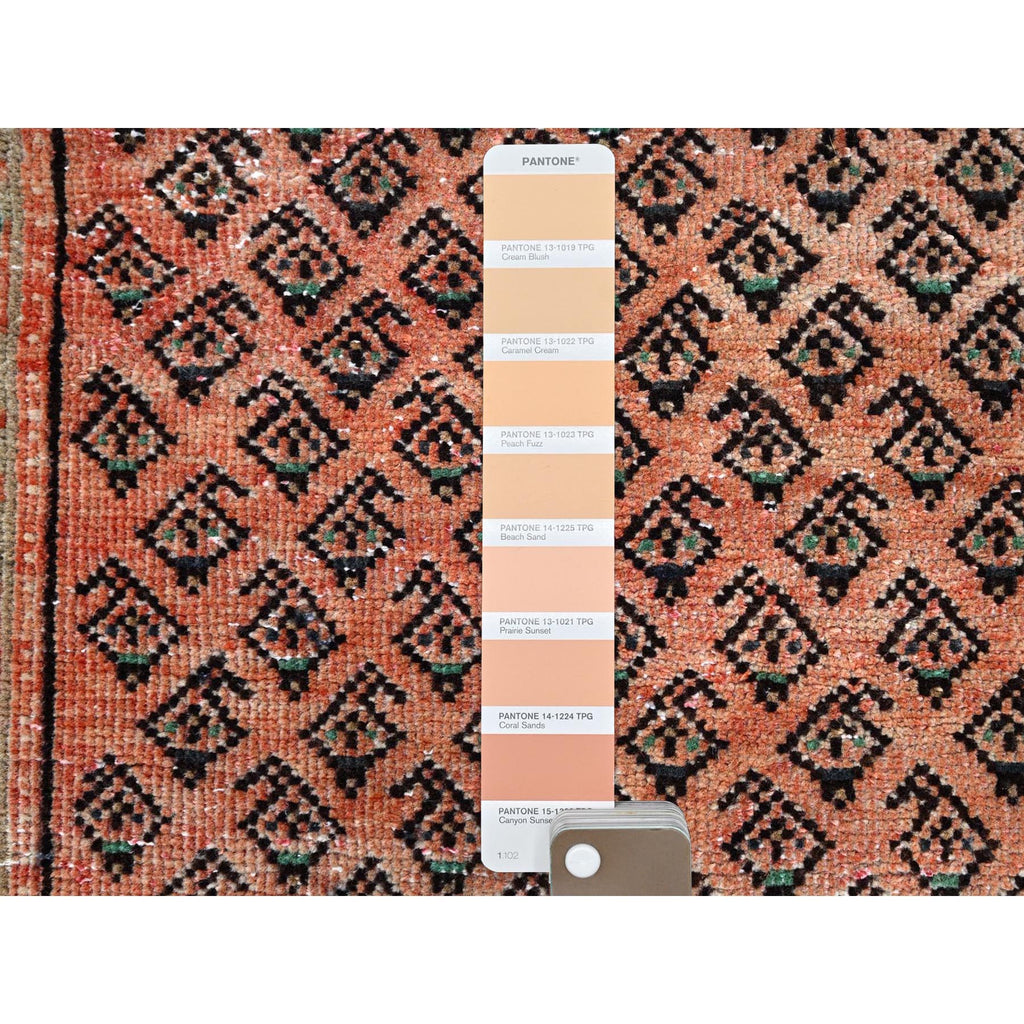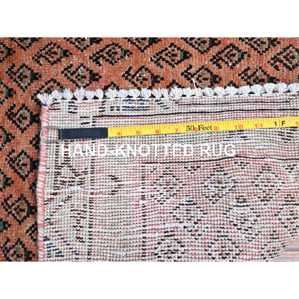 2'9"x3'10" Canyon Sunset Orange, Hand Knotted With Boteh All Over Design, Distressed Look, Cropped Thin, Soft And Silky Wool, Evenly Worn With No Holes, Persian Sarouk Mir, Antique Oriental Rug FWR520104