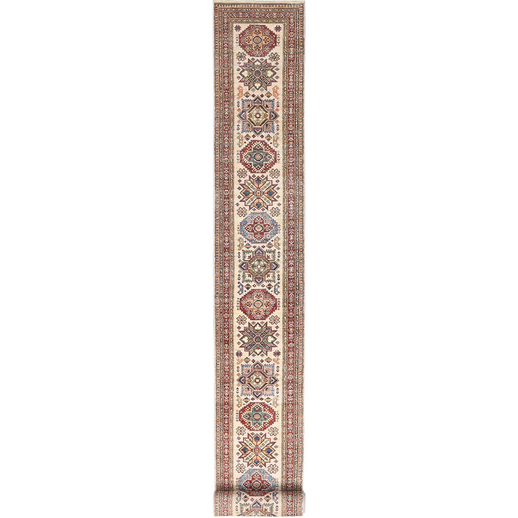 2'9"x35'8" Ivory, Afghan Super Kazak With Geometric Medallion Design, Natural Dyes, Soft Wool Hand Knotted, Xl Runner Oriental Rug FWR511746