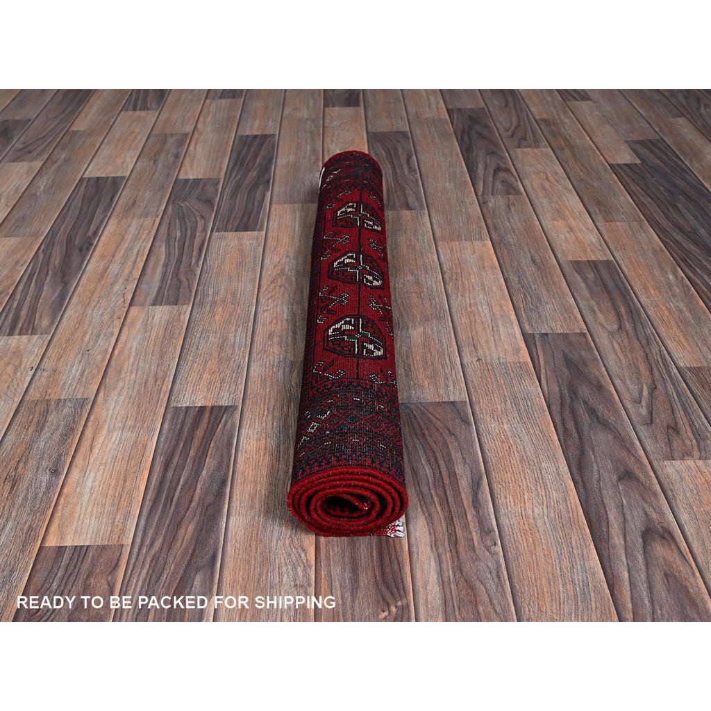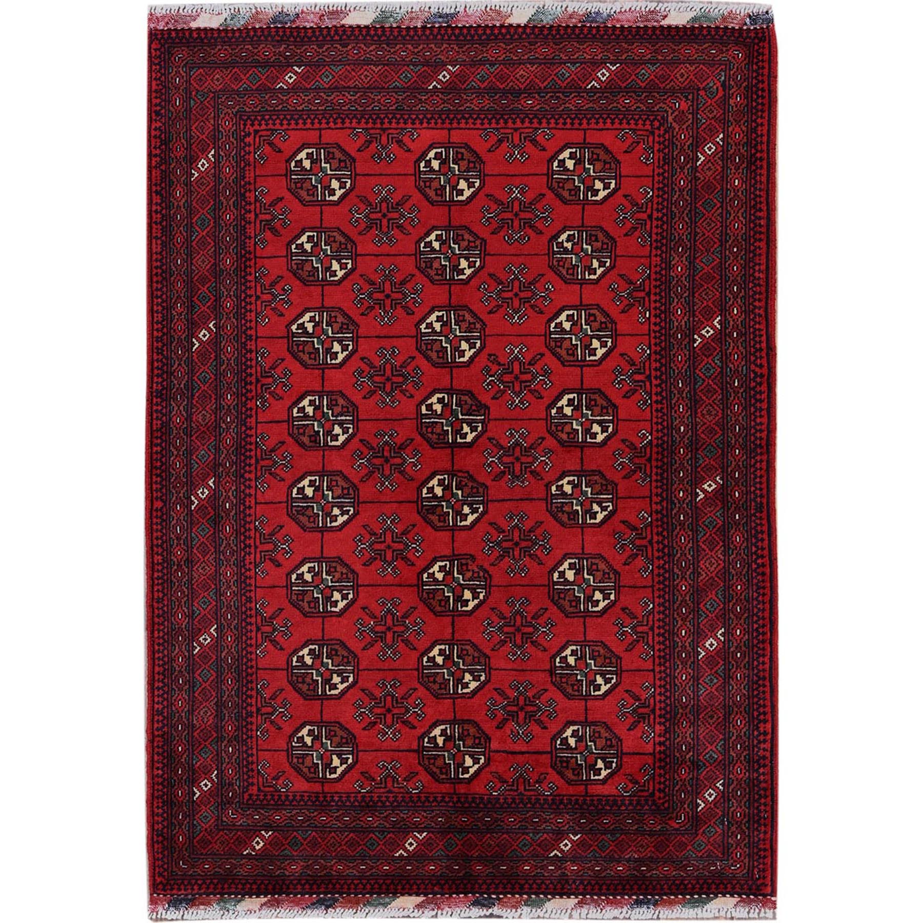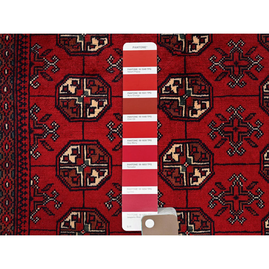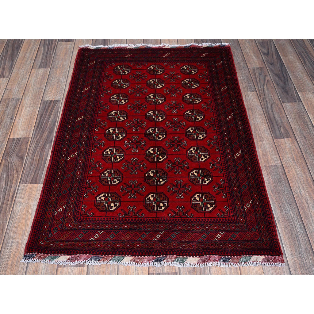 2'9"x4' Berry Red, Princess Bokara With Geometric Medallions Design, 100% Wool, Veggie Dyes, Hand Knotted, Mat, Sample, Oriental Rug FWR4230