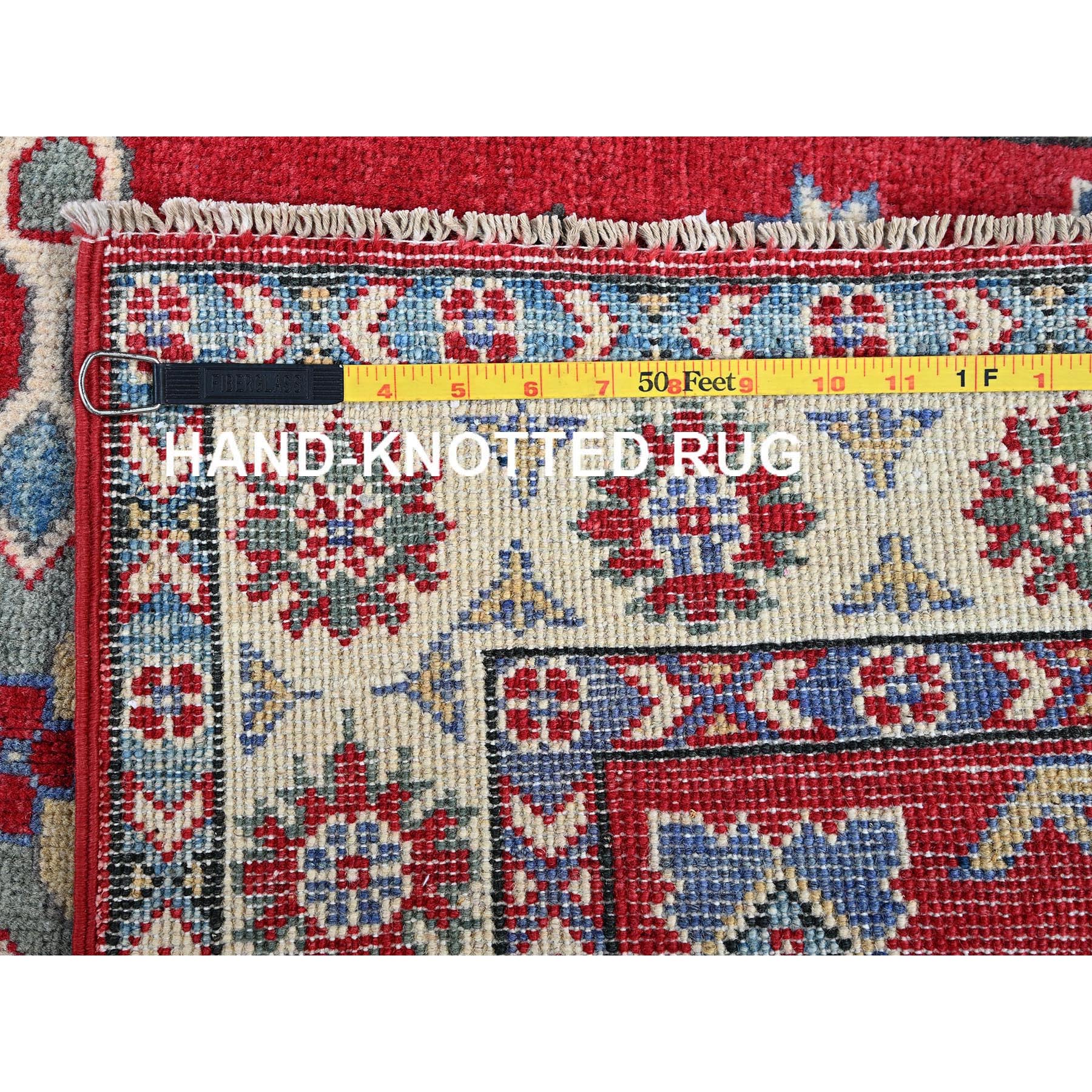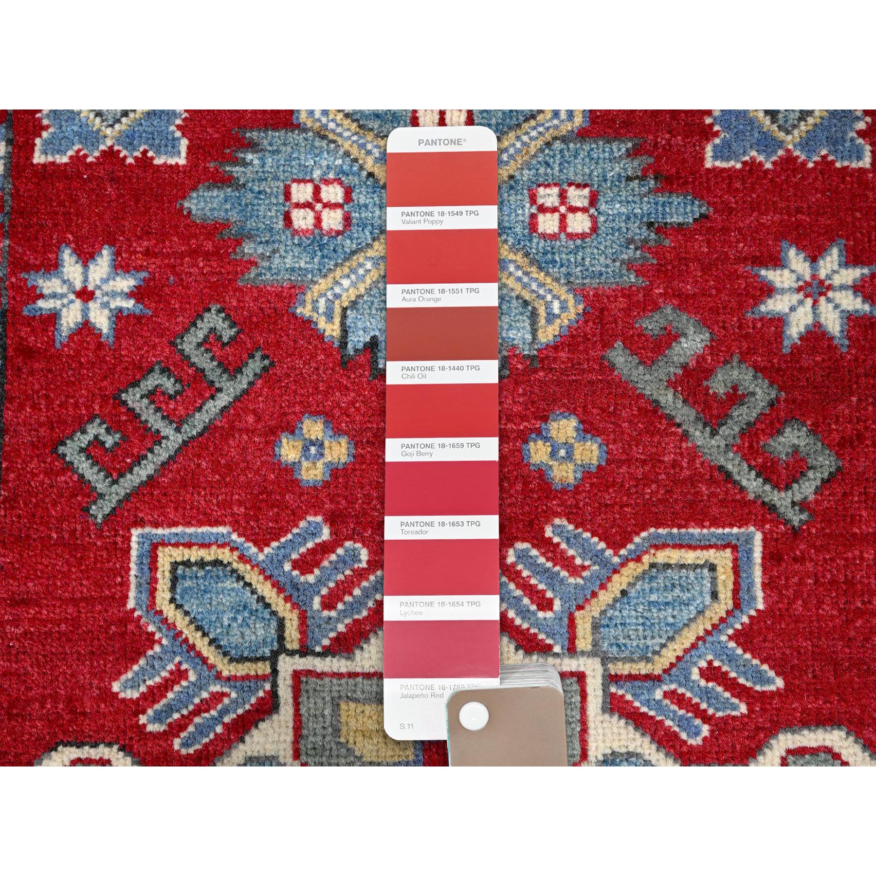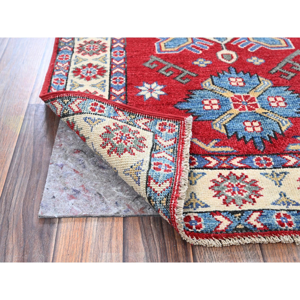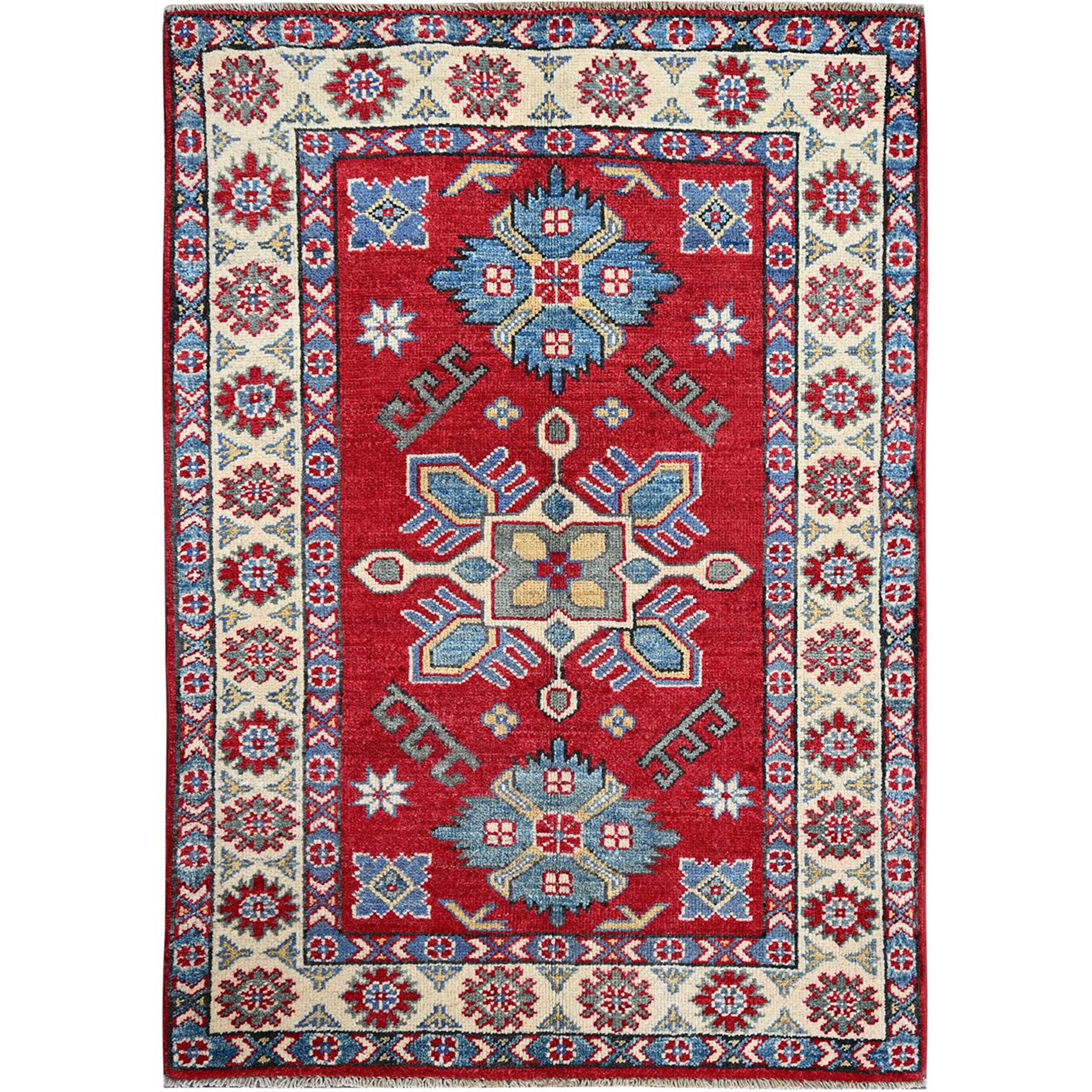 2'9"x4' Crimson Red, Kazak With Tribal Medallion Design, Hand Knotted, Soft And Vibrant Wool, Vegetable Dyes, Denser Weave, Sample, Mat, Oriental Rug FWR2442