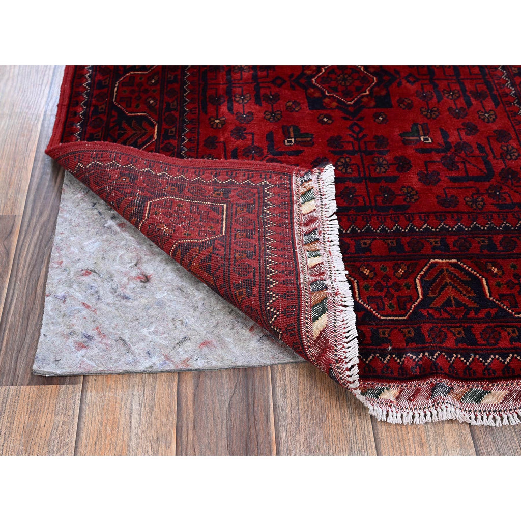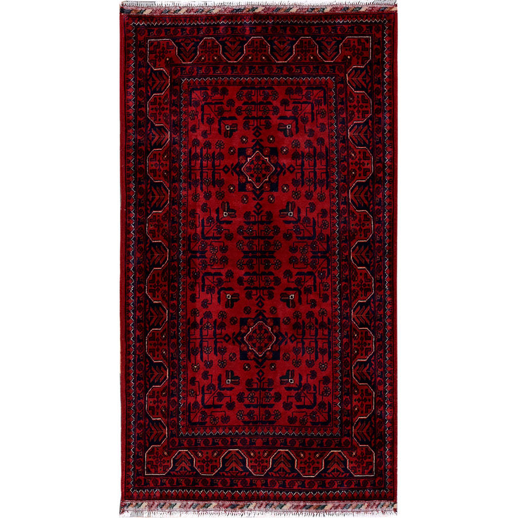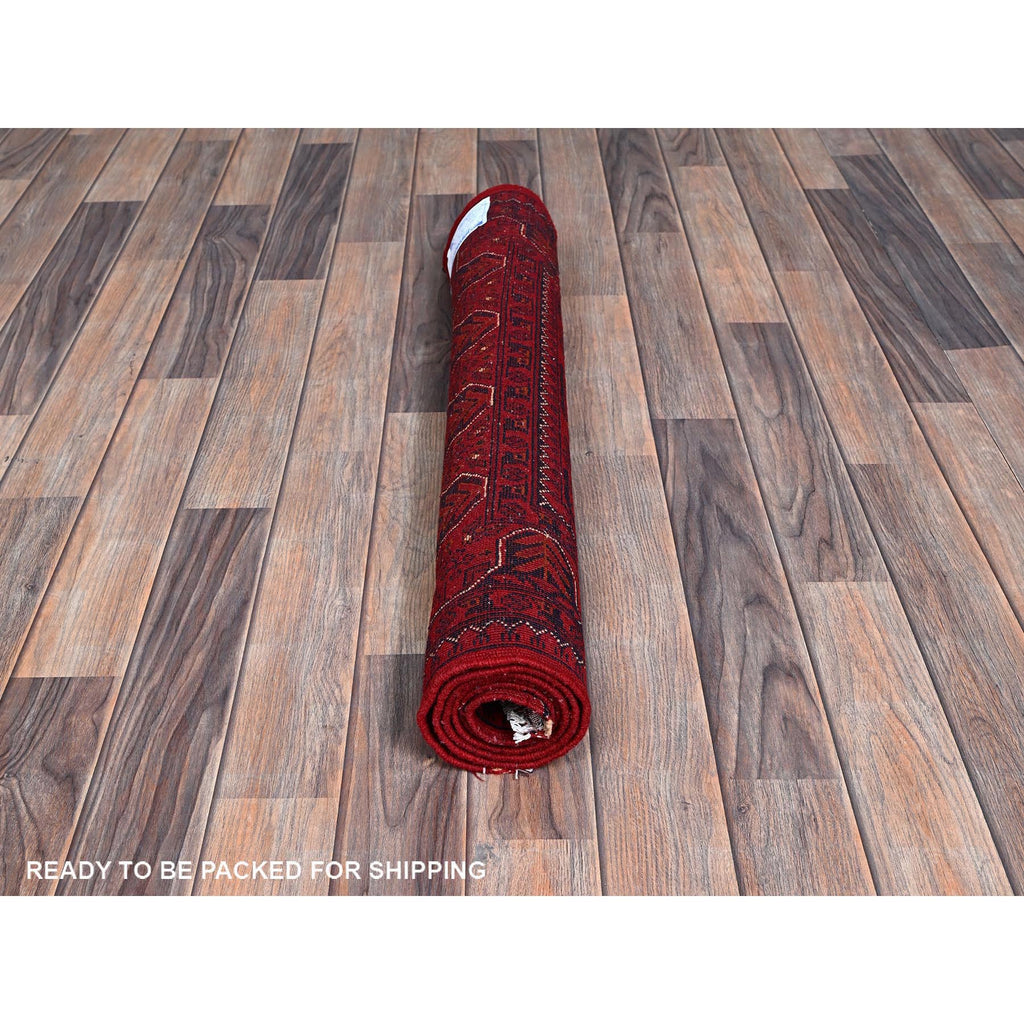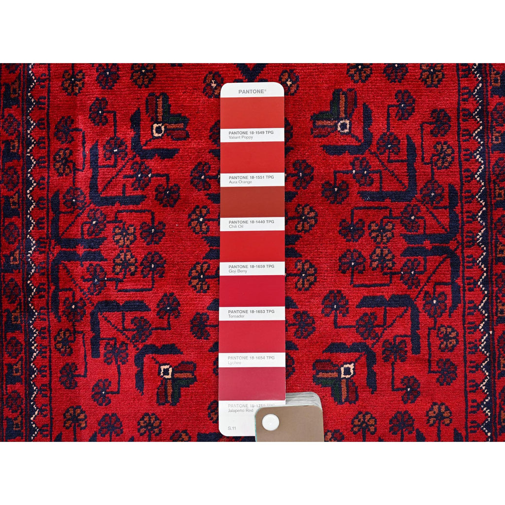 2'9"x5' Scarlet Red, Afghan Khamyab With Geometric Pattern, Hand Knotted, Soft And Velvety Wool, Oriental Rug FWR4404