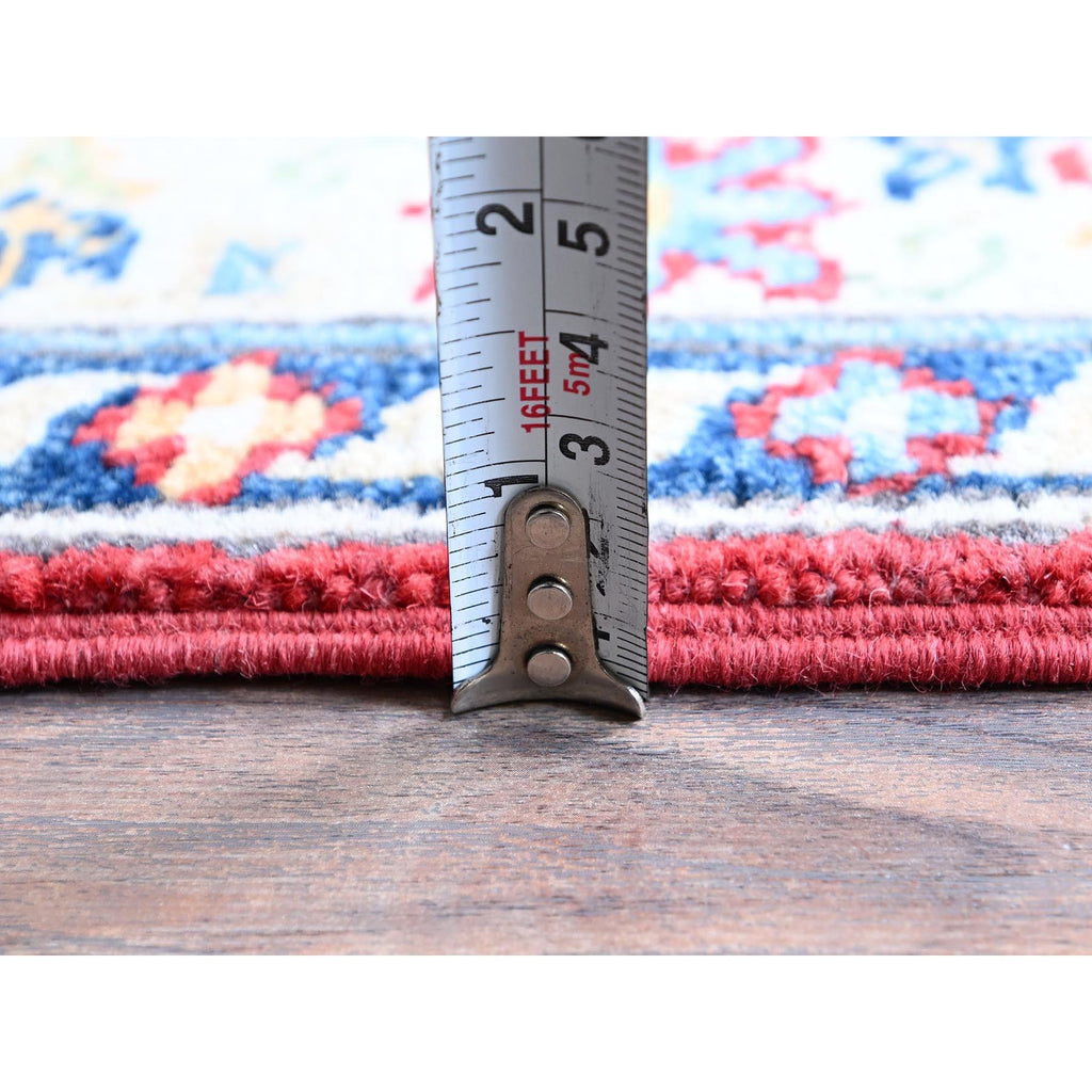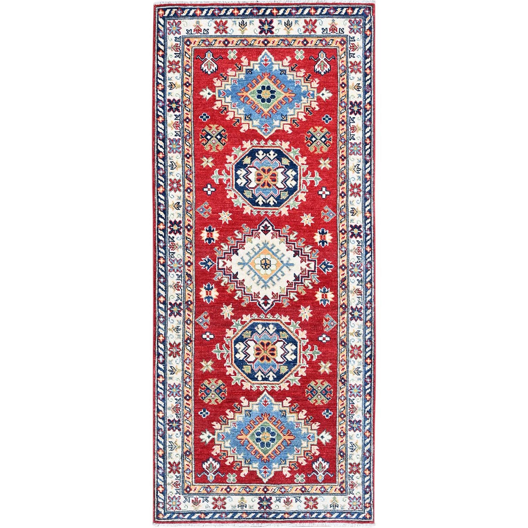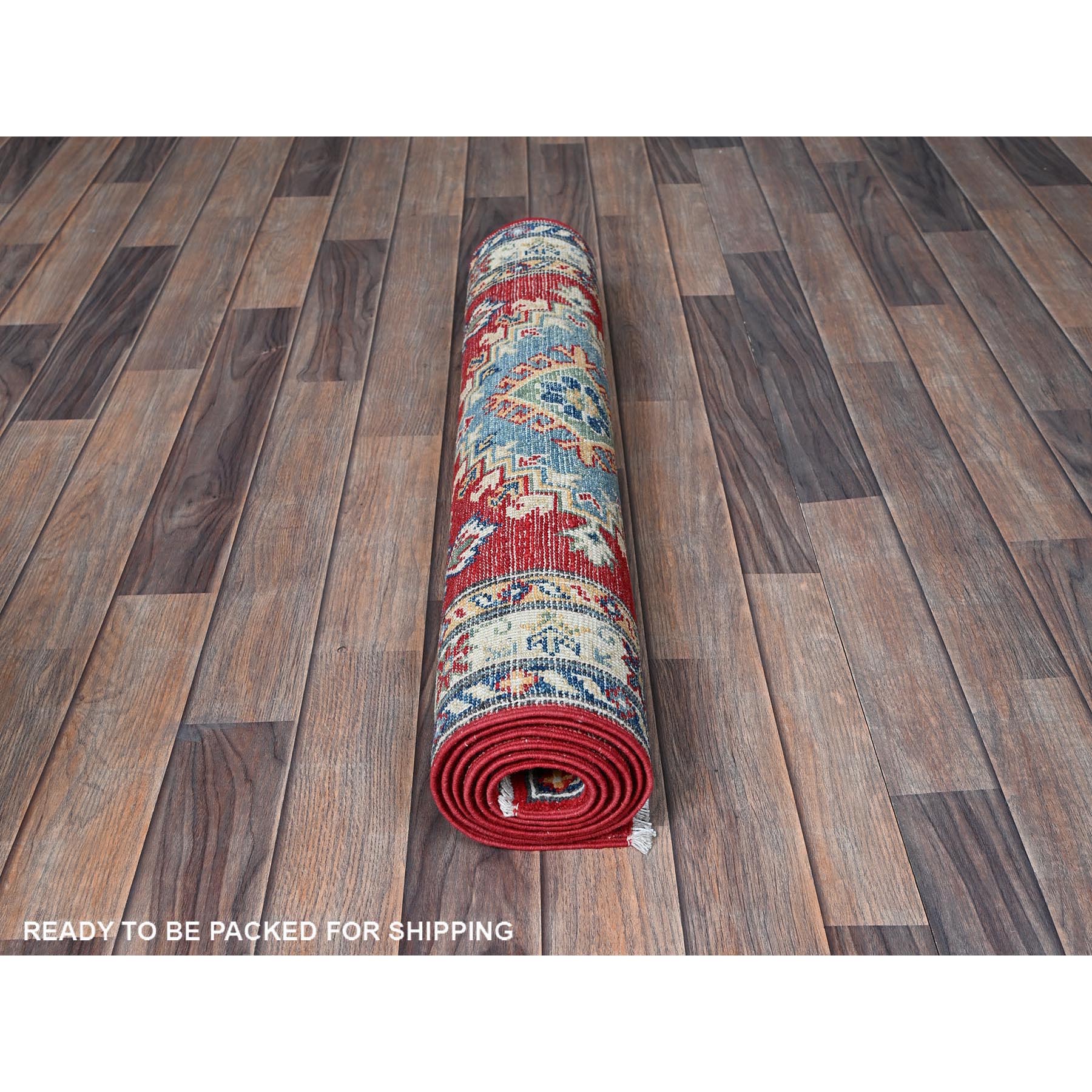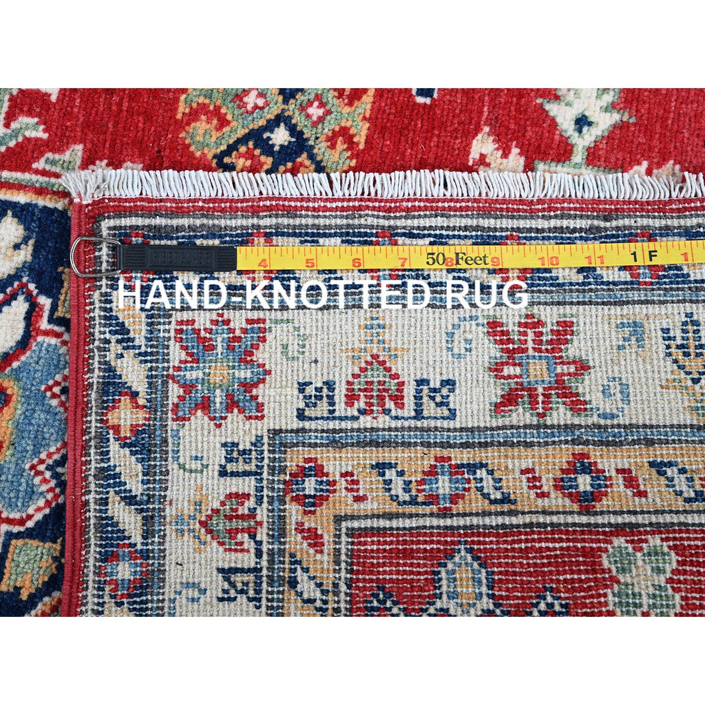2'9"x6'7" Crimson Red, Kazak With Geometric Medallions Design, Denser Weave, Soft And Velvety Wool, Hand Knotted, Vegetable Dyes, Runner, Oriental Rug FWR2682